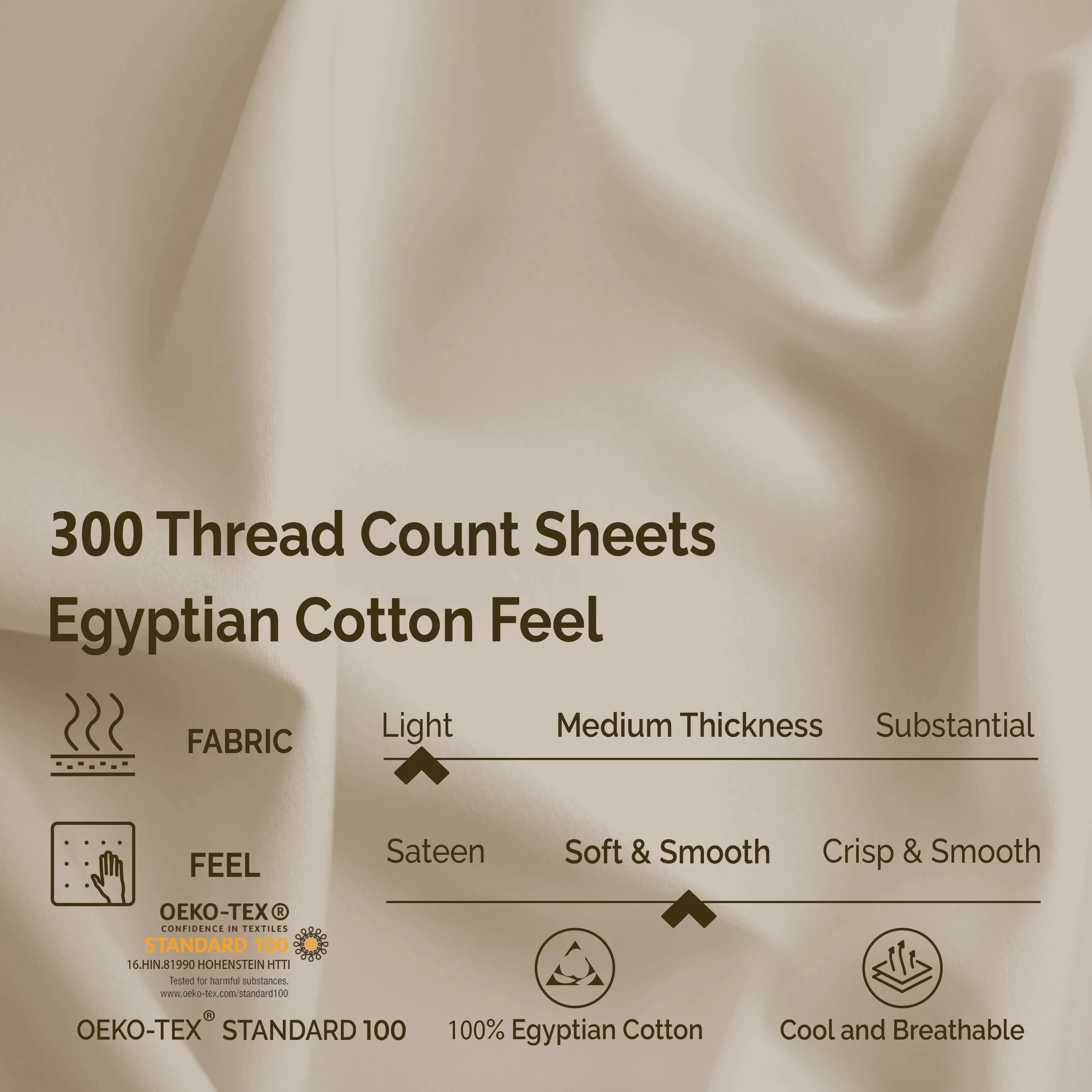 Impressions Rochelle %100 Egyptian Cotton Deep Pocket Sheet Set, California King, Tan - 300 Thread Count