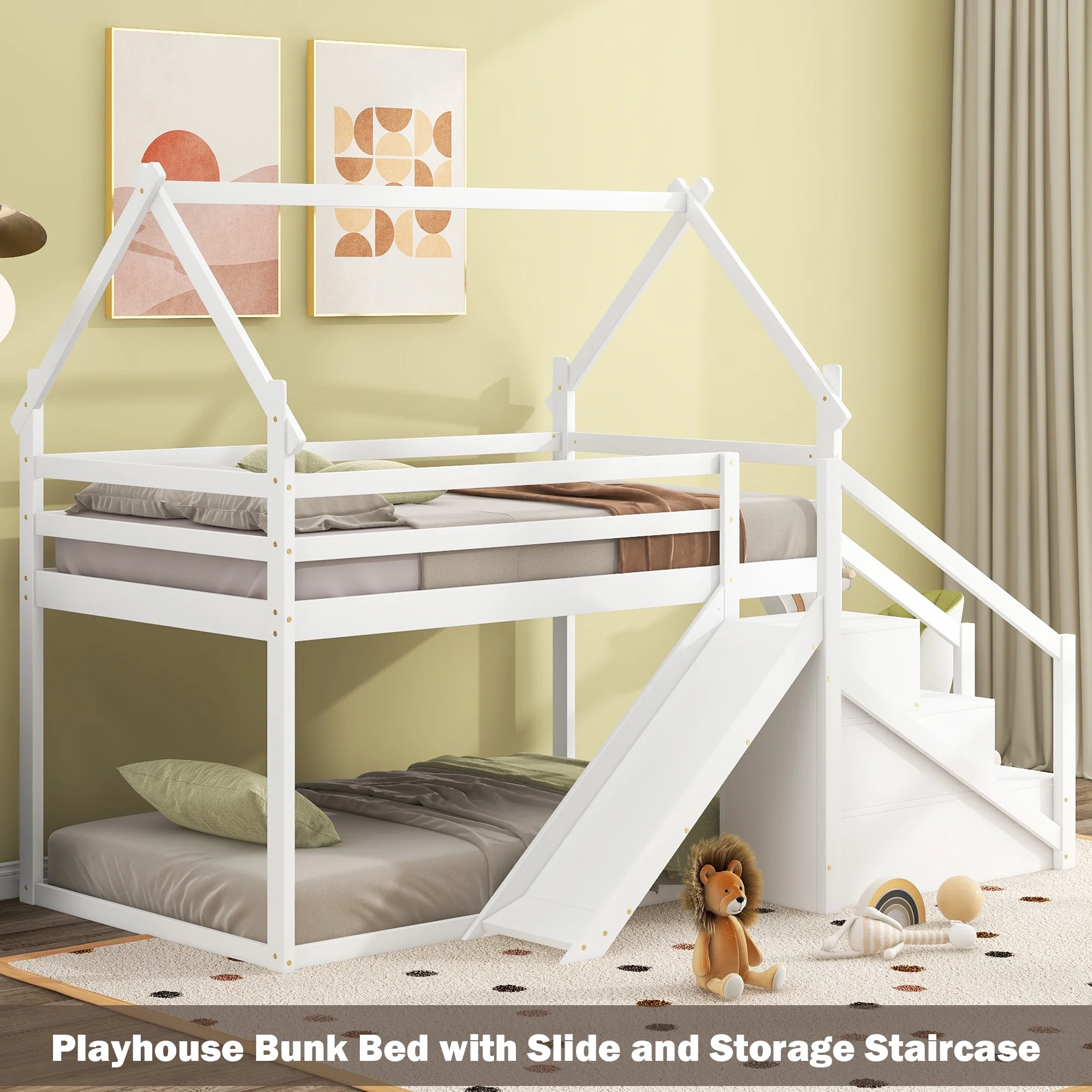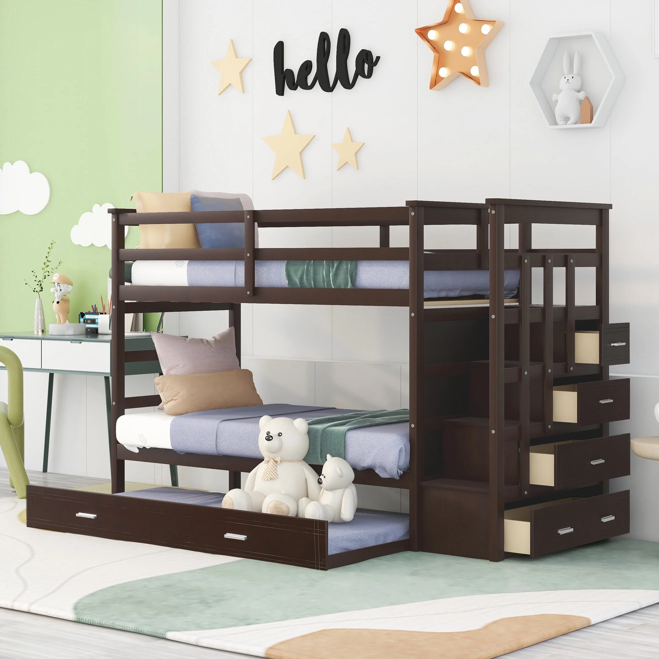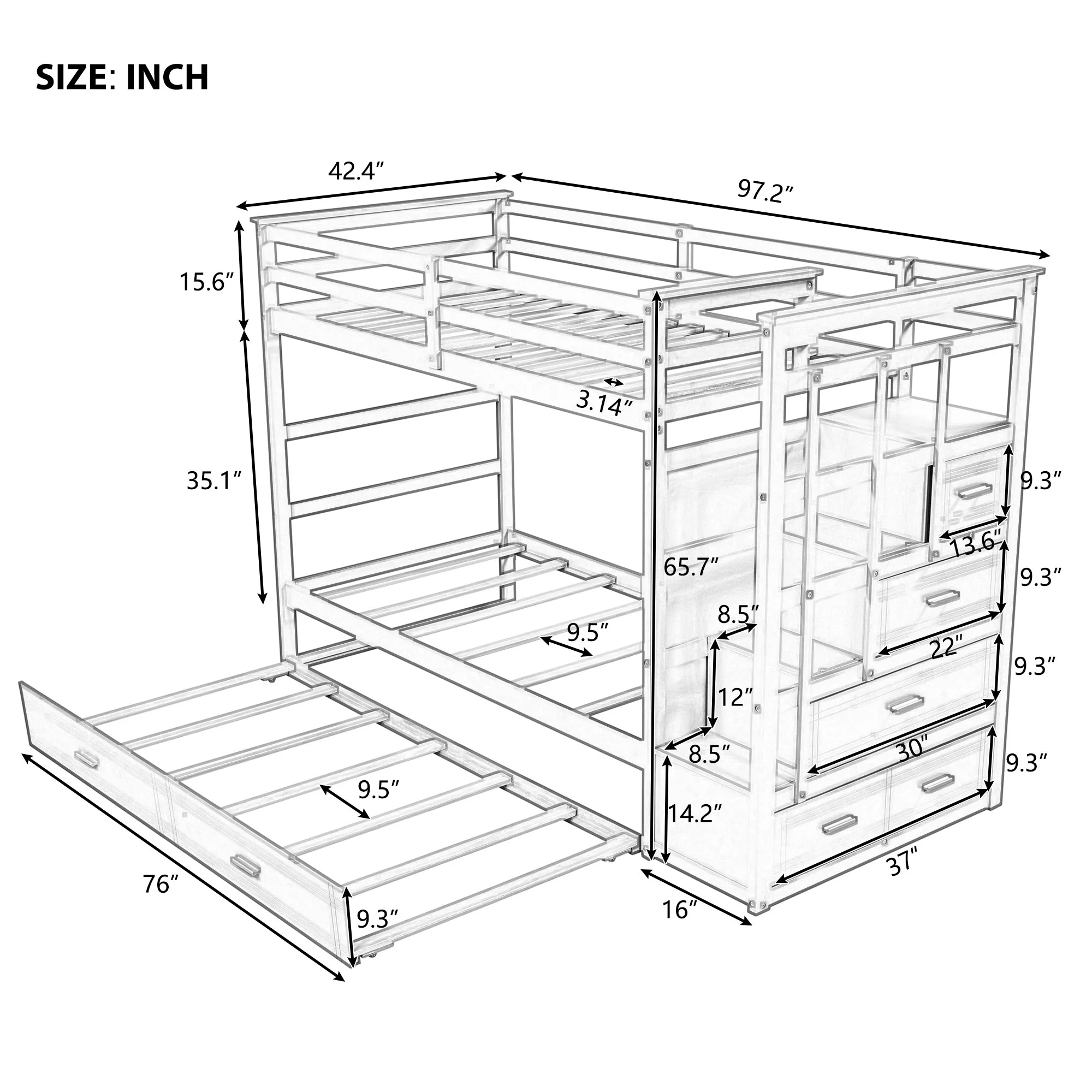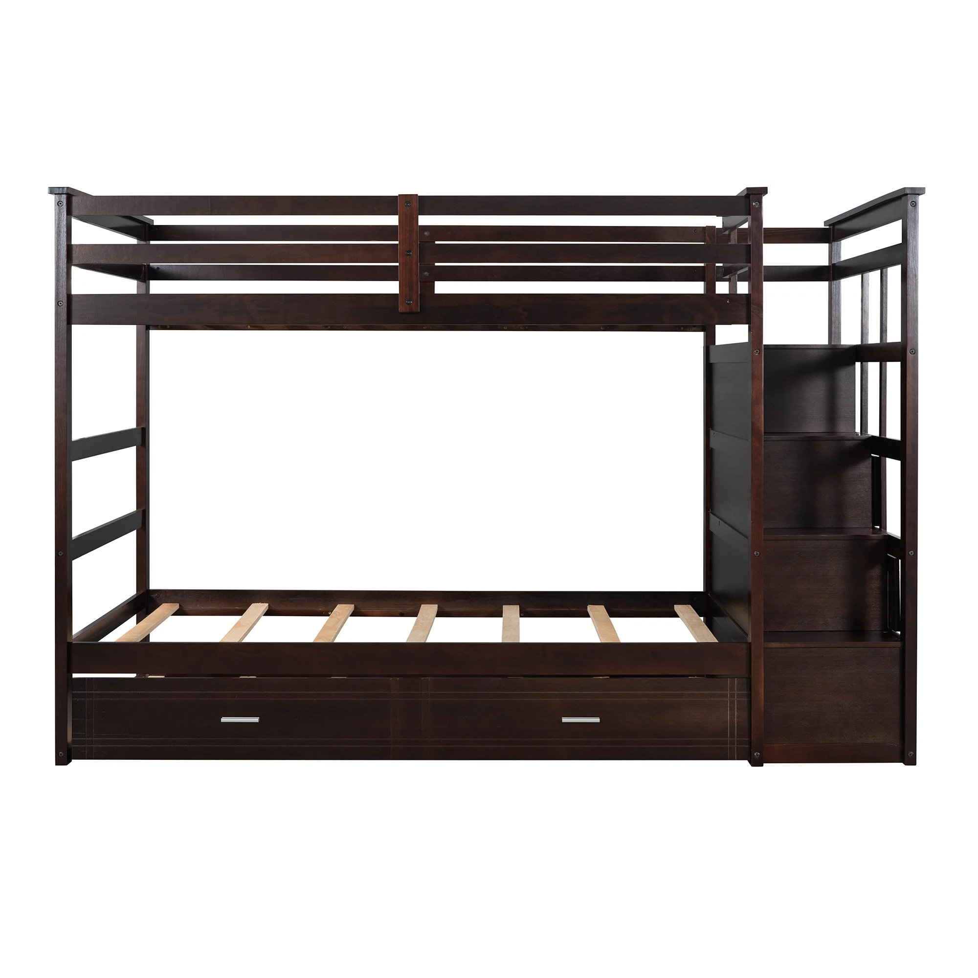 Bellemave Twin over Twin Bunk Bed with Stairs, Solid Wood Bunk Bed with Storage Drawers for Kids, Teens, Adults (Gray)