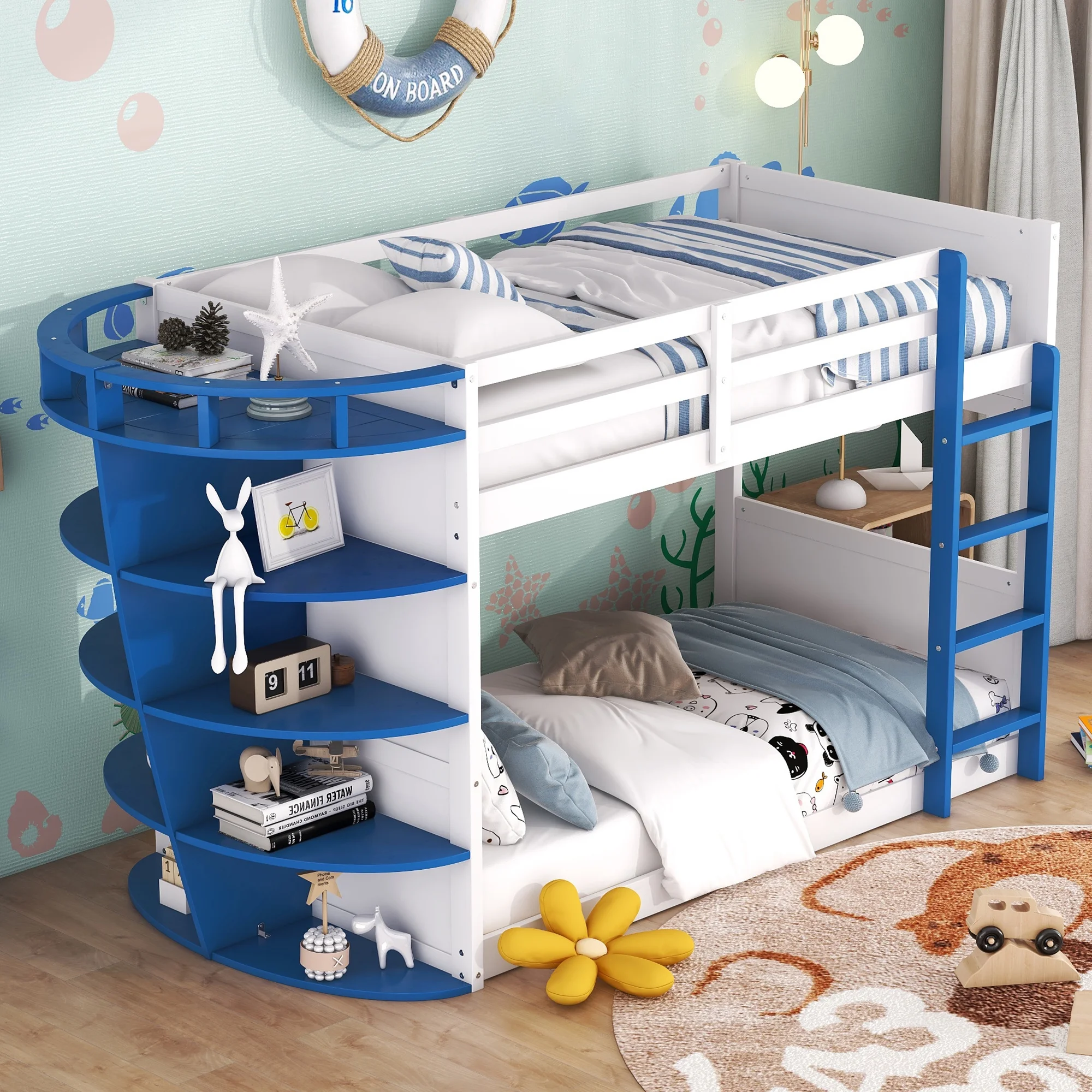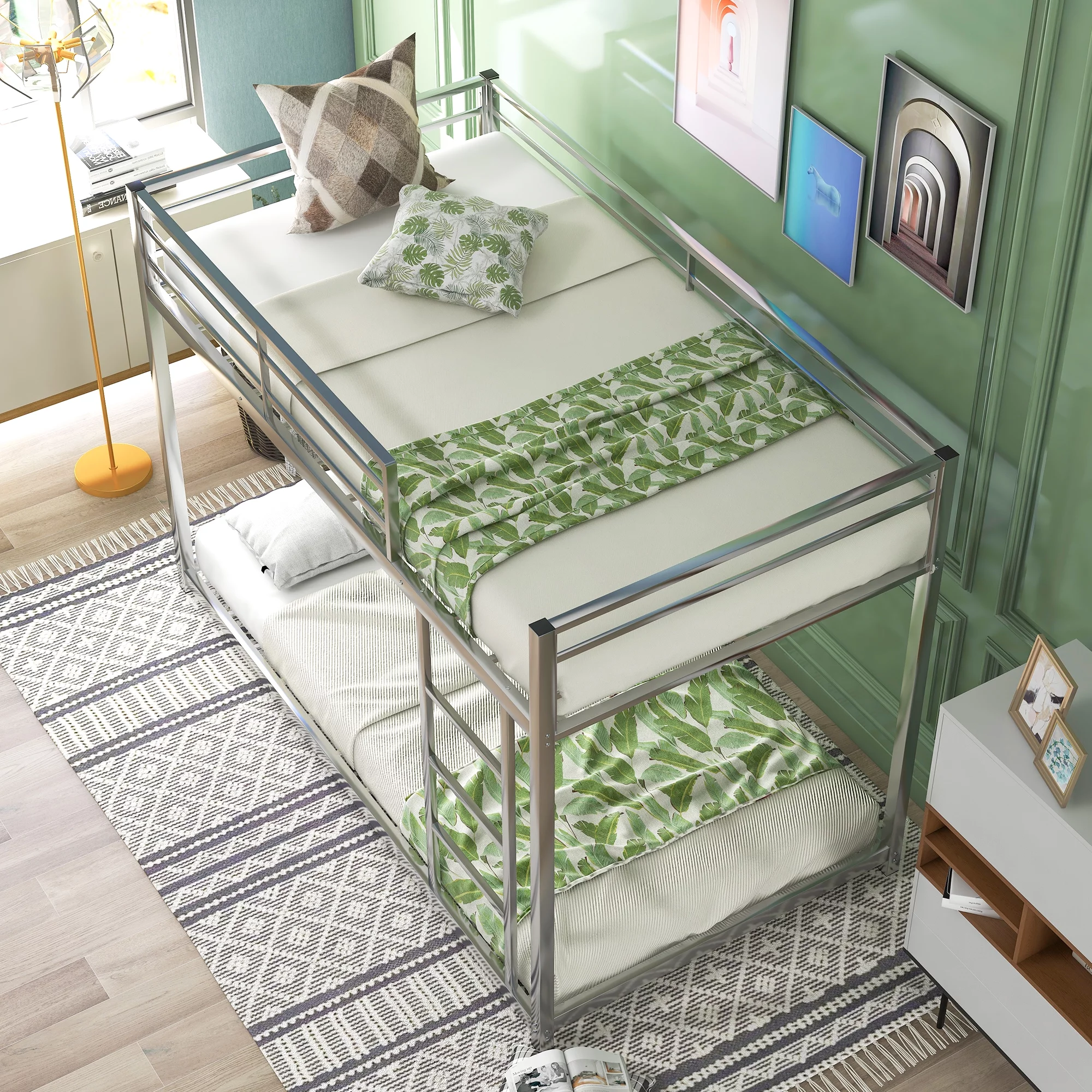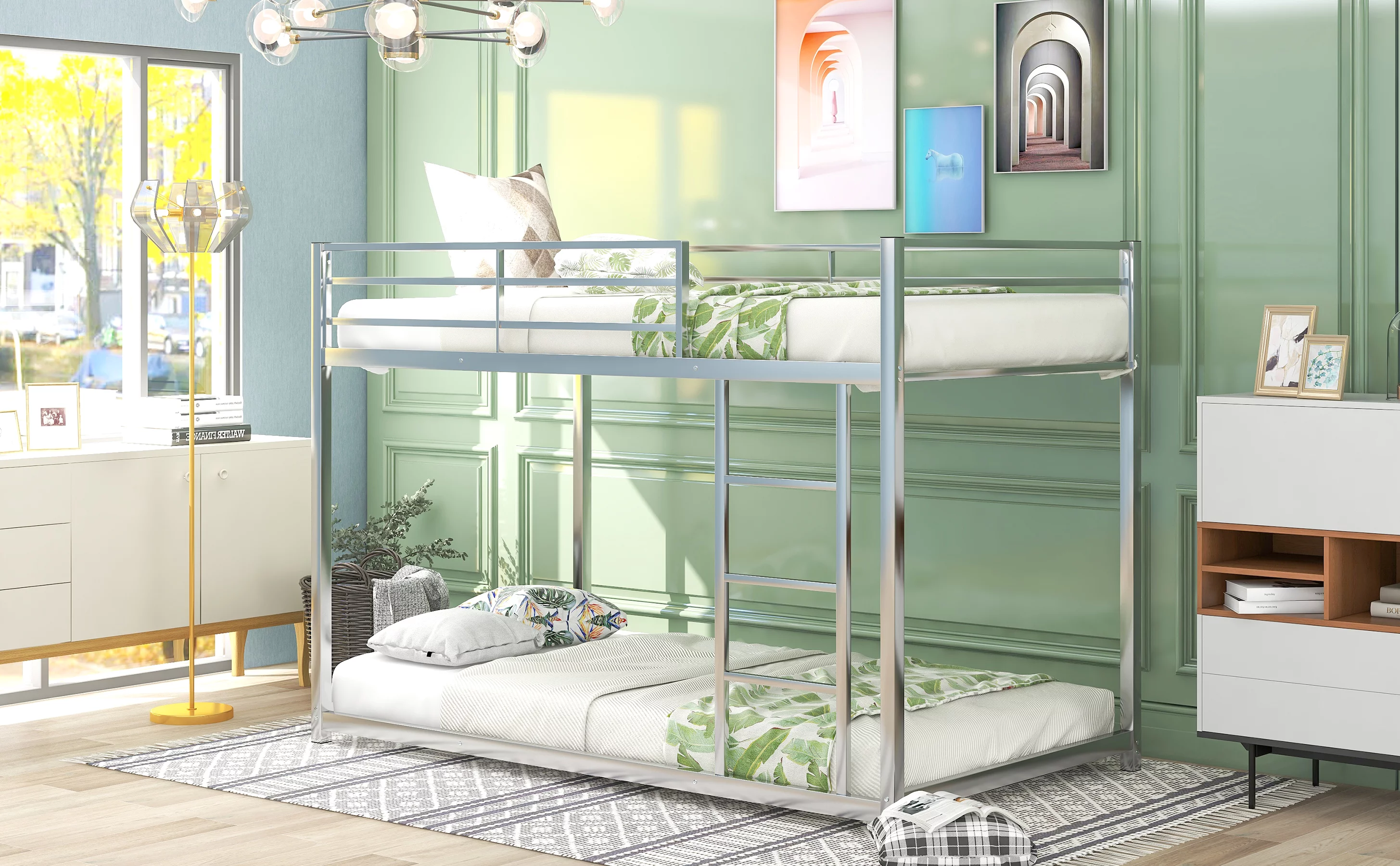 Euroco Metal Twin over Twin Bunk Bed with Storage Shelf for kids Room, Silver