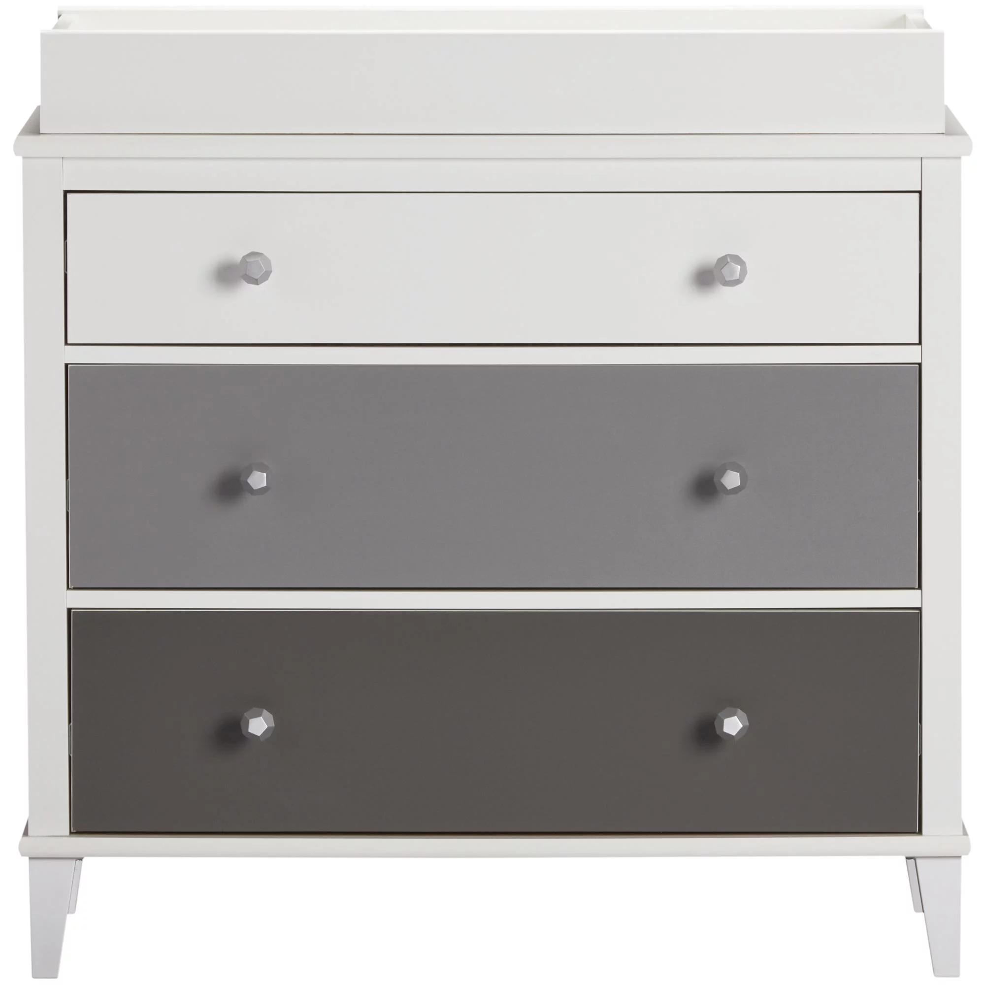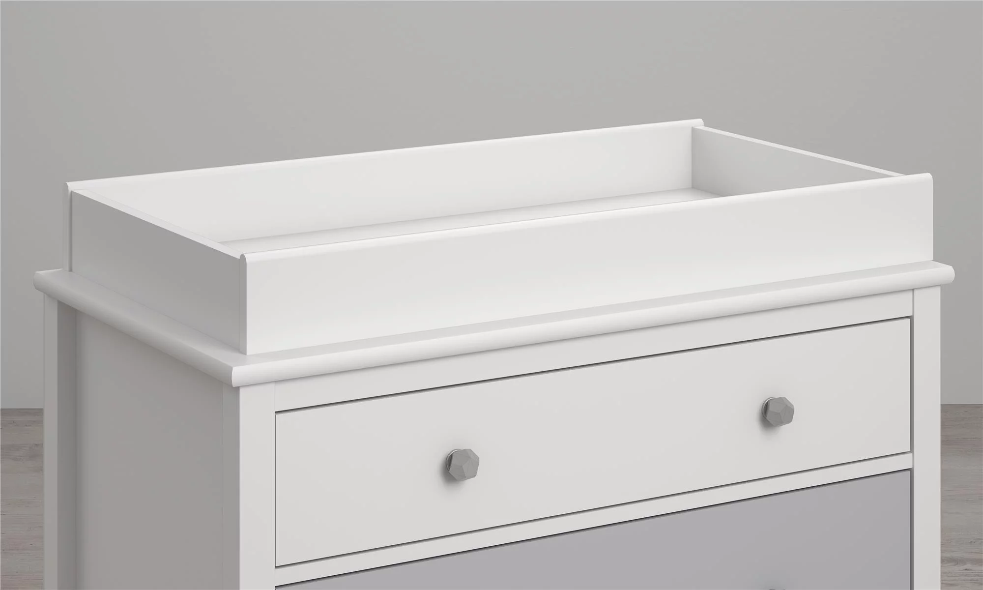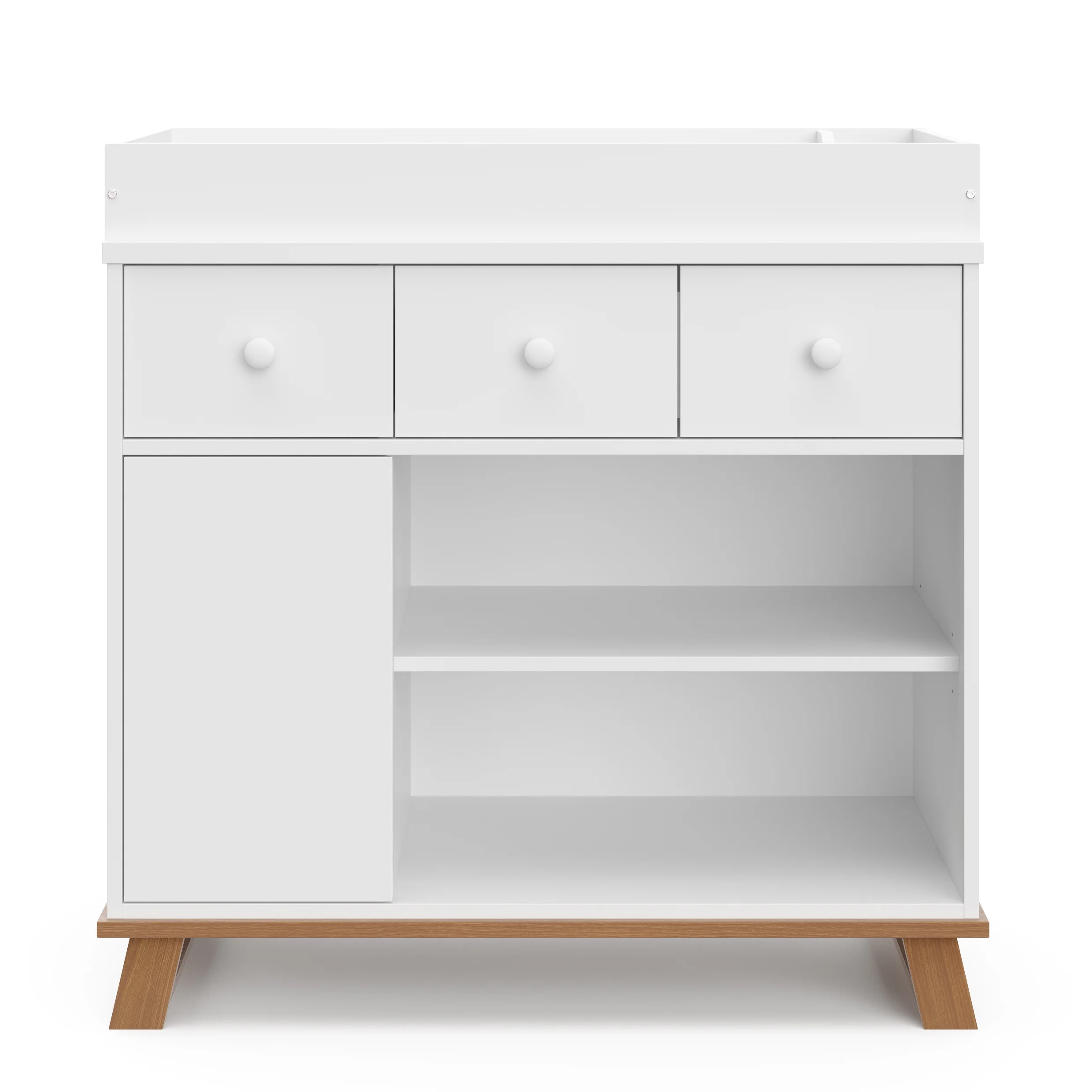 Storkcraft Modern Nursery Changing Table Dresser in White with Vintage Driftwood