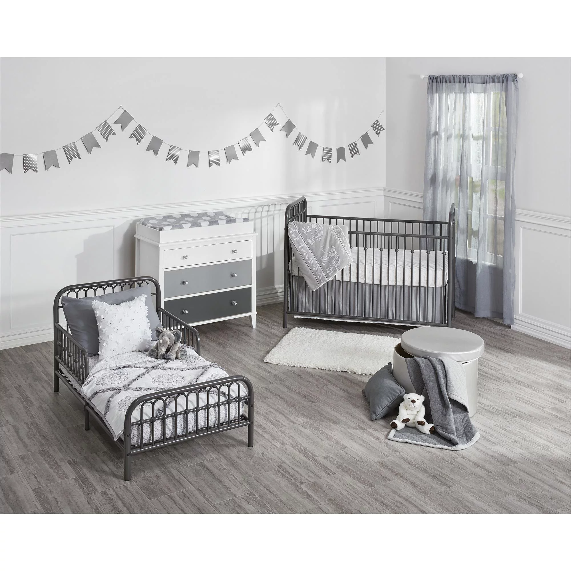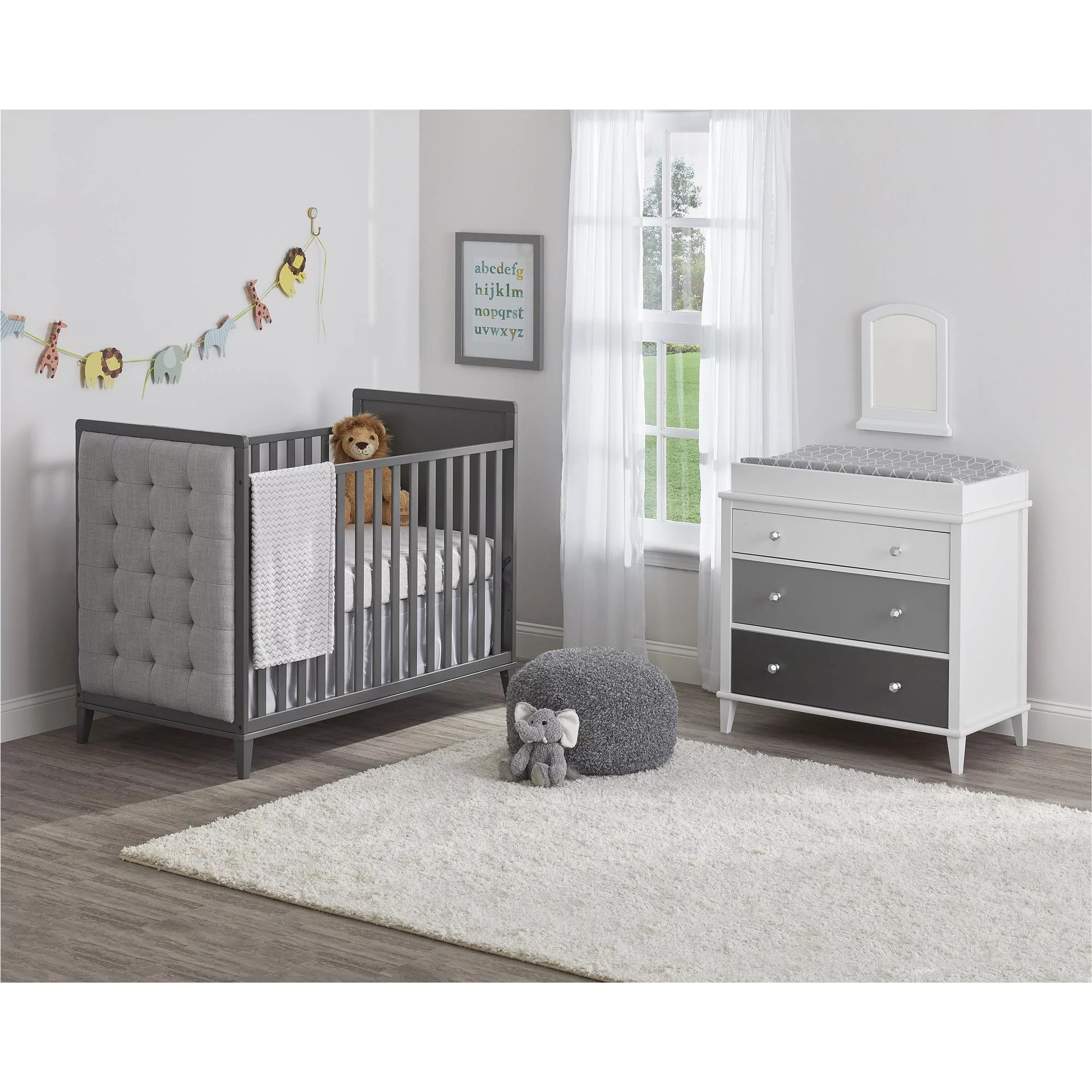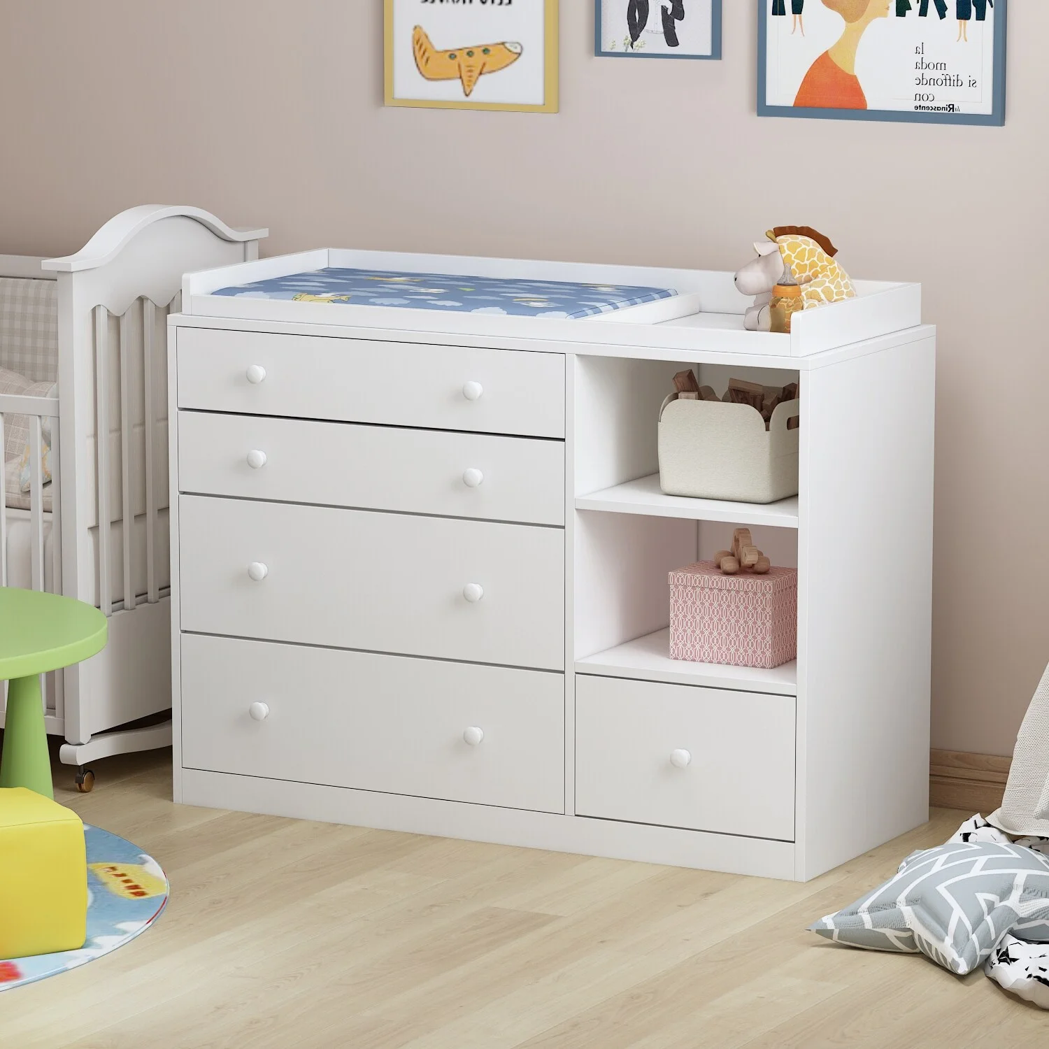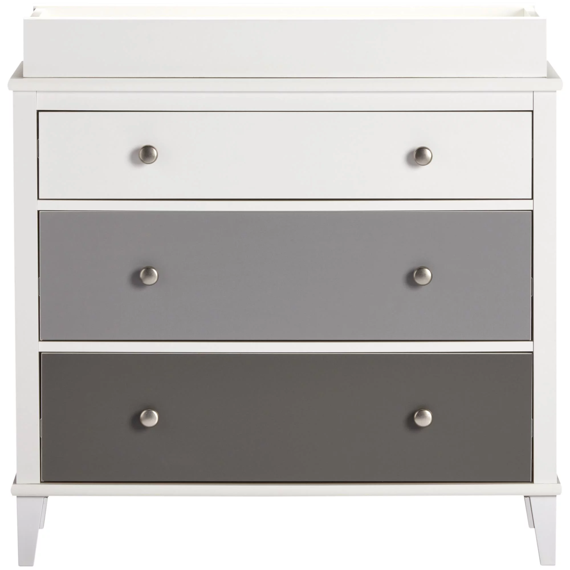 Storkcraft Modern Nursery Changing Table Dresser in White with Vintage Driftwood