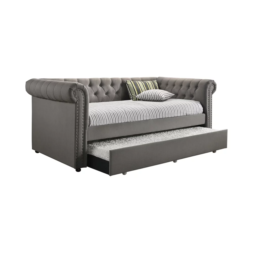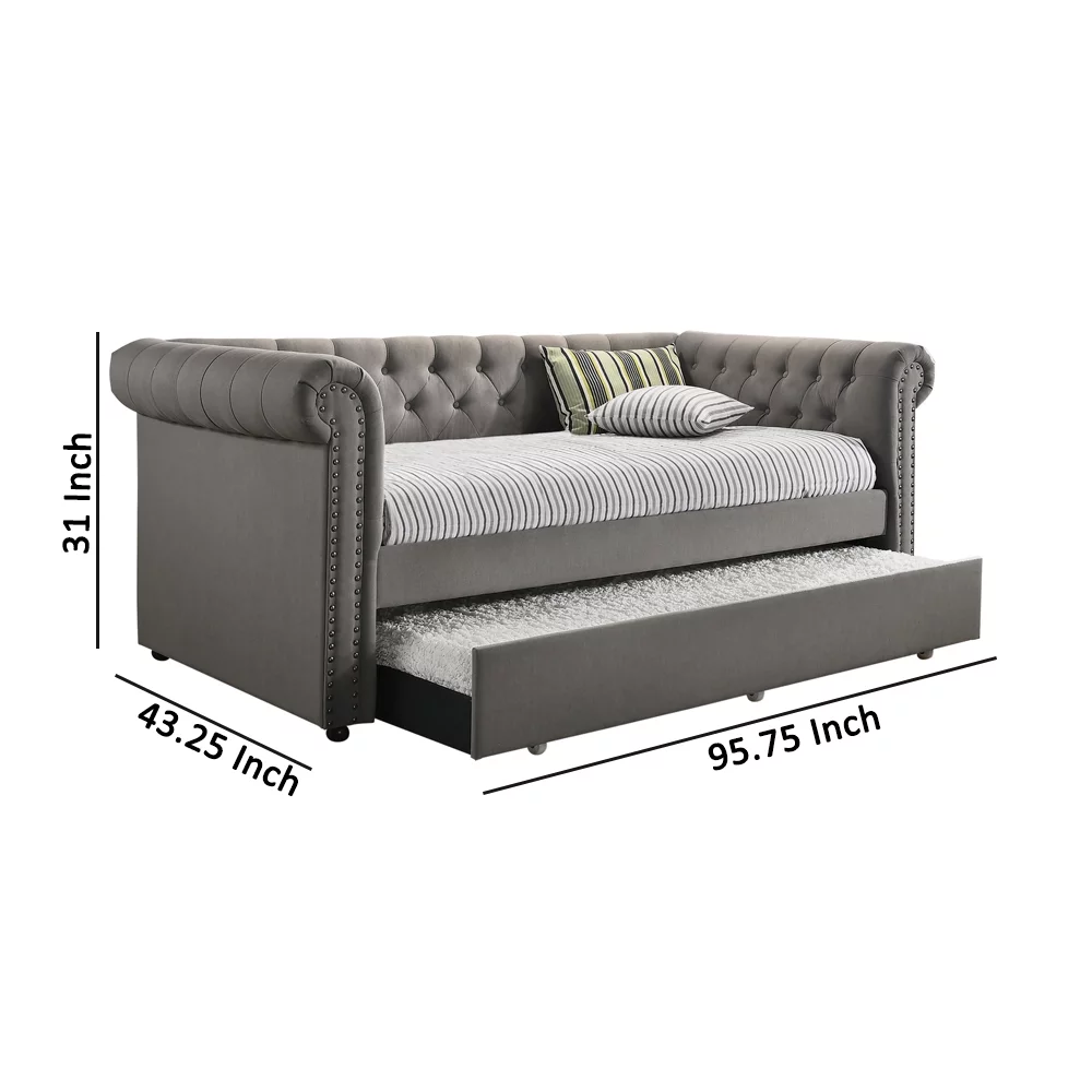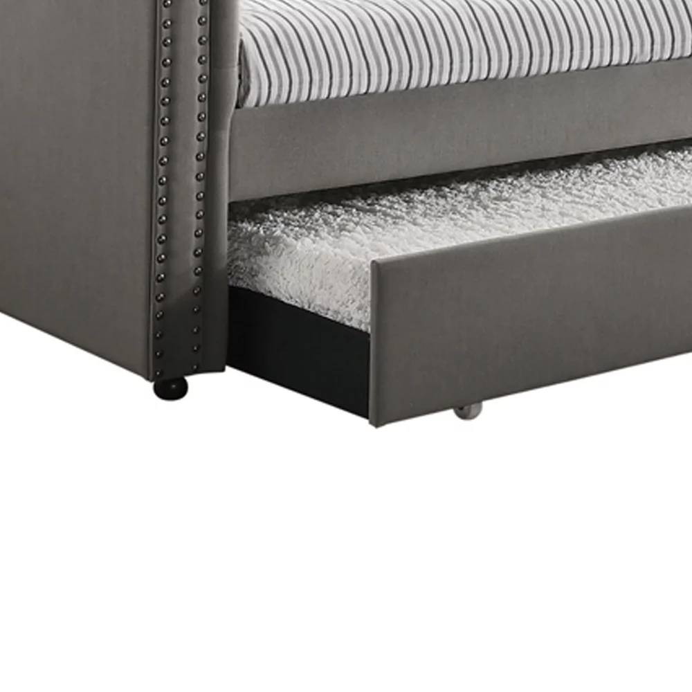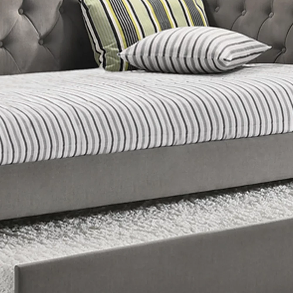 Fabric Upholstered Button Tufted Twin Daybed with Trundle Gray- Saltoro Sherpi