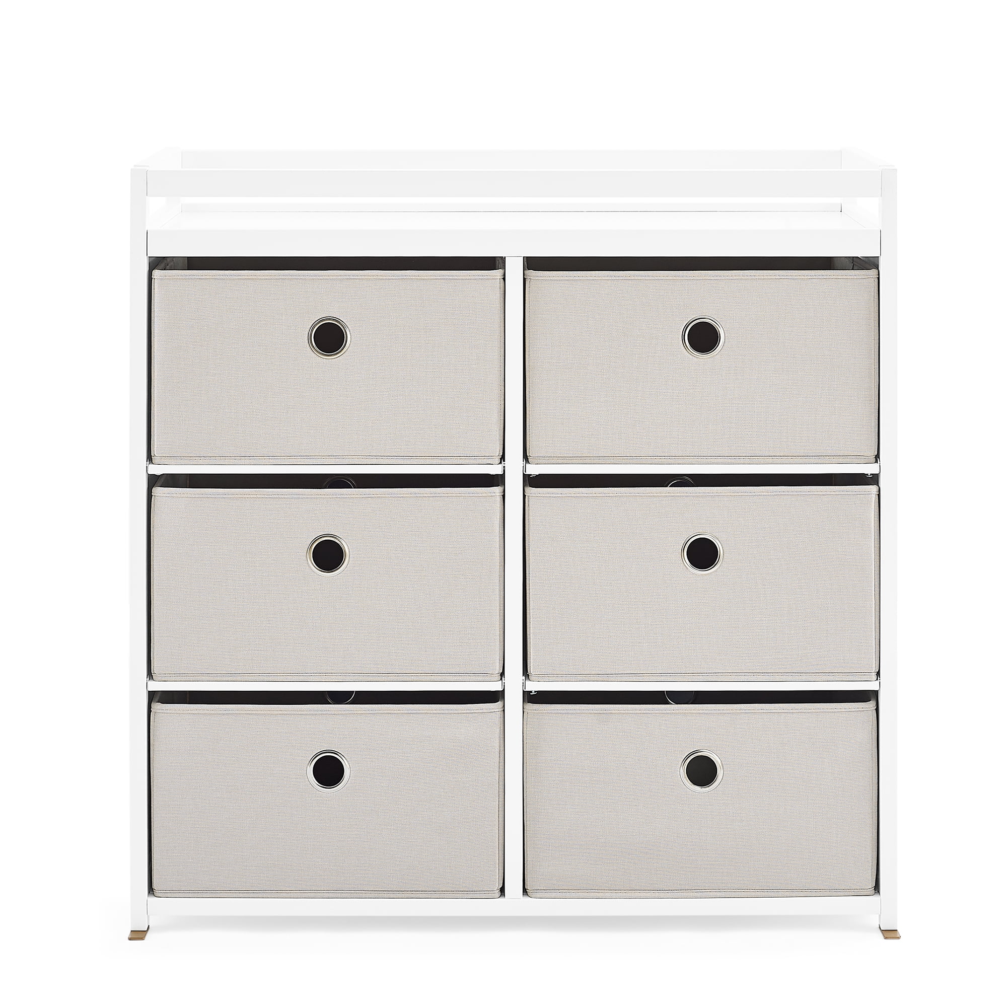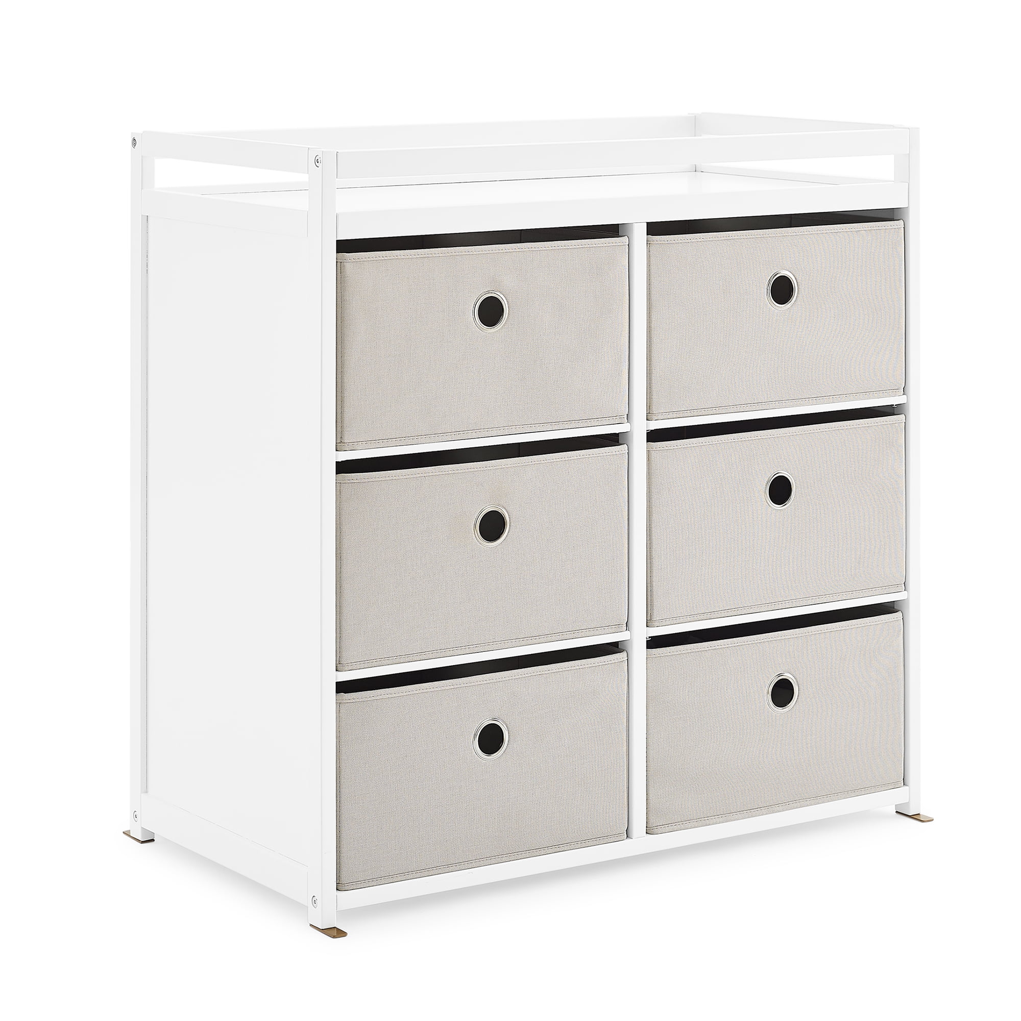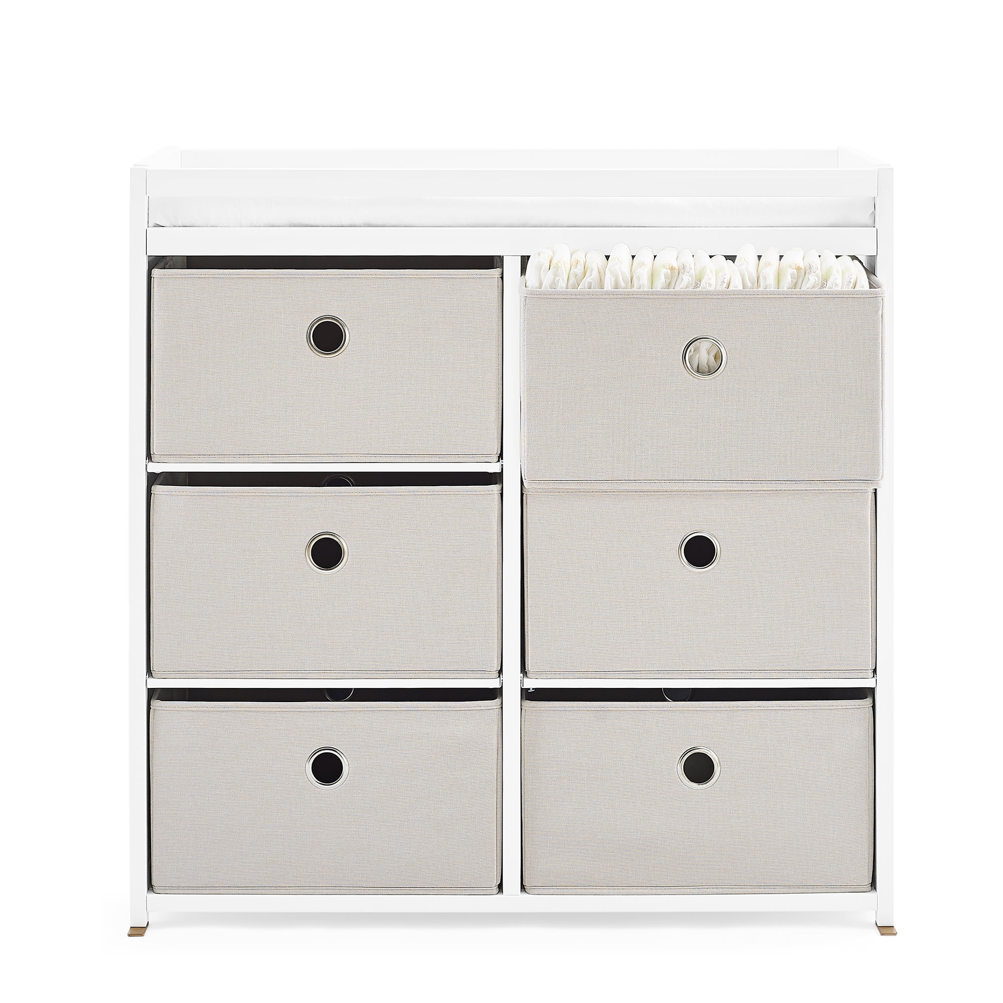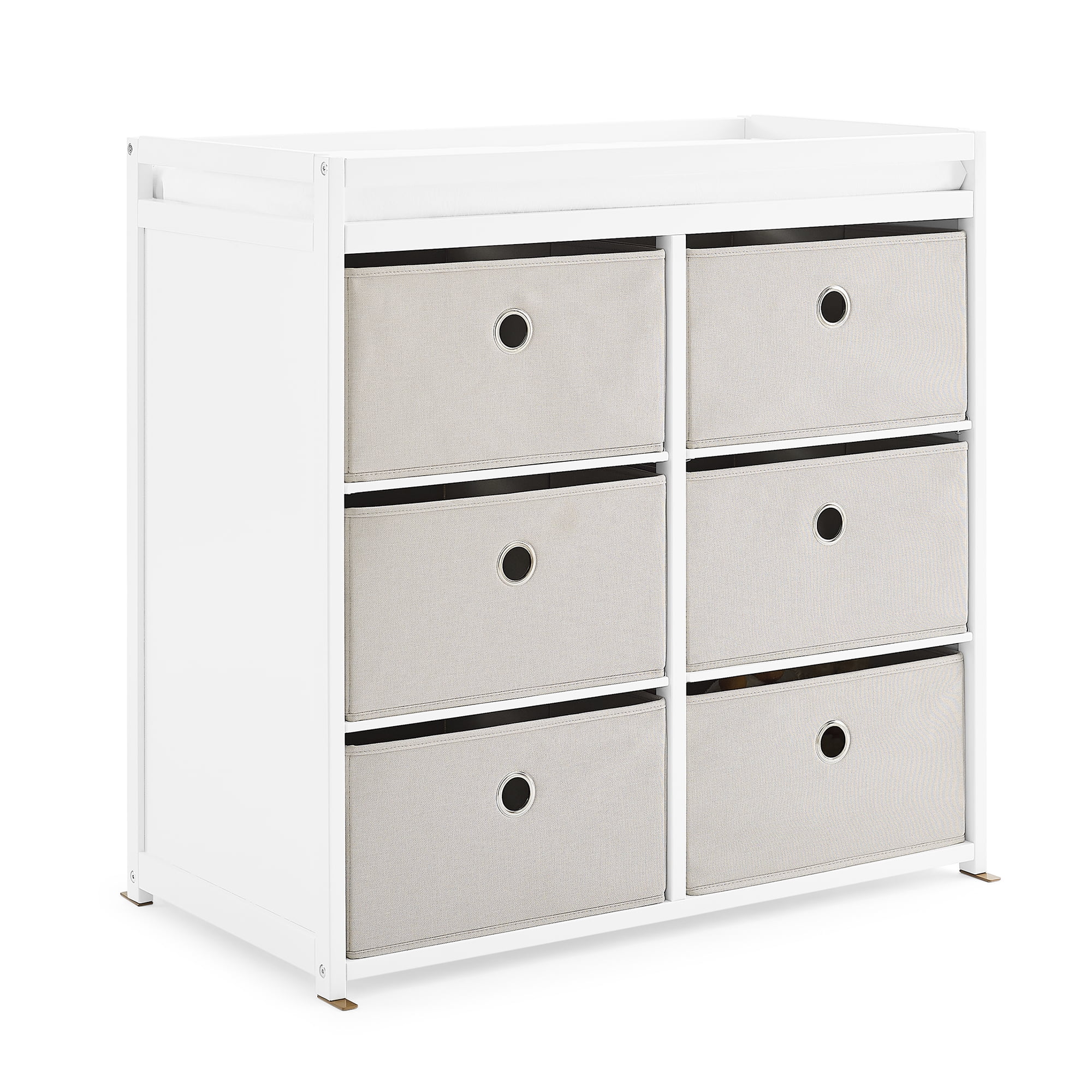 Delta Children Hayes Changing Table with Fabric Bins, Bianca White/Flax Bins