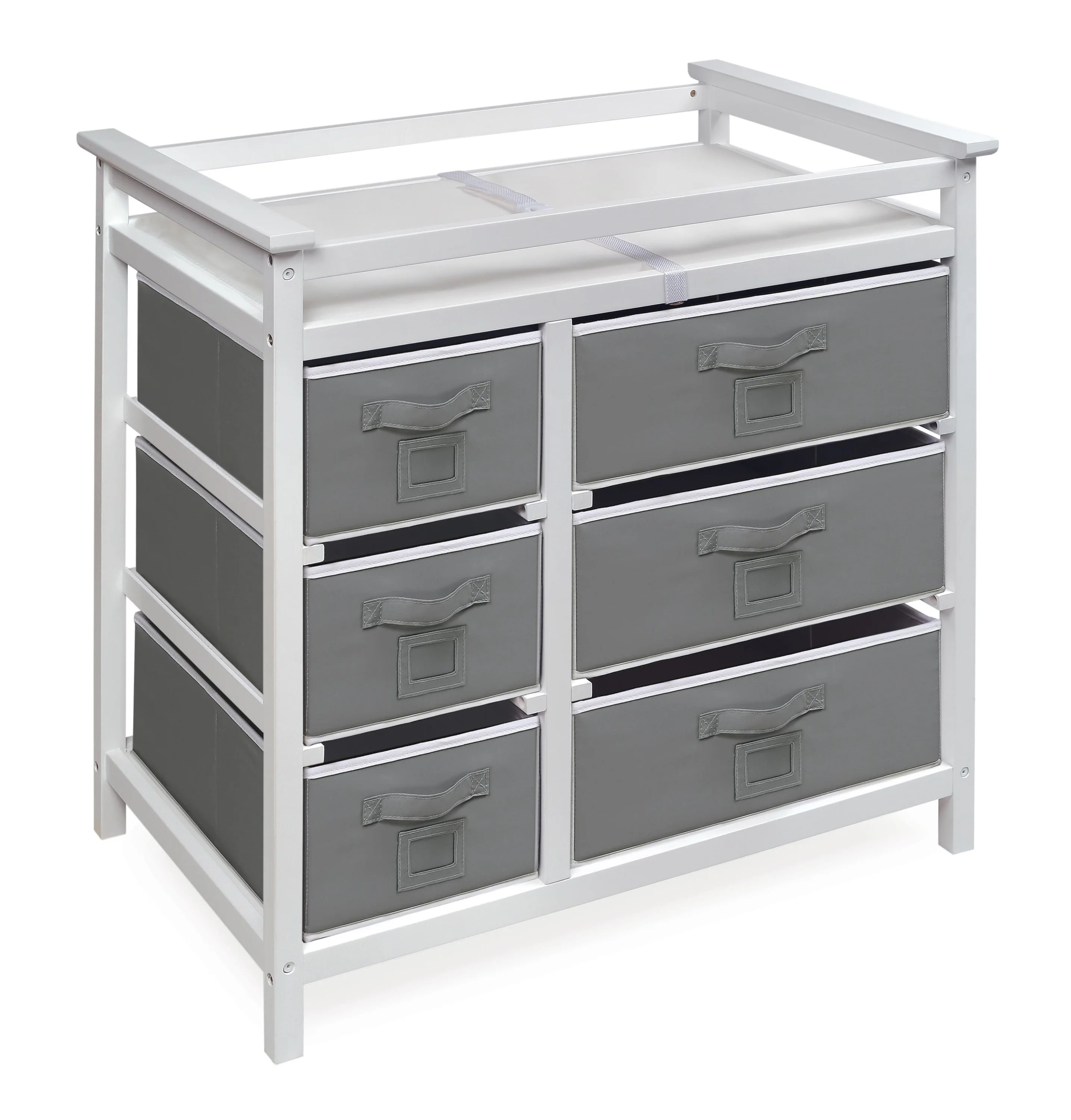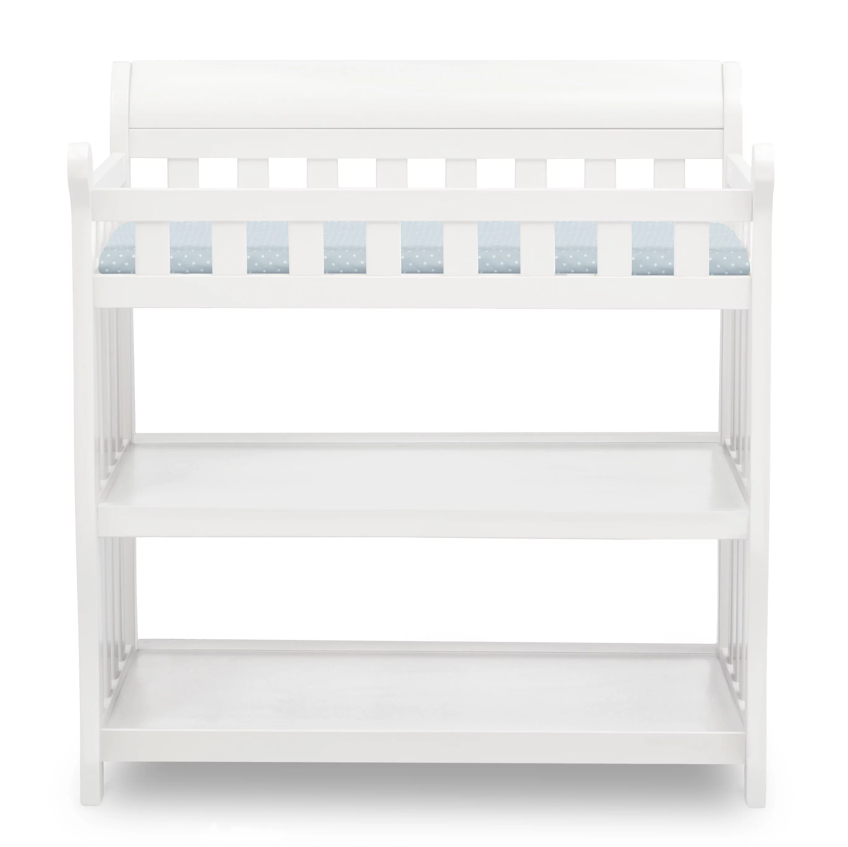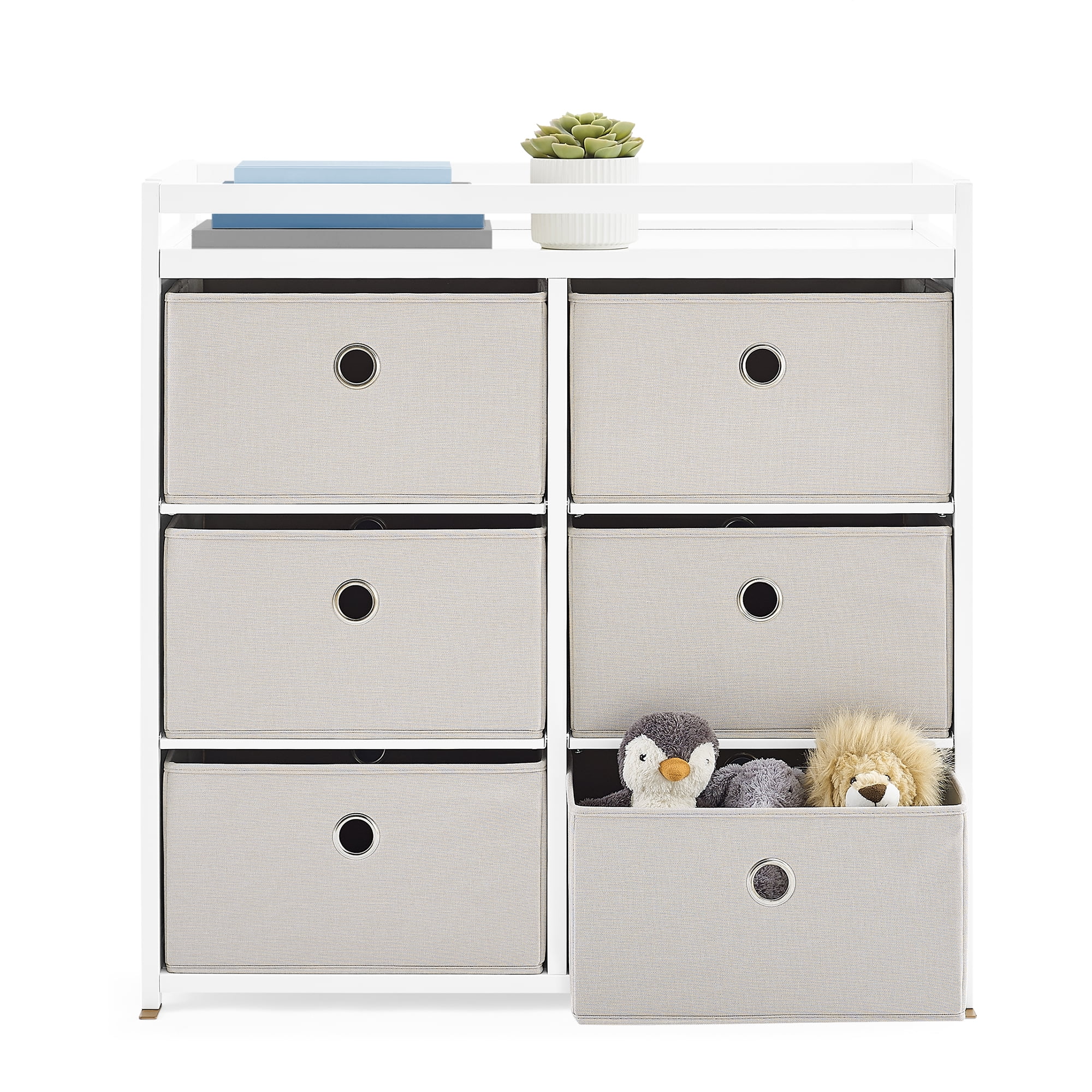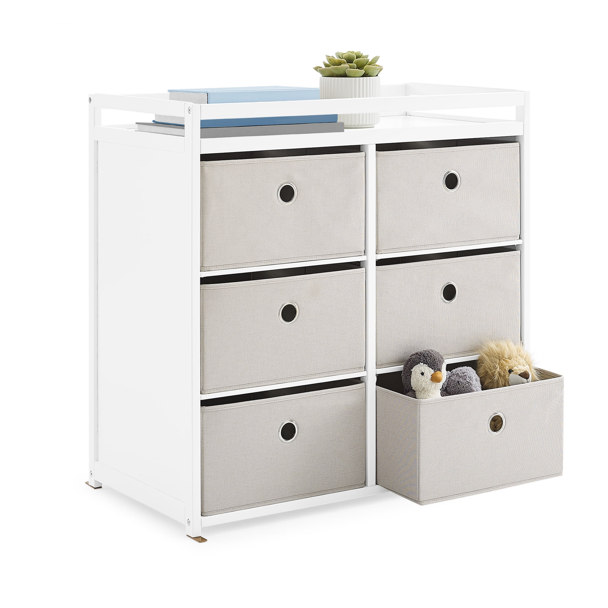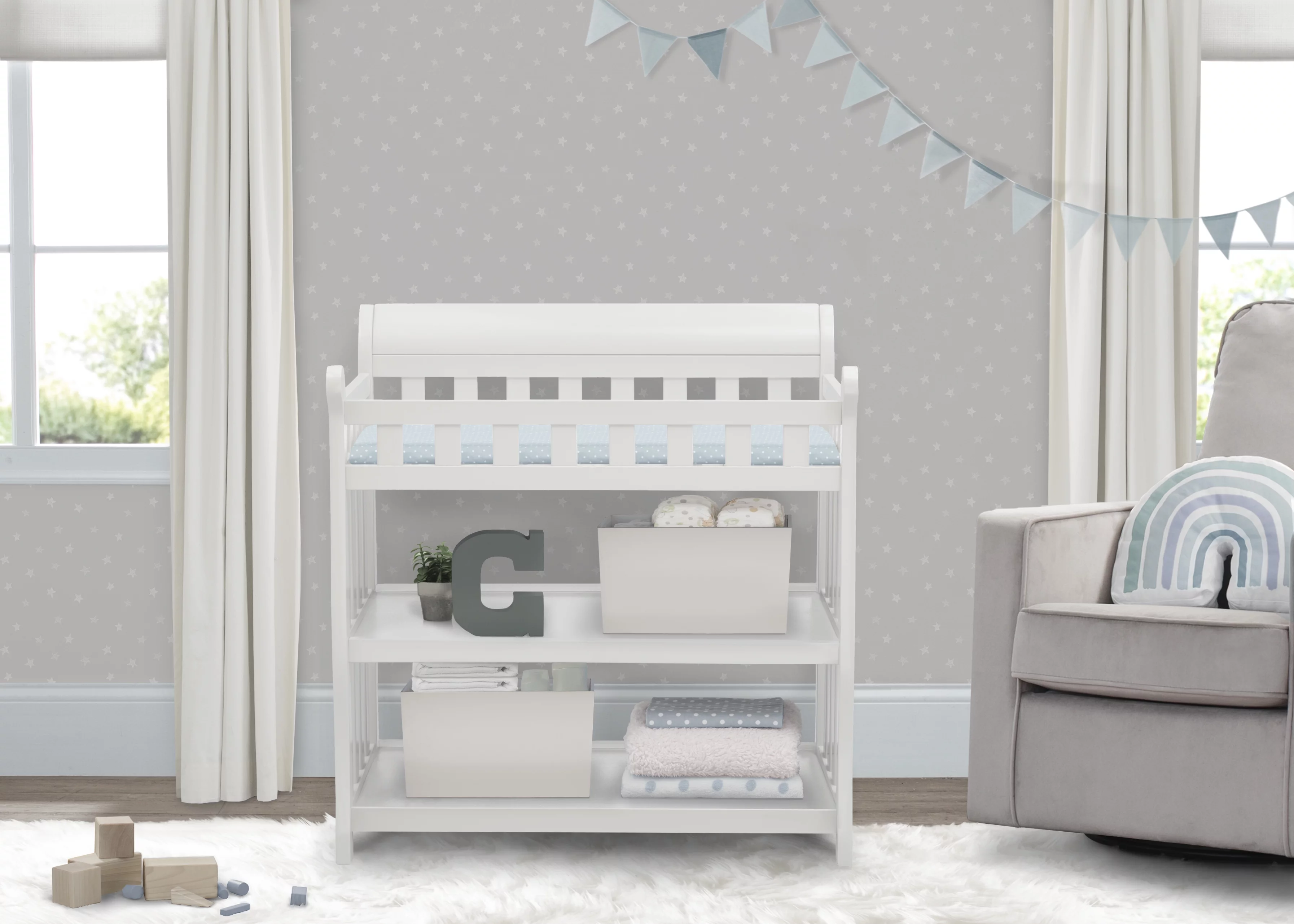 Delta Children Hayes Changing Table with Fabric Bins, Bianca White/Flax Bins