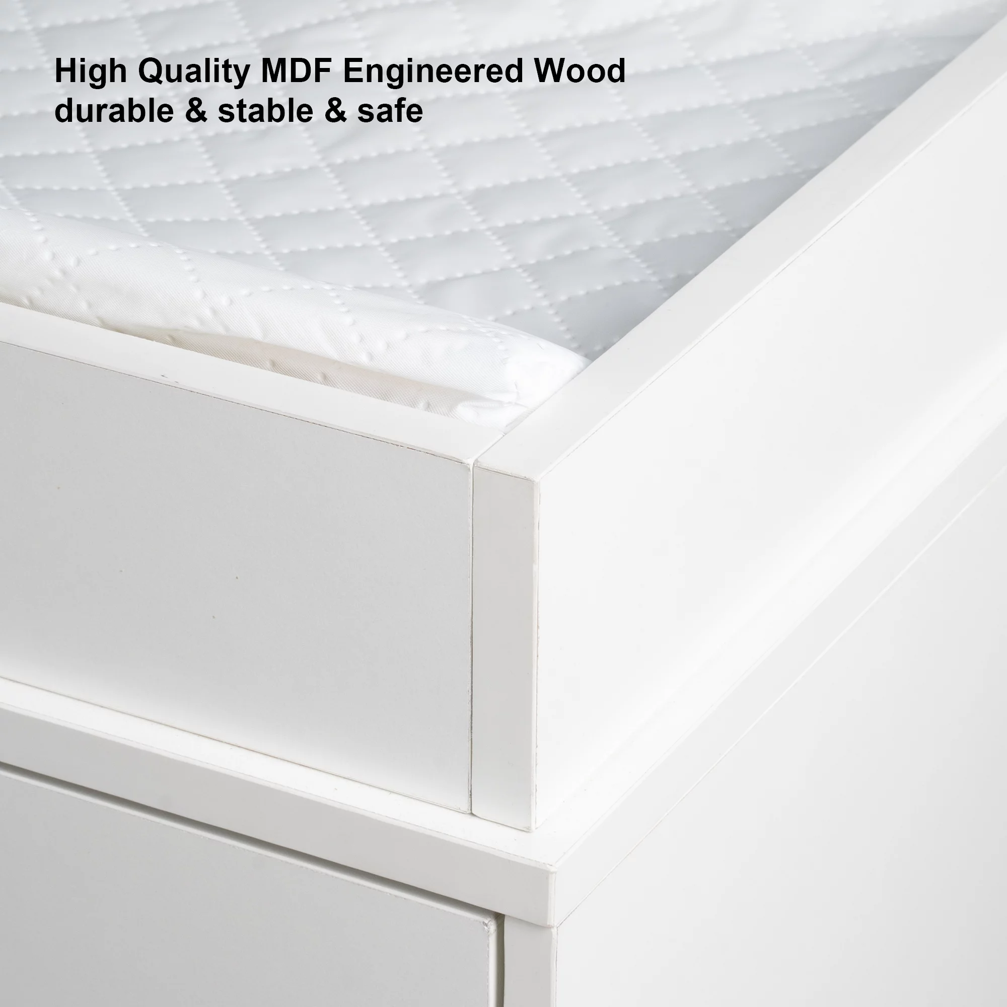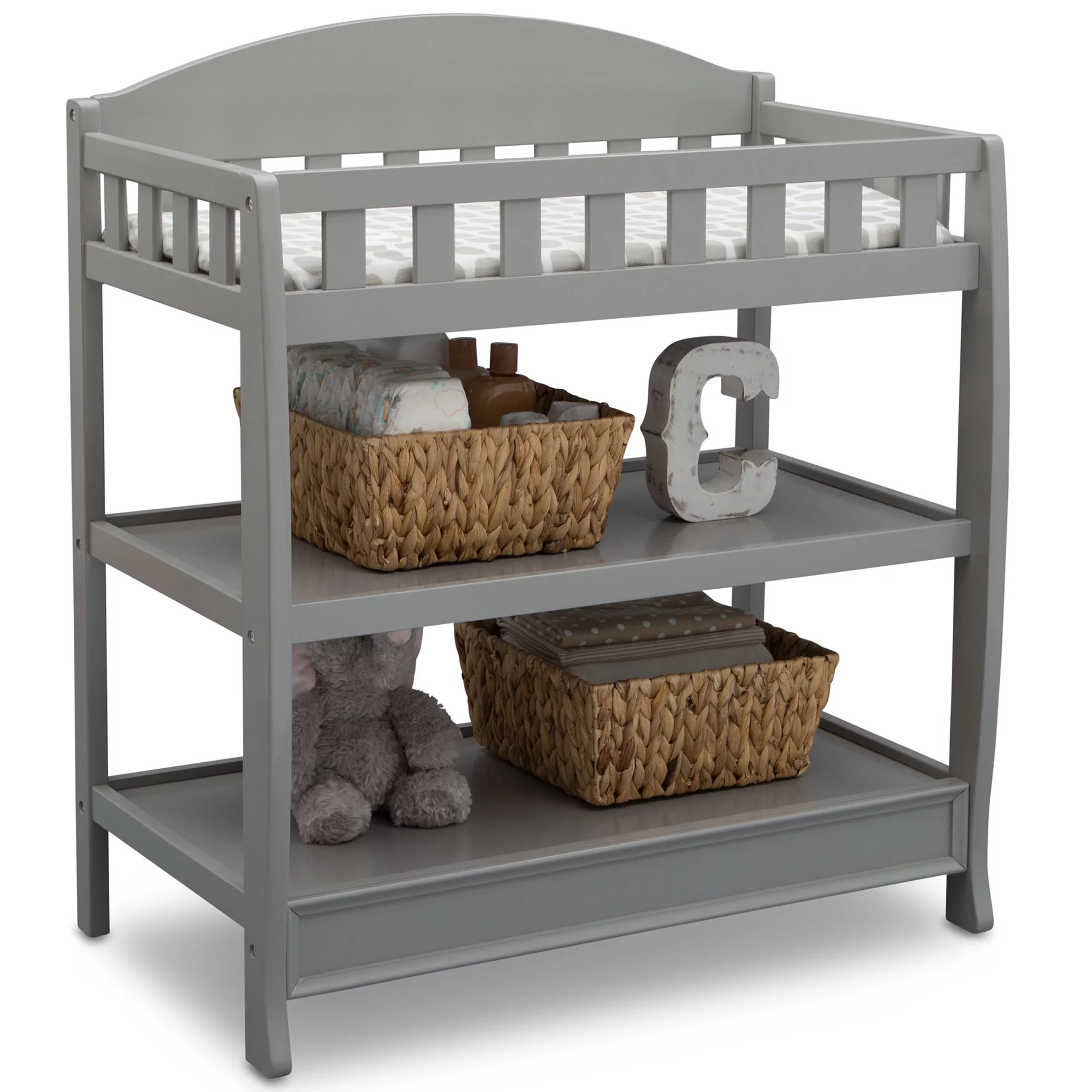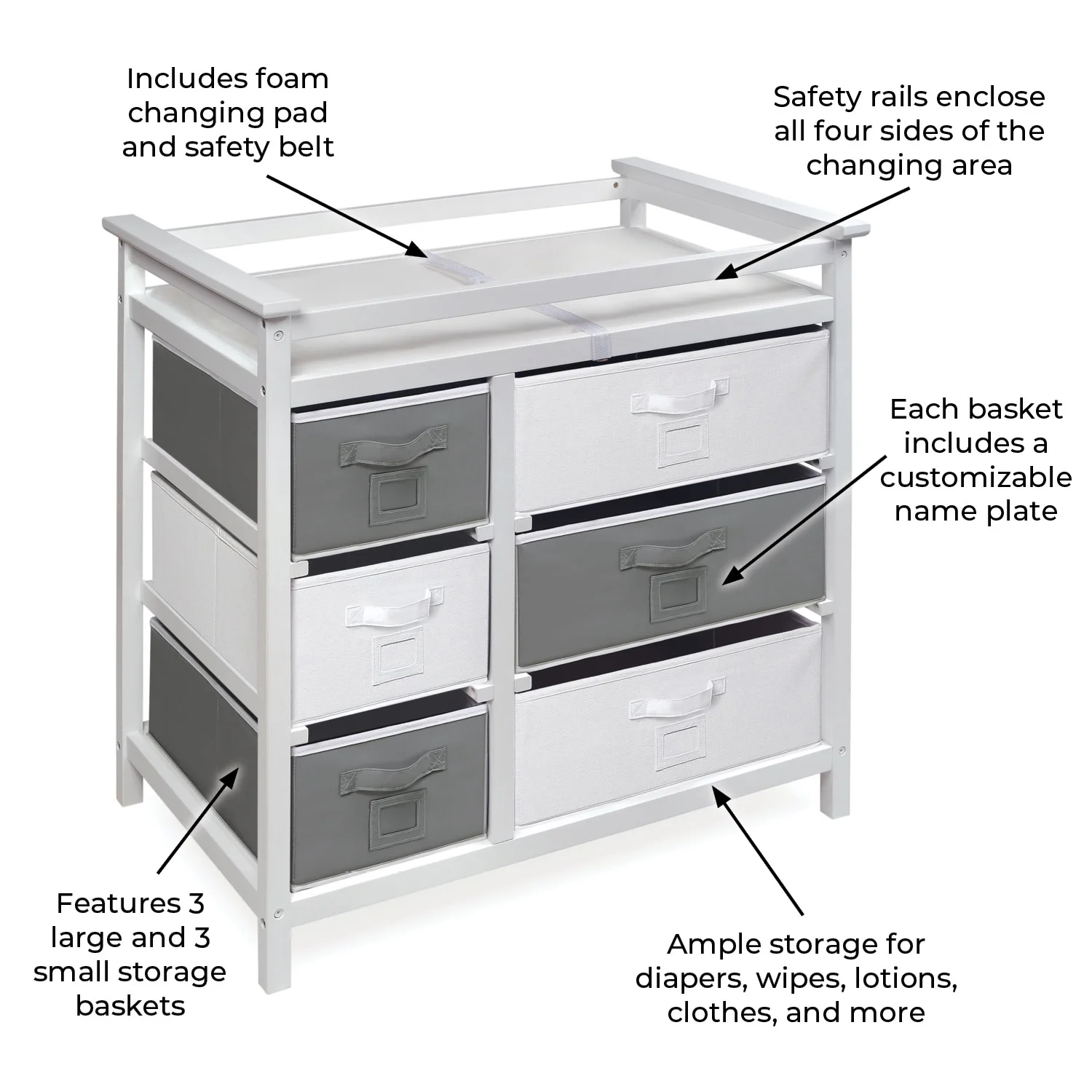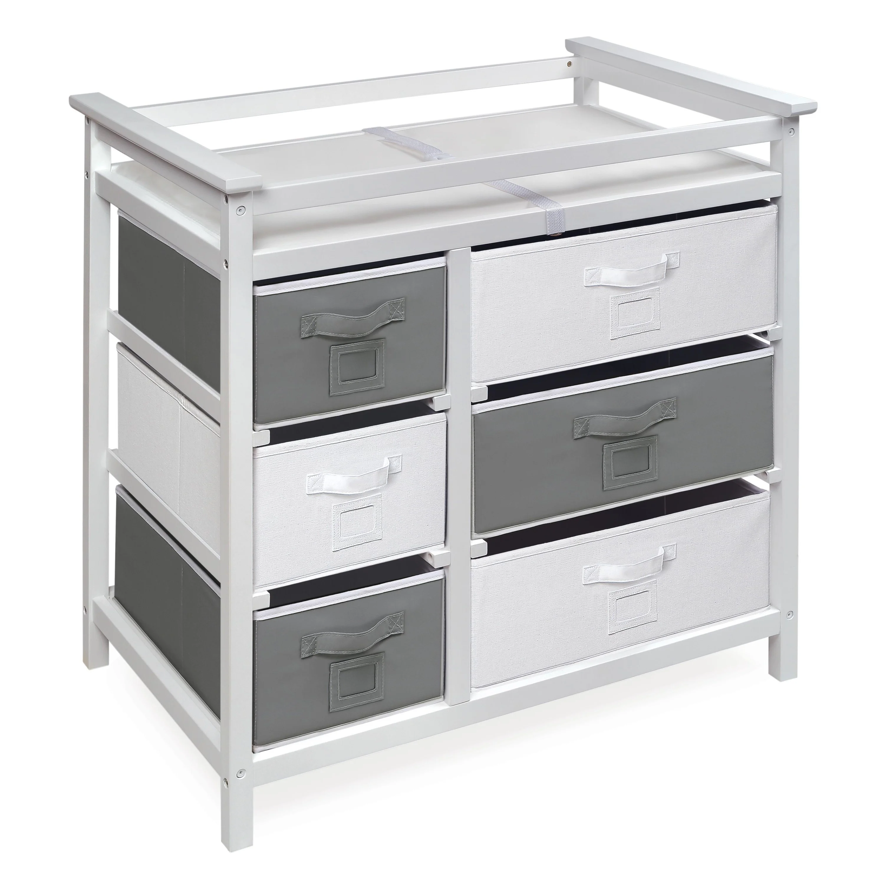Delta Children Hayes Changing Table with Fabric Bins, Bianca White/Flax Bins
