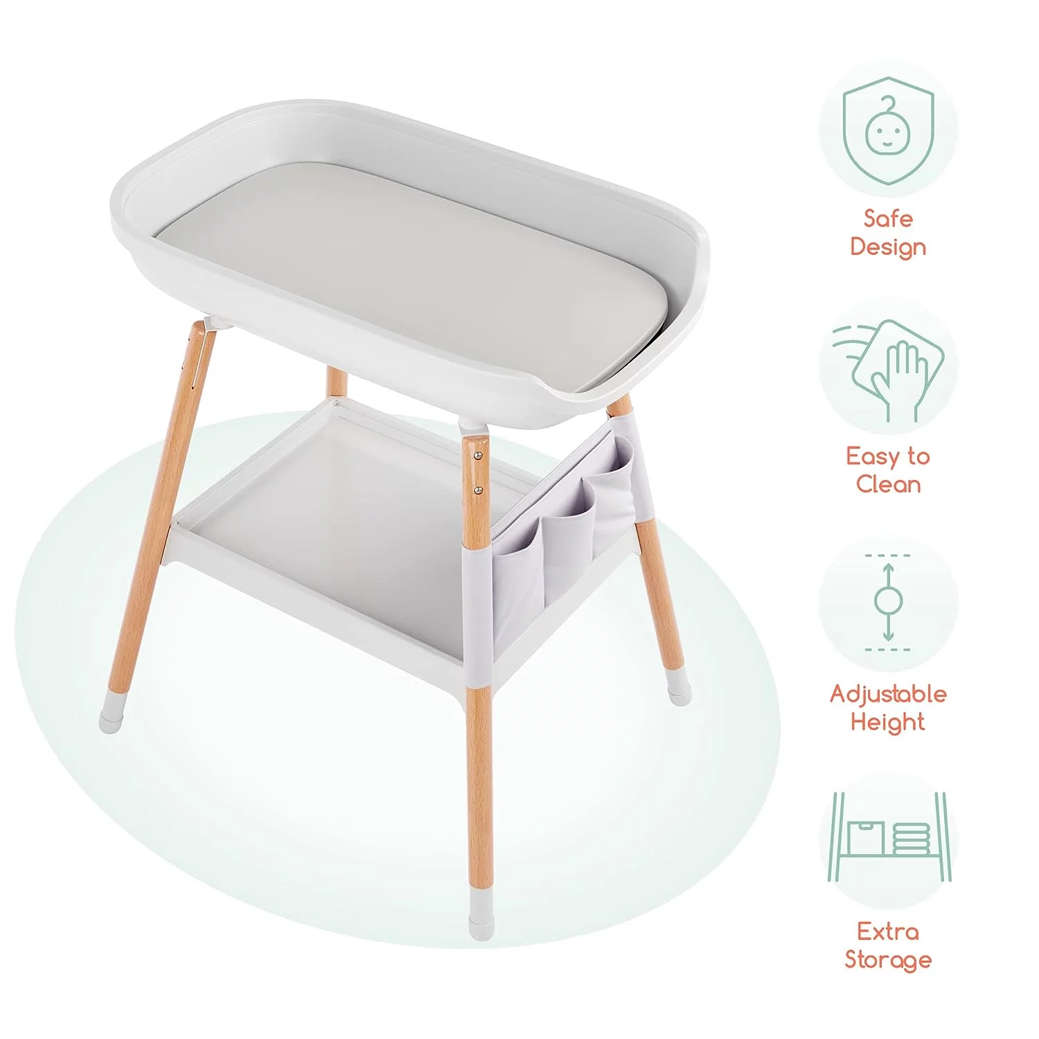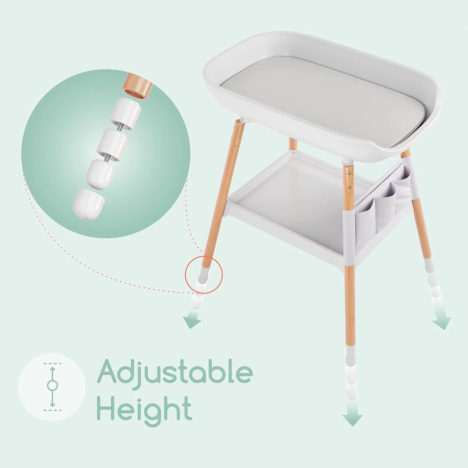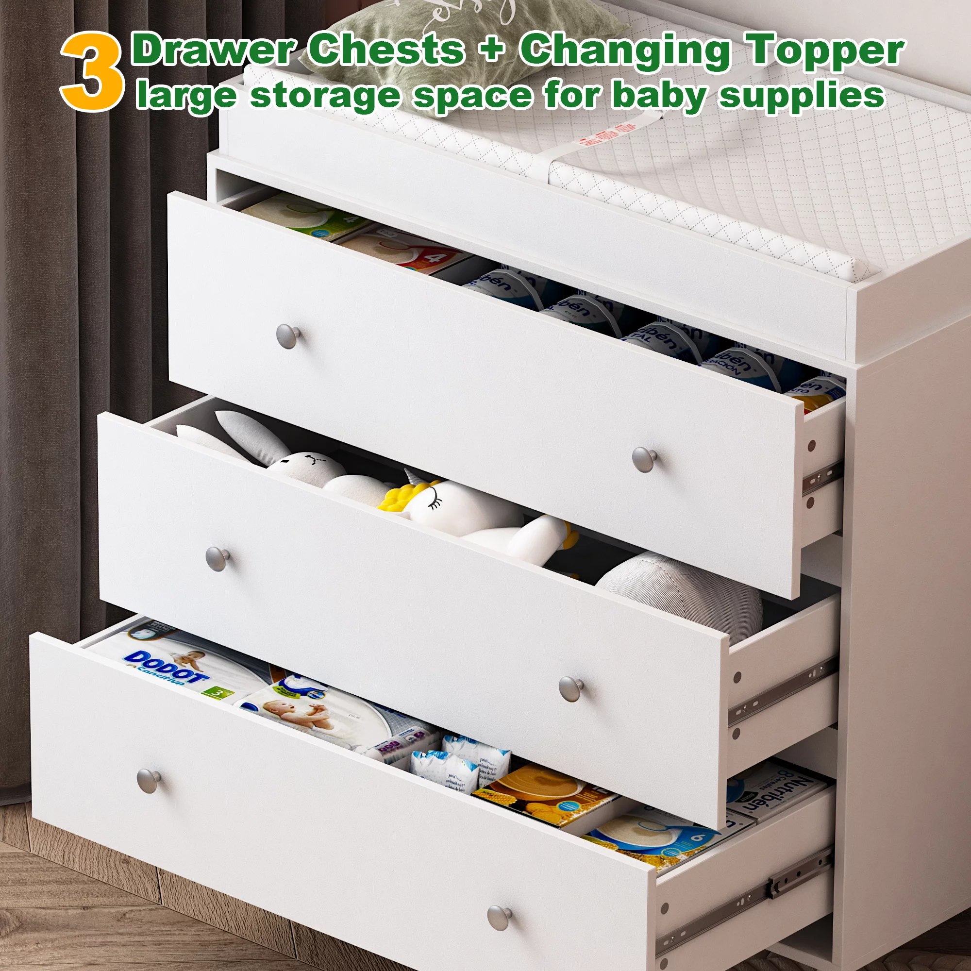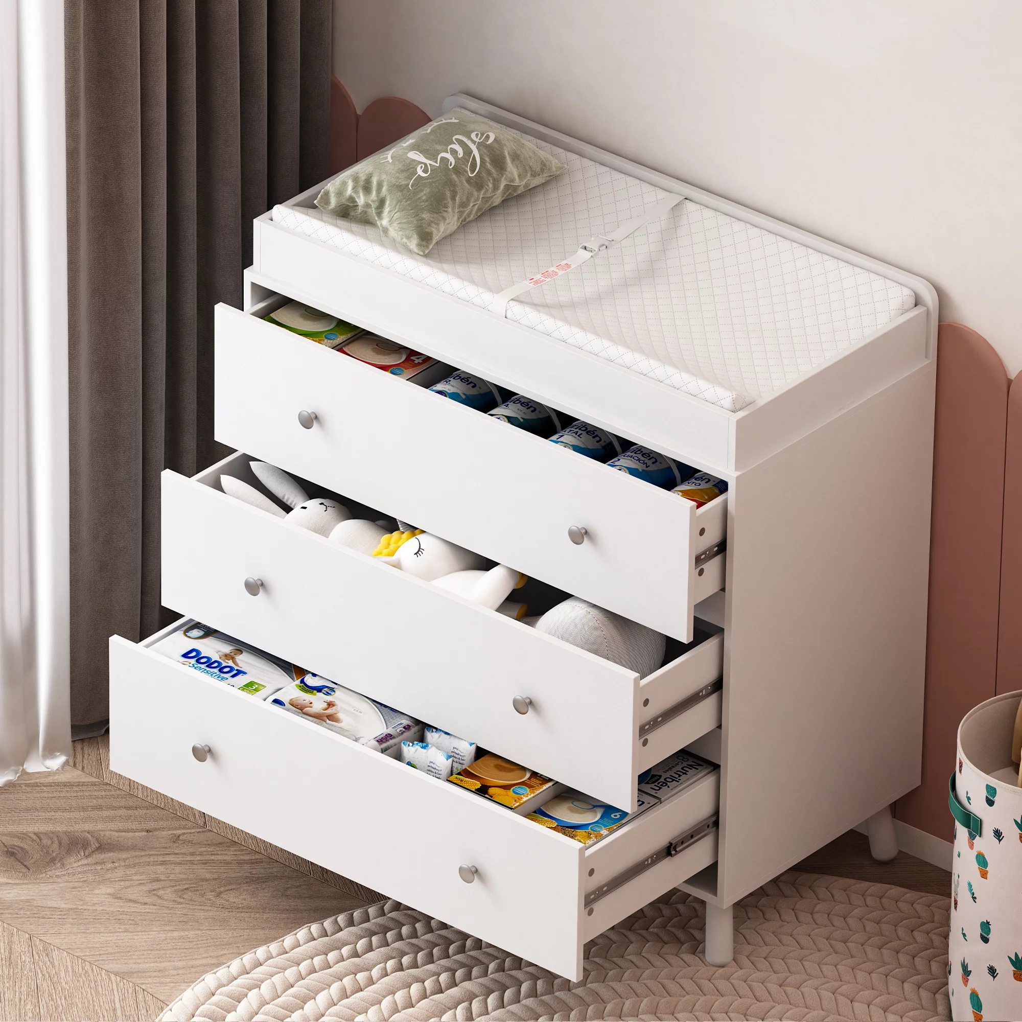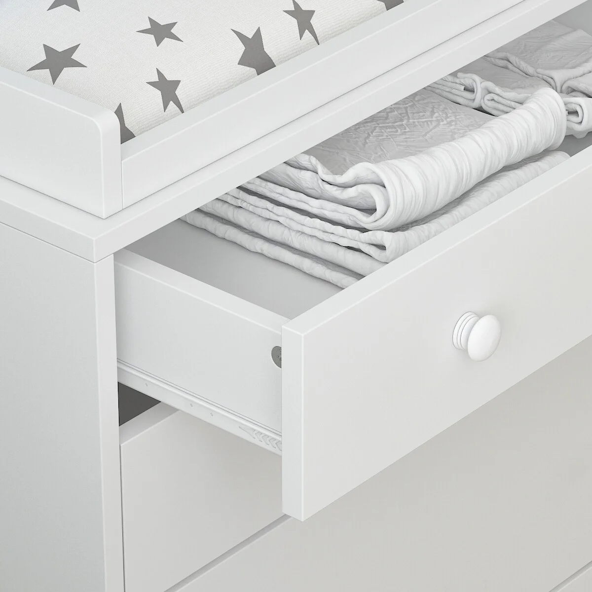 Delta Children Hayes Changing Table with Fabric Bins, Bianca White/Flax Bins