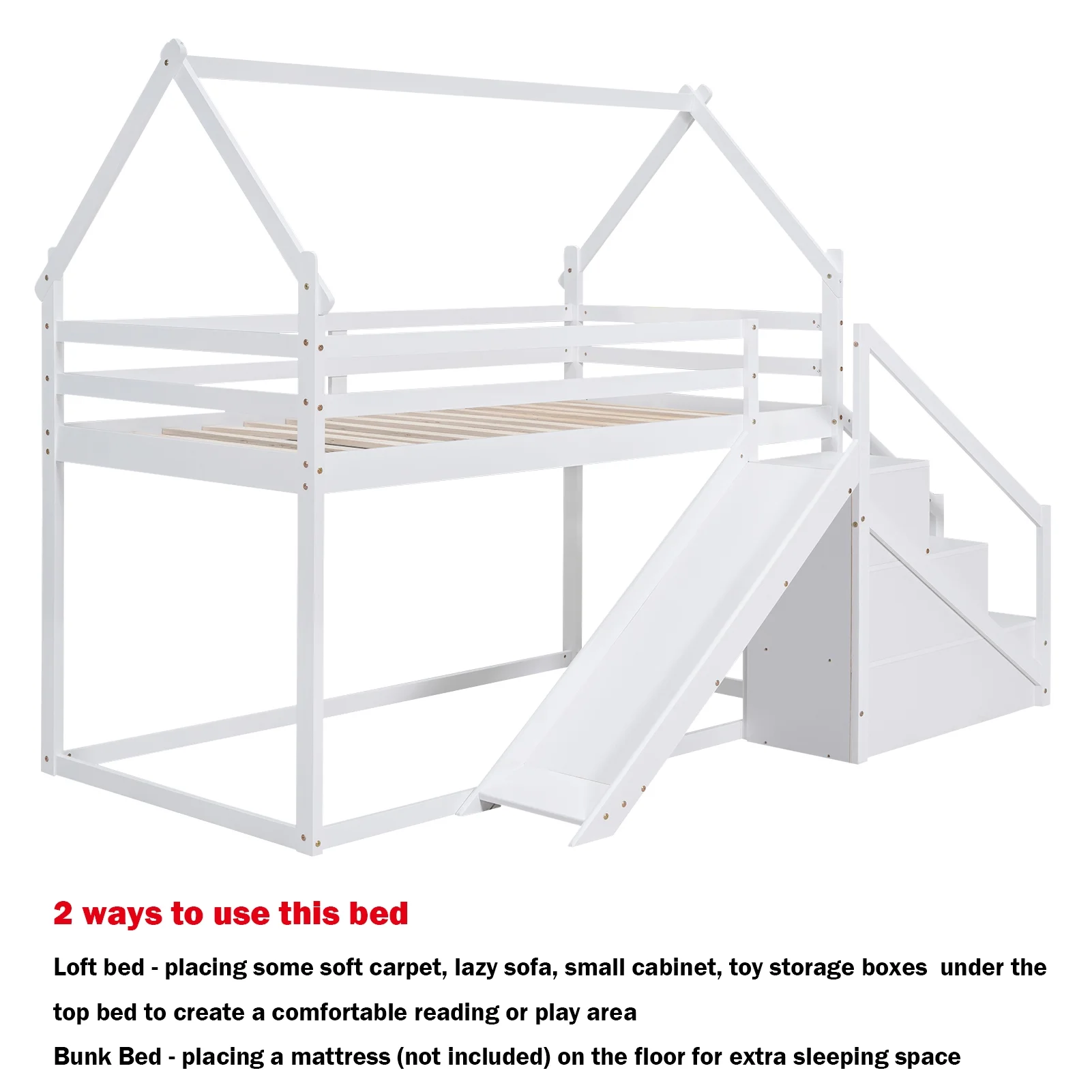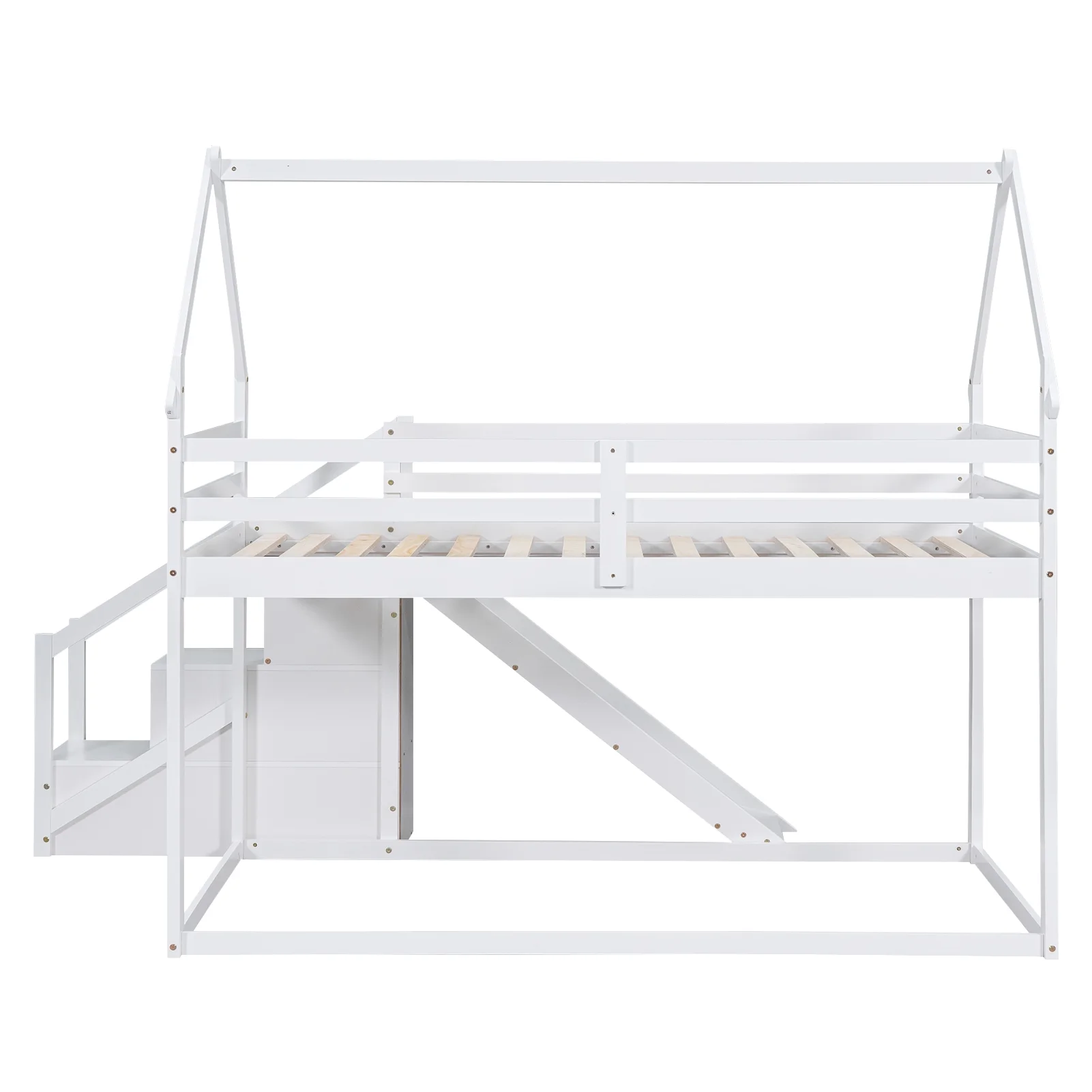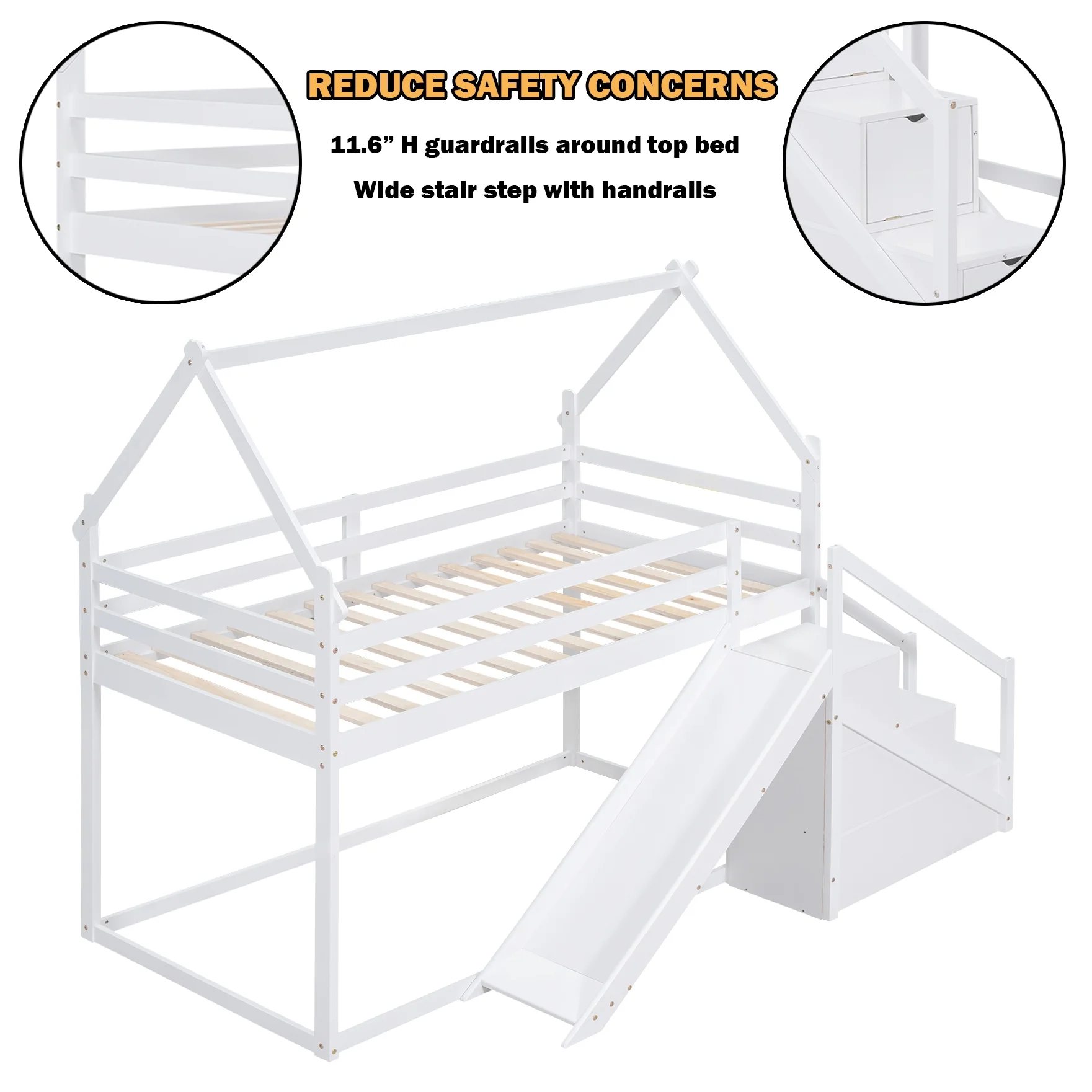 Euroco Twin over Twin Bunk Bed with Drawer and Cabinet for Kids Bedroom, White
