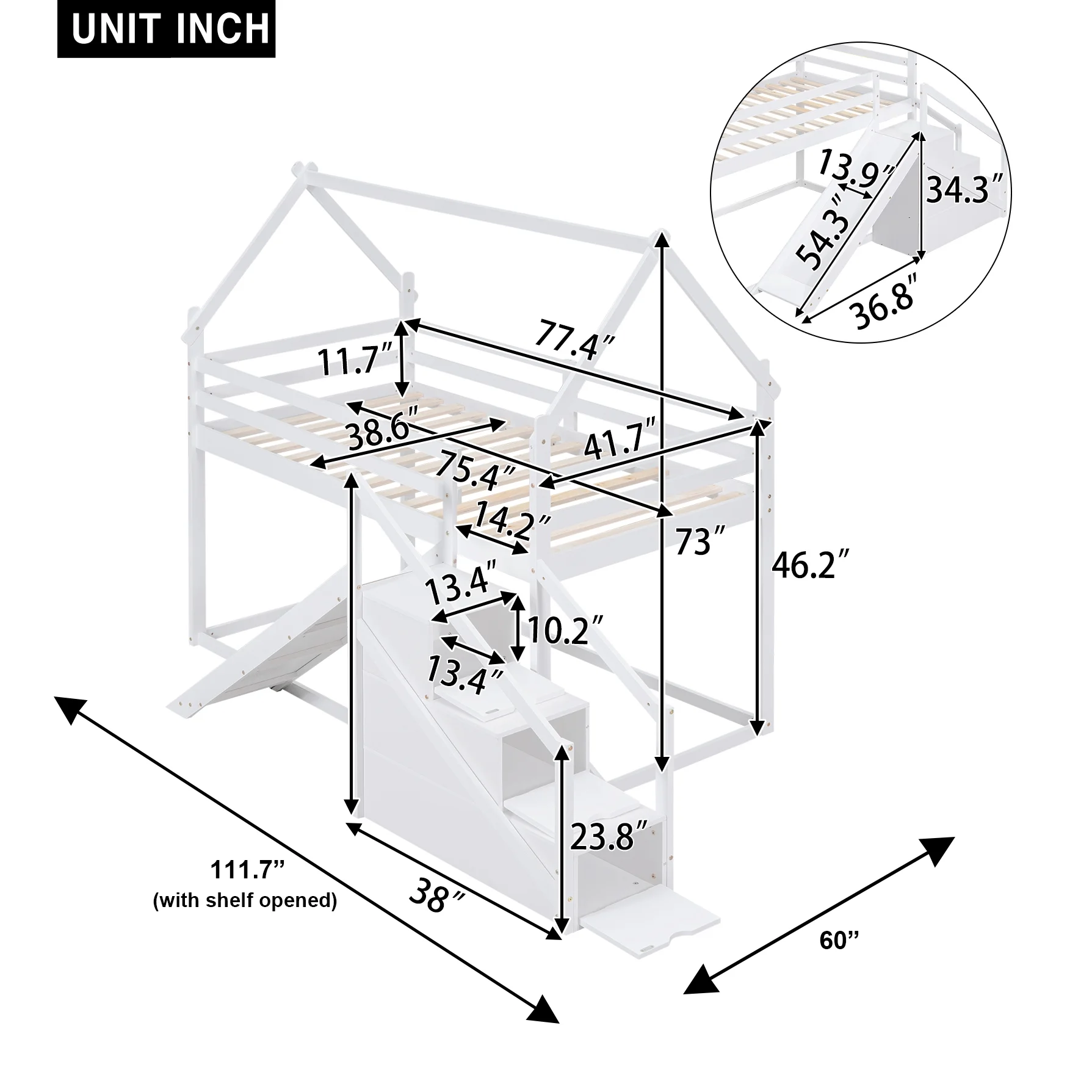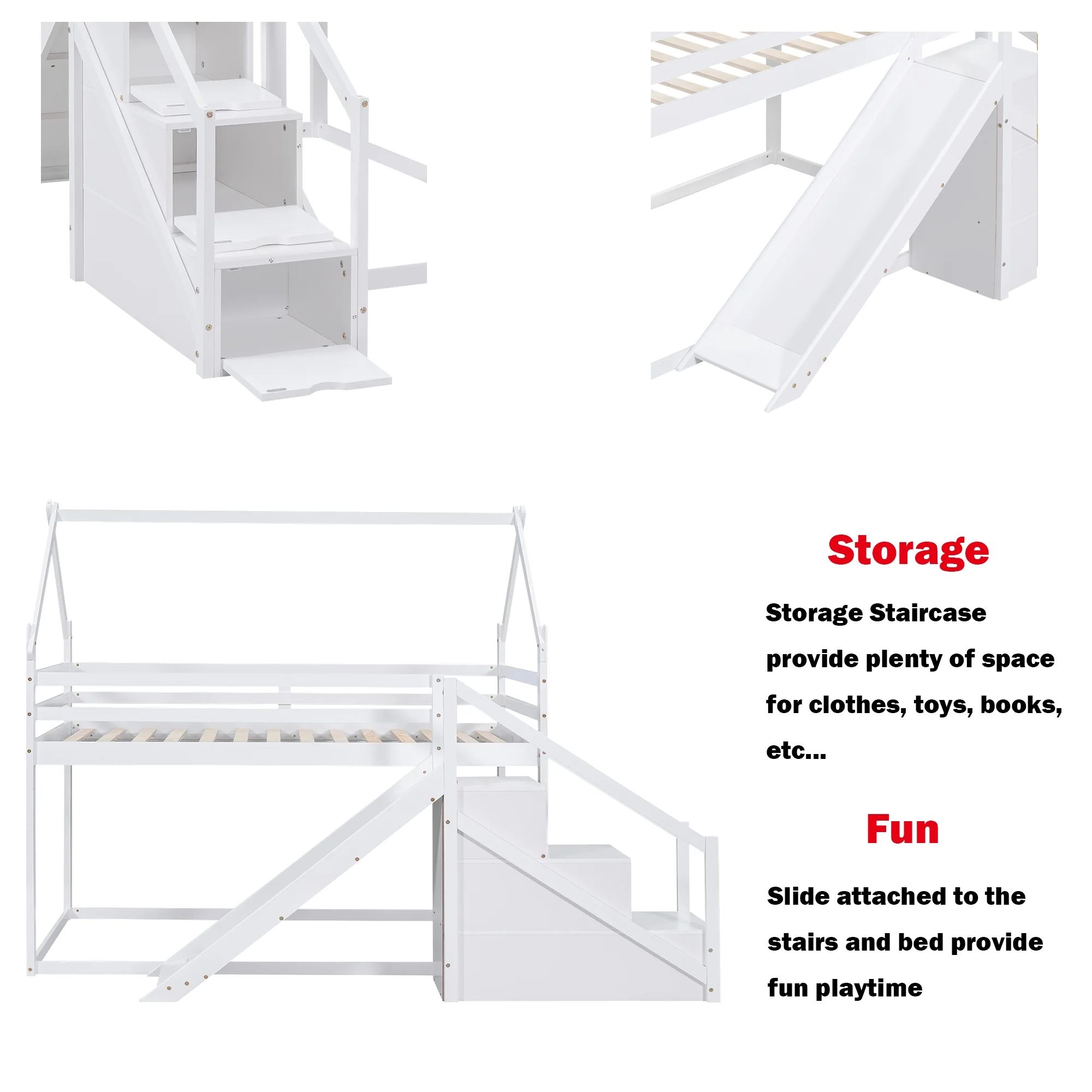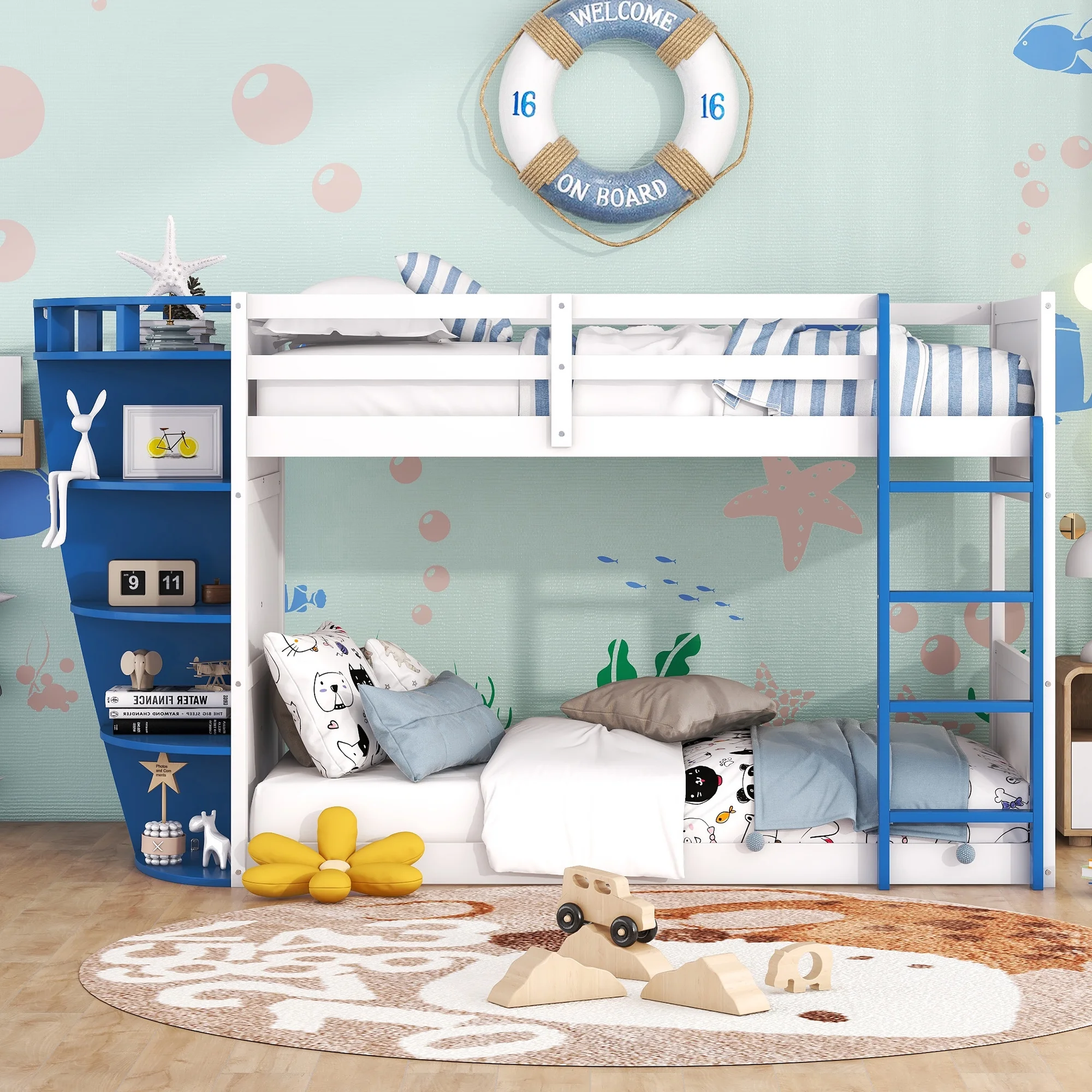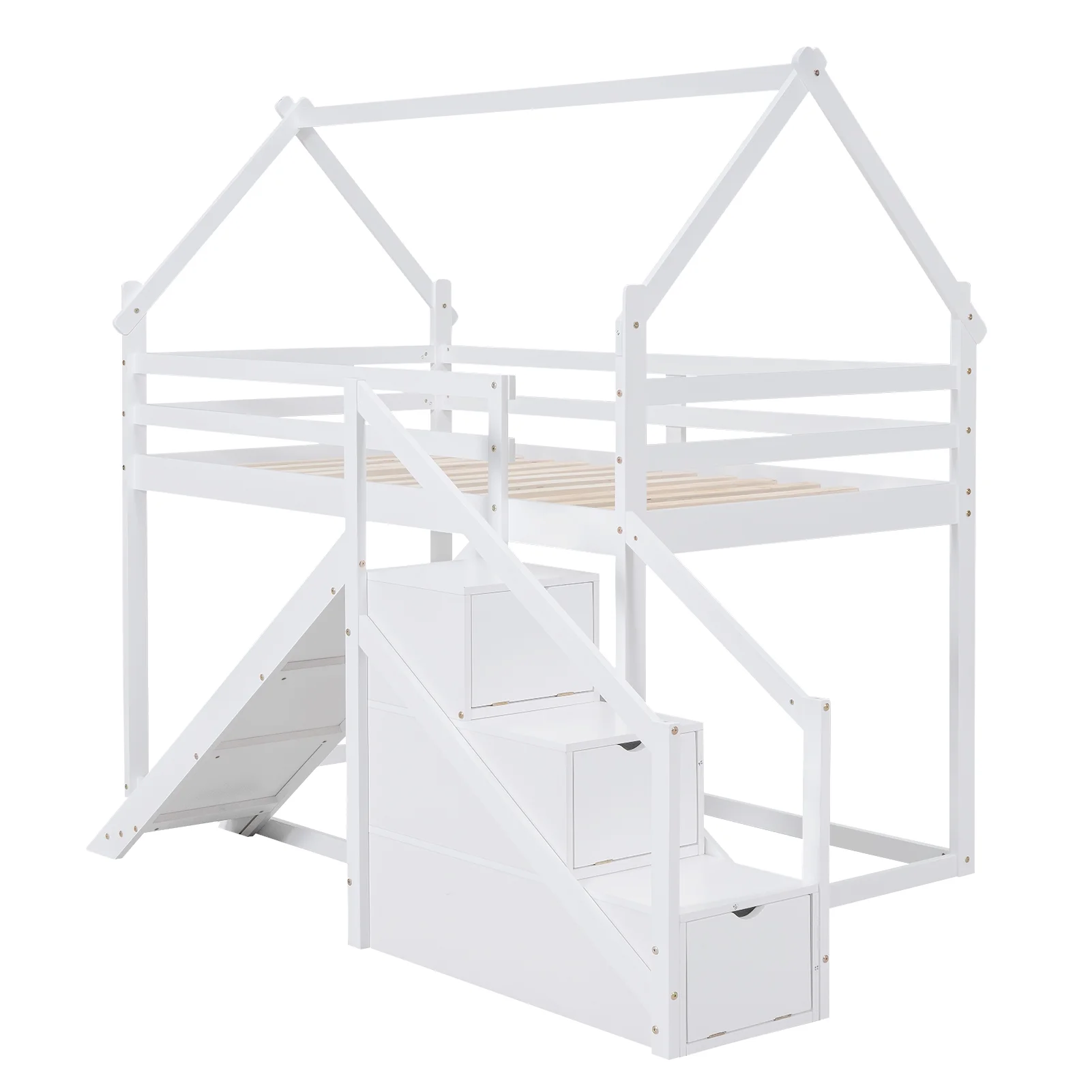 Euroco Twin over Twin Bunk Bed with Drawer and Cabinet for Kids Bedroom, White