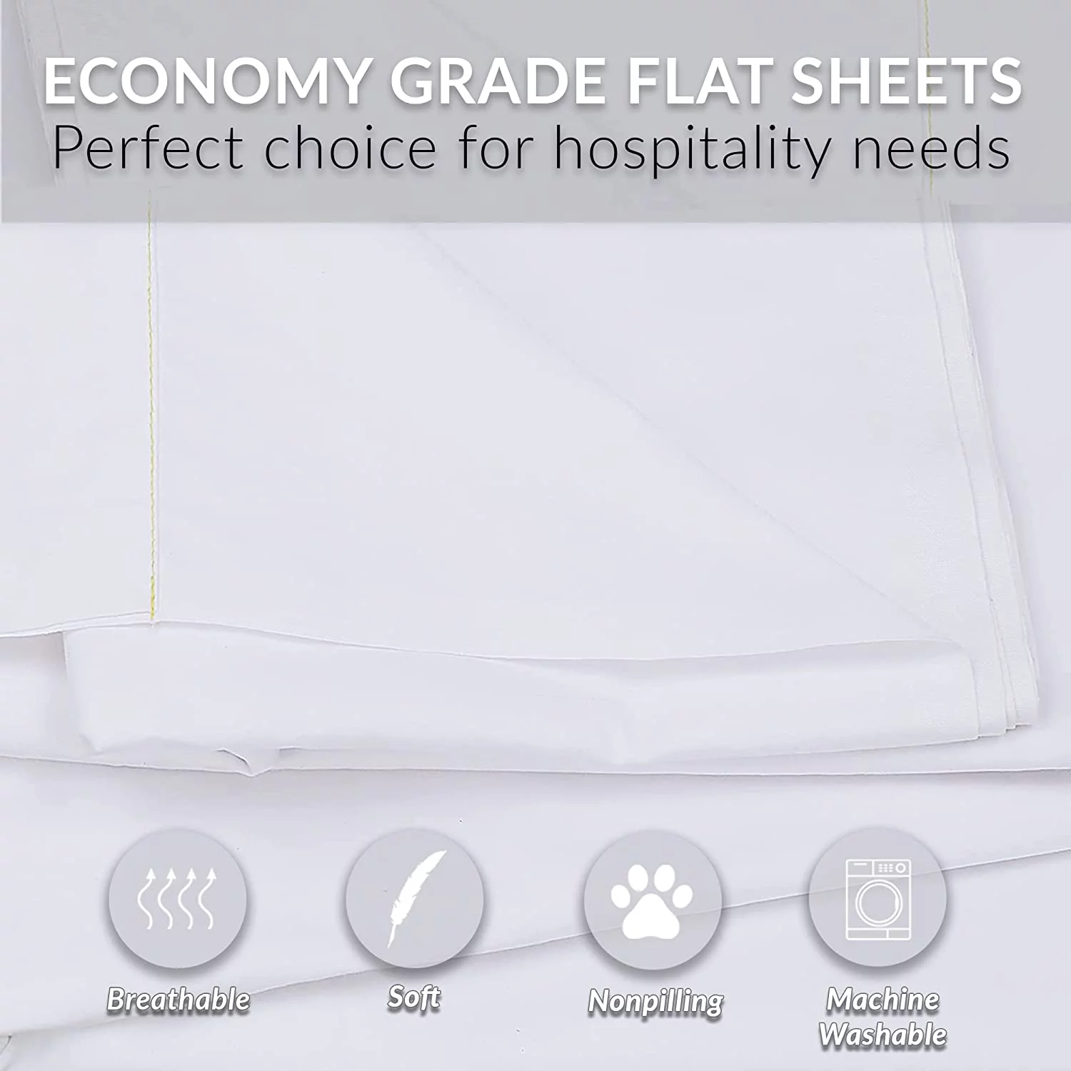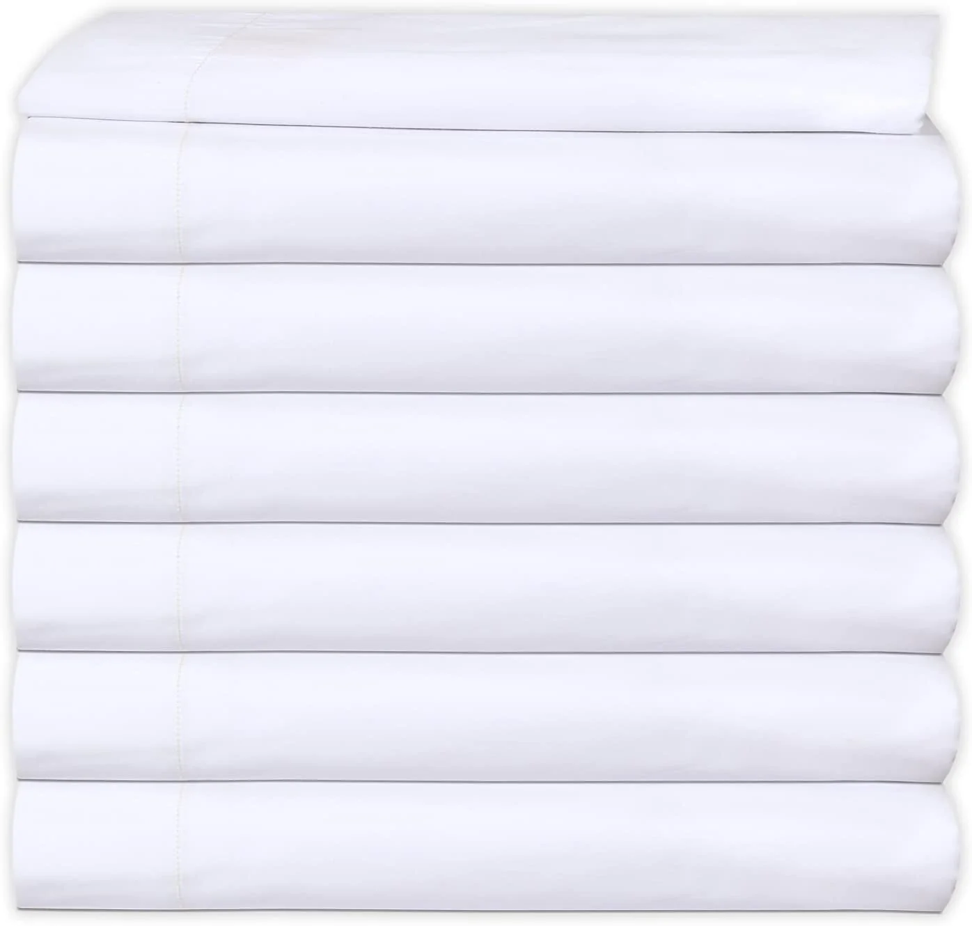 Pack Of 6 Flat Sheet White T-200 Cotton Rich Percale Hotel Linen California King 108x102 Inches Easy Care