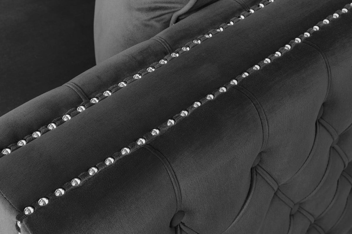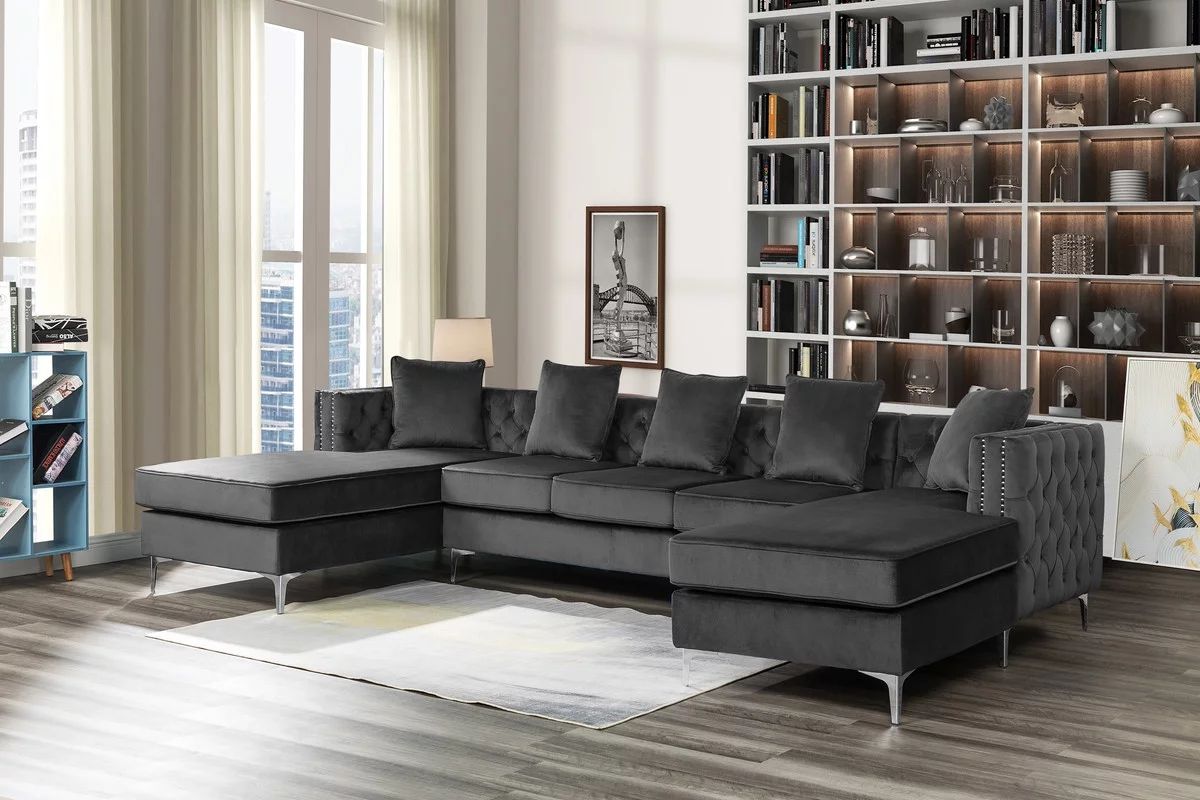 Lilola Home Ryan Velvet Double Chaise Sectional Sofa with Nail-Head Trim-Color:Dark Grey