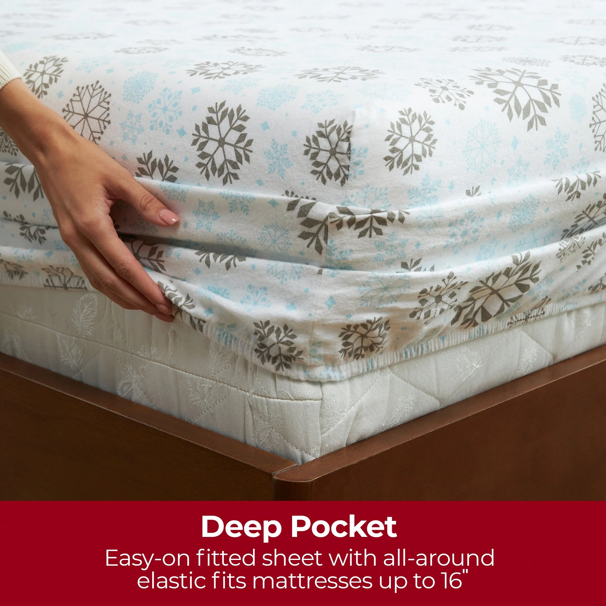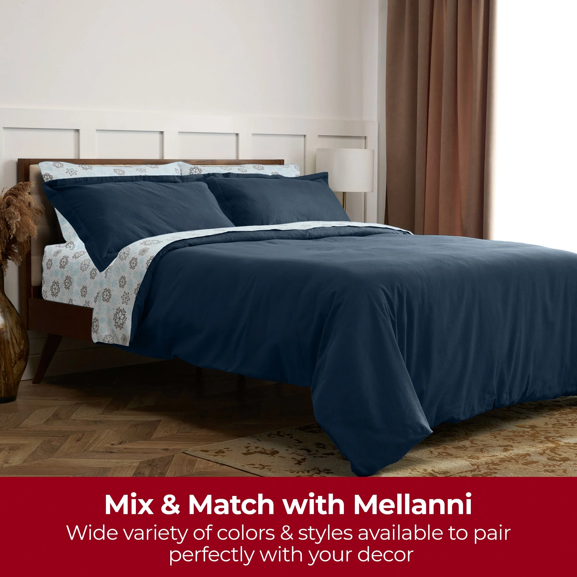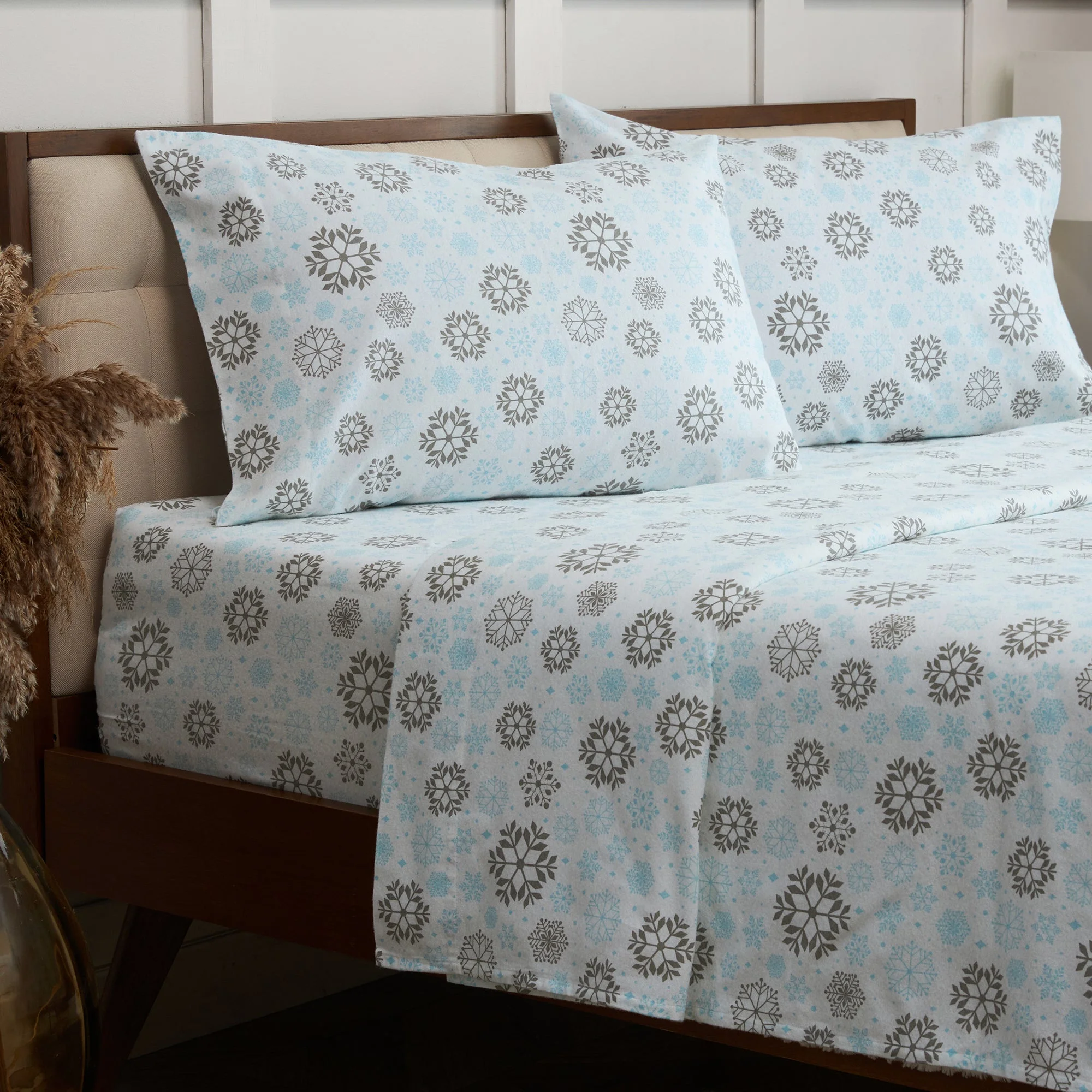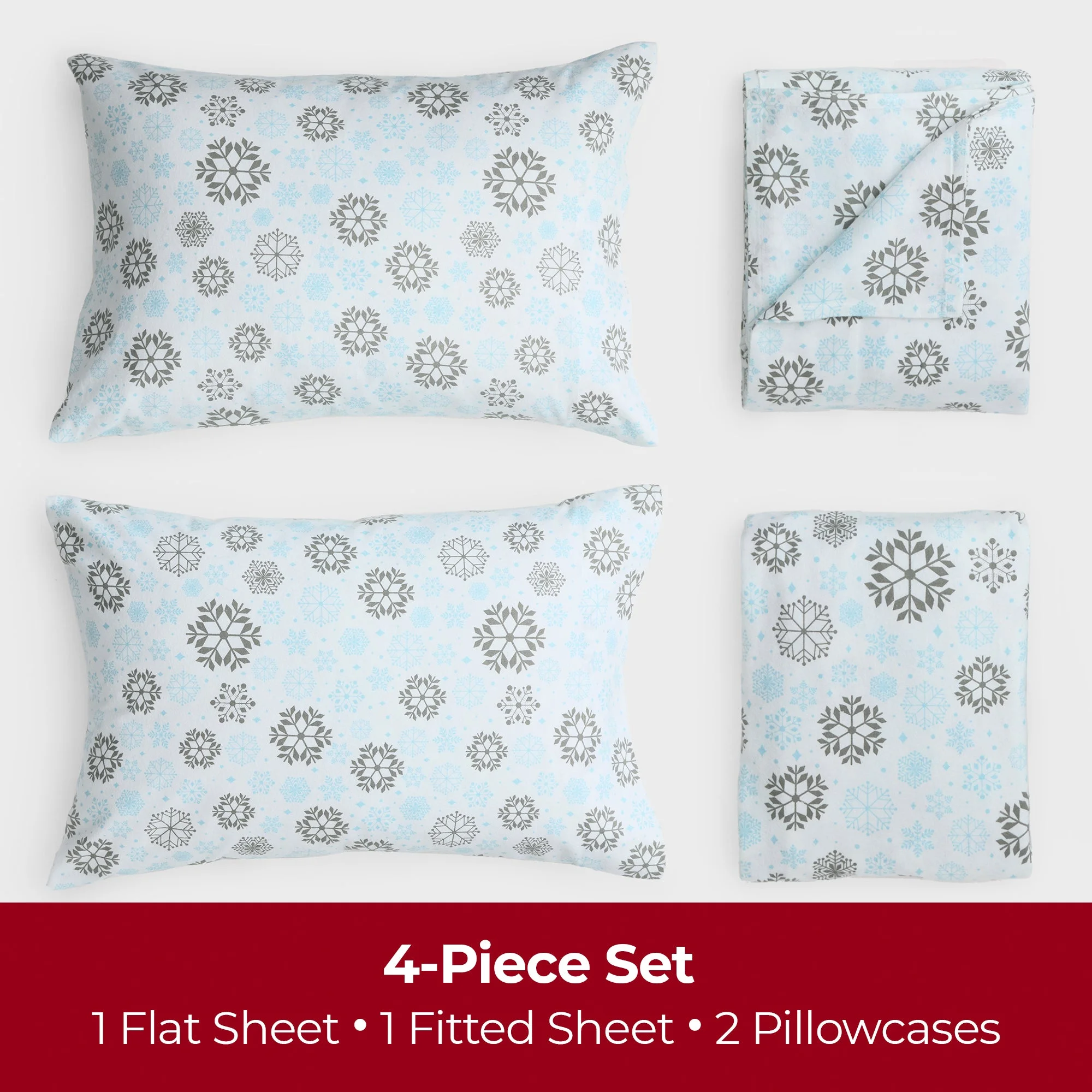 Mellanni Cotton Flannel 4 Piece Sheet Set, Lightweight Deep Pocket Bed Sheets, California King, Blue and Gray Snowflakes
