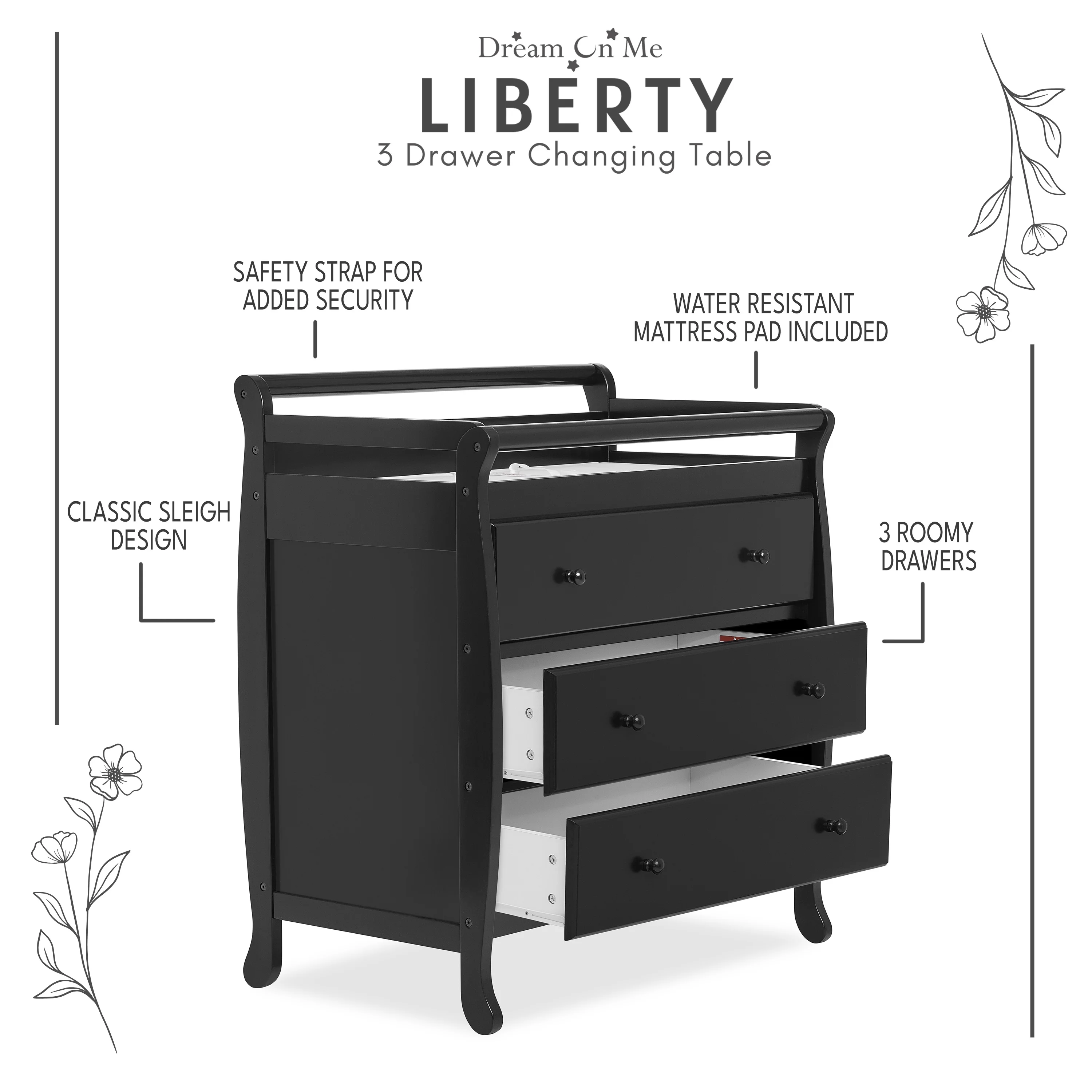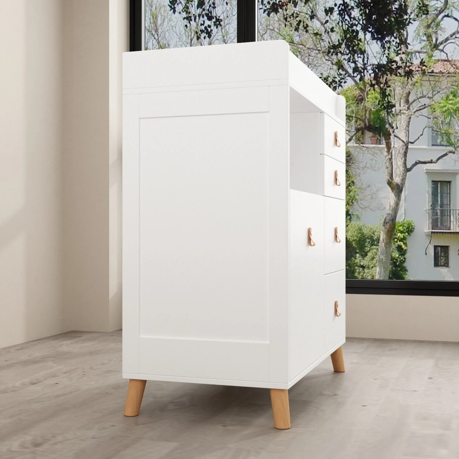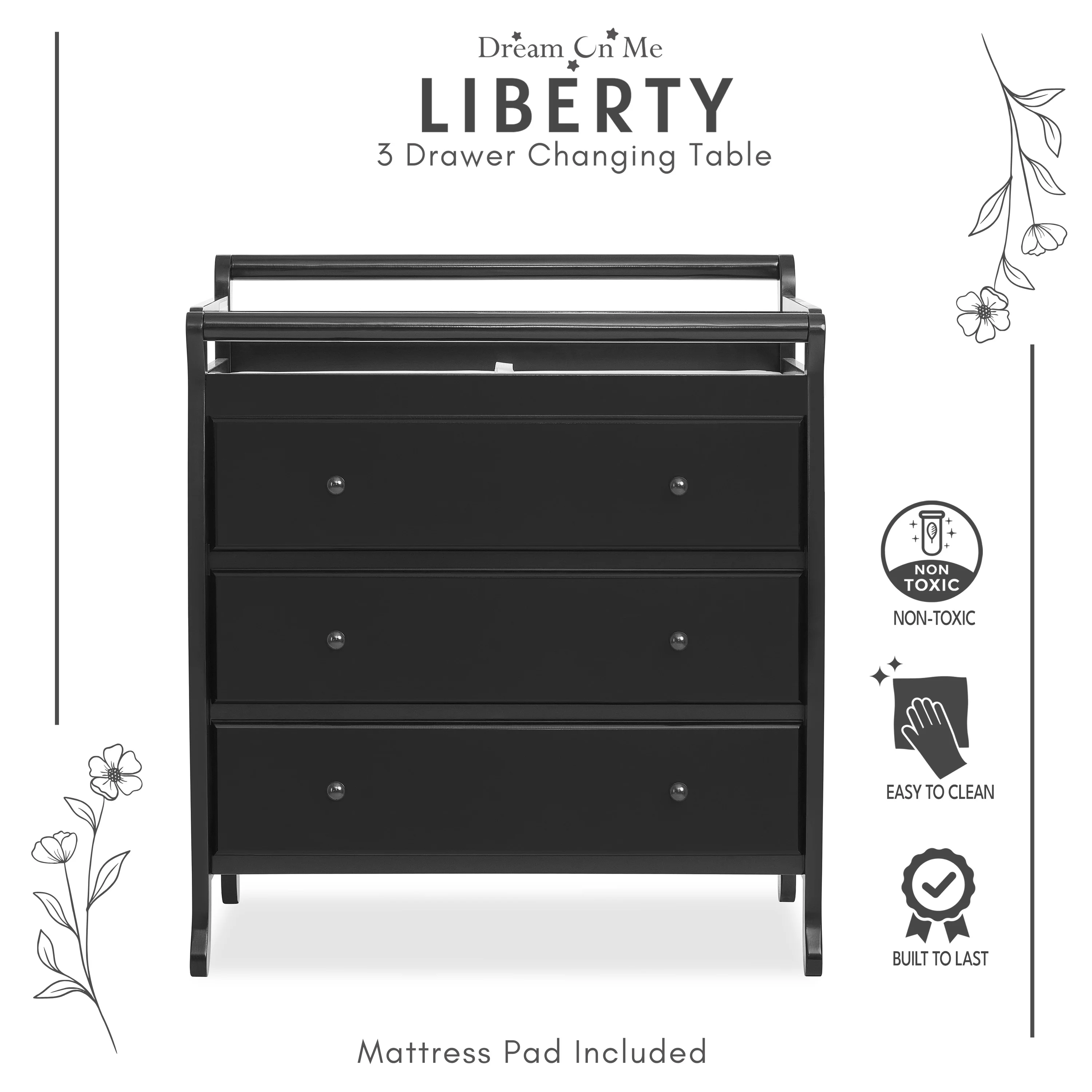 008O-554-1 Leila 2-Drawer Changing Table with Contoured Changing Pad & Fabric Cover, Oak