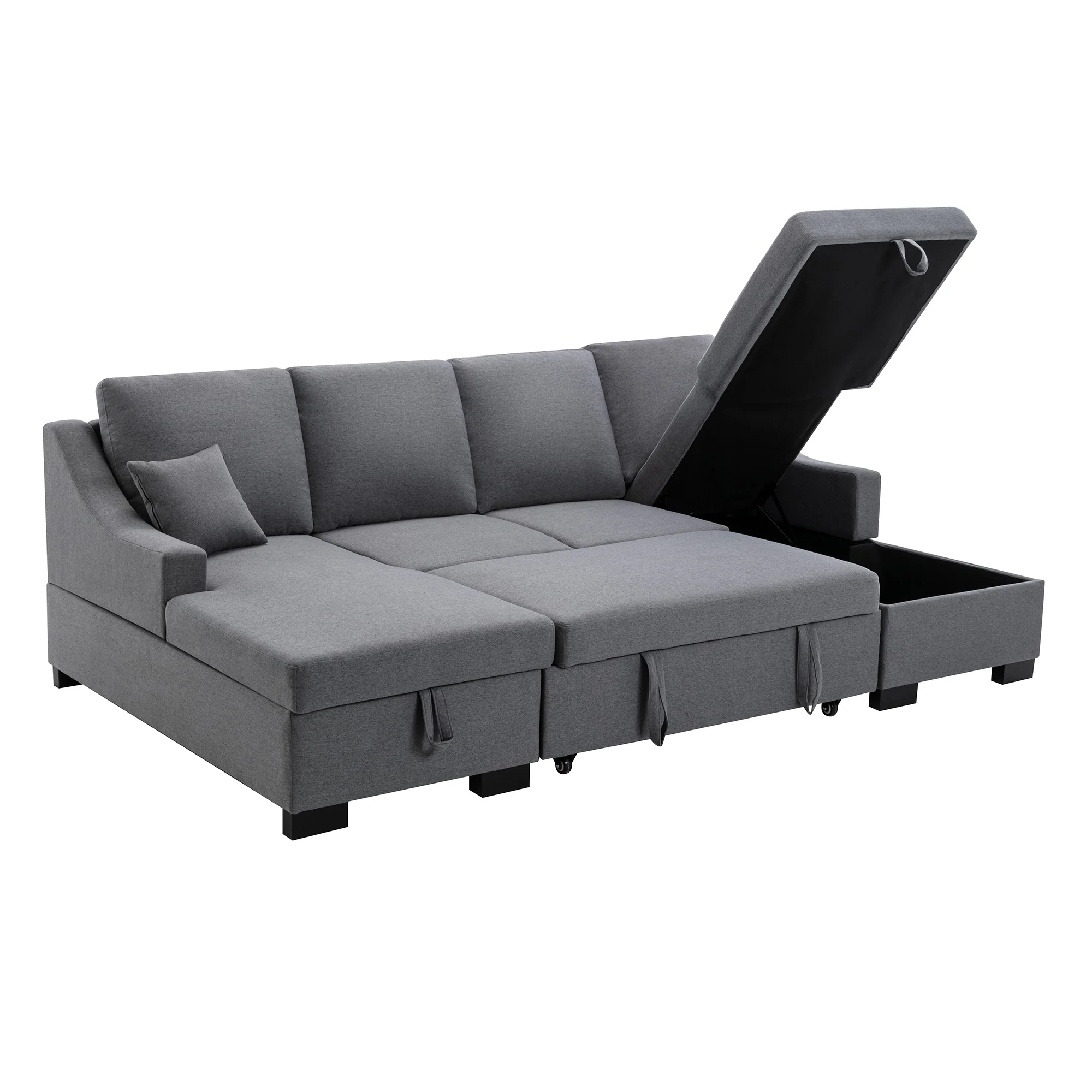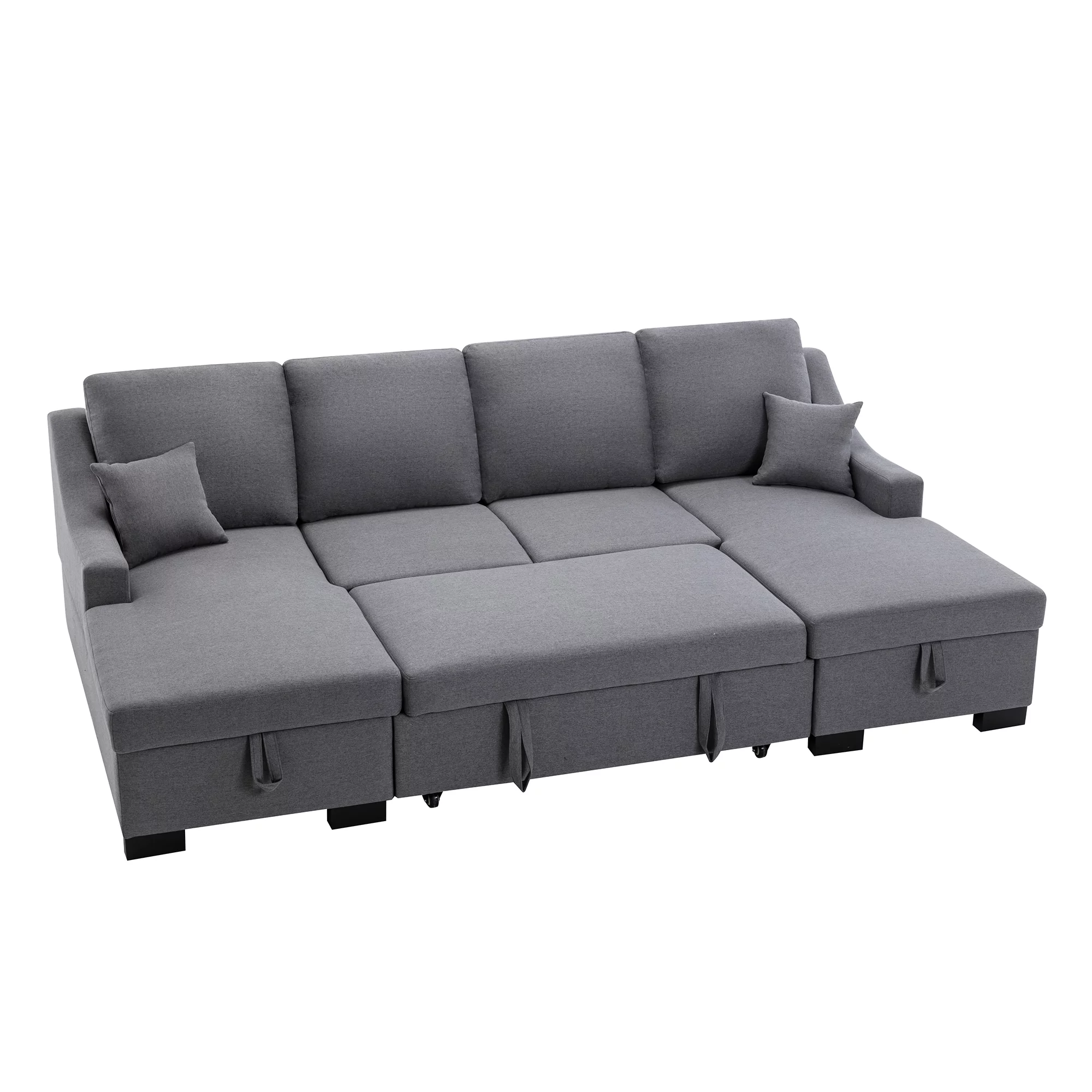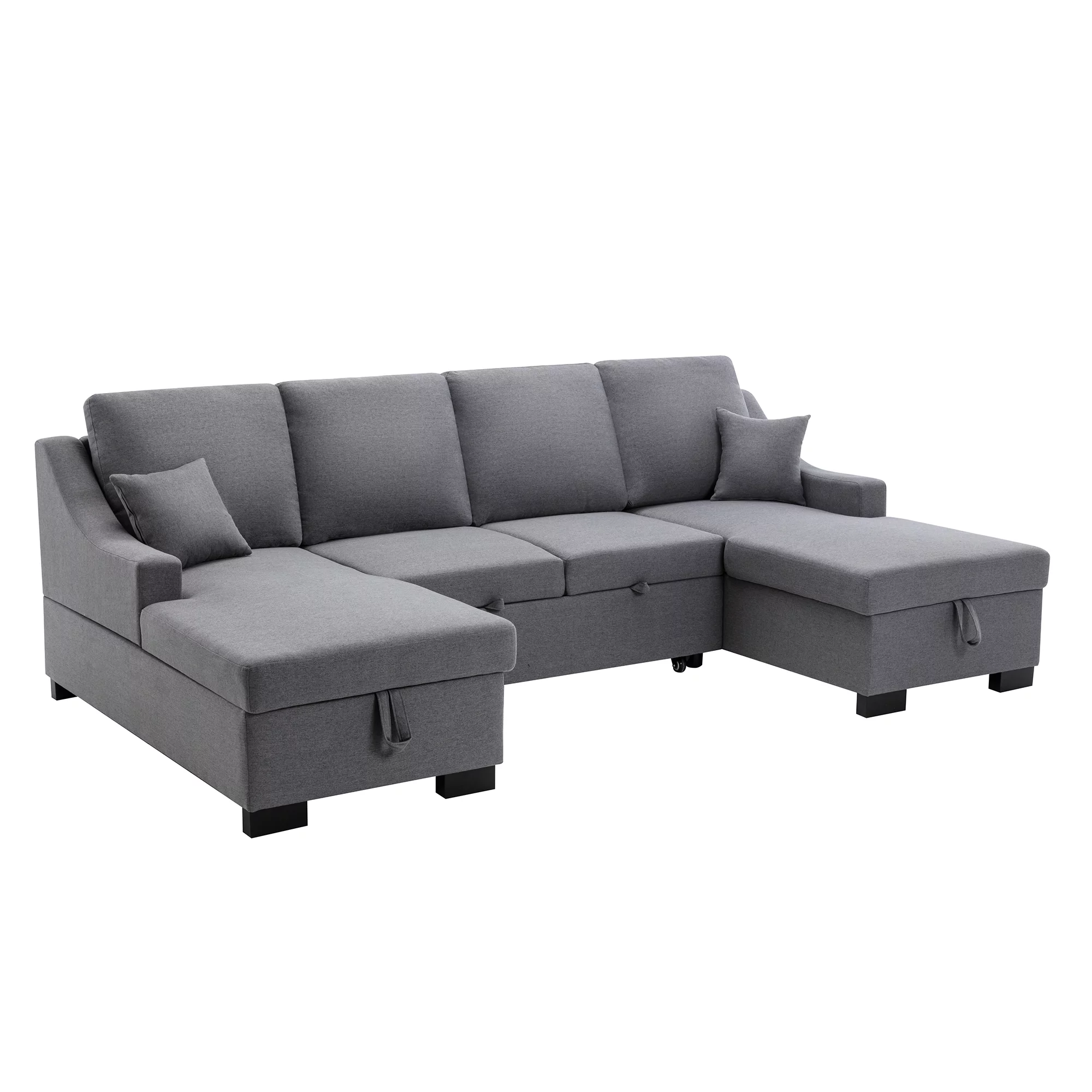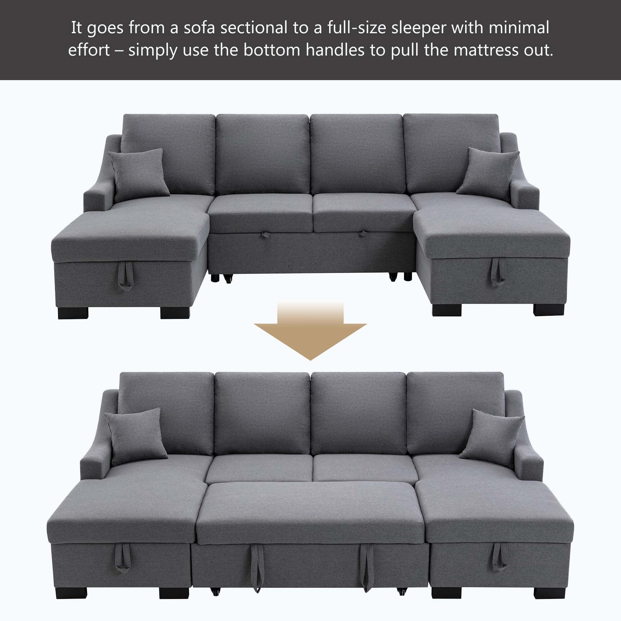 Upholstery Sleeper Sectional Sofa with Double Storage Spaces,2 Tossing Cushions