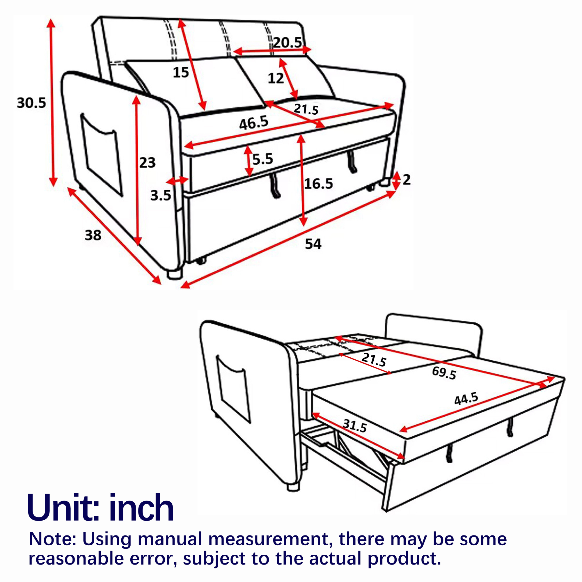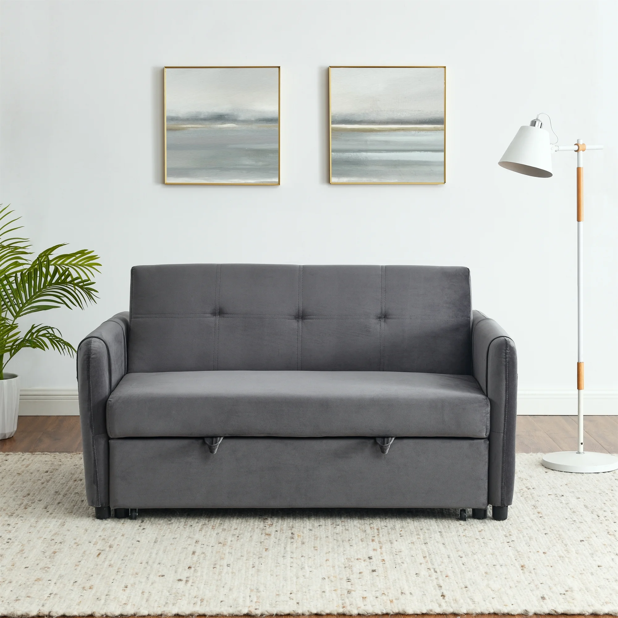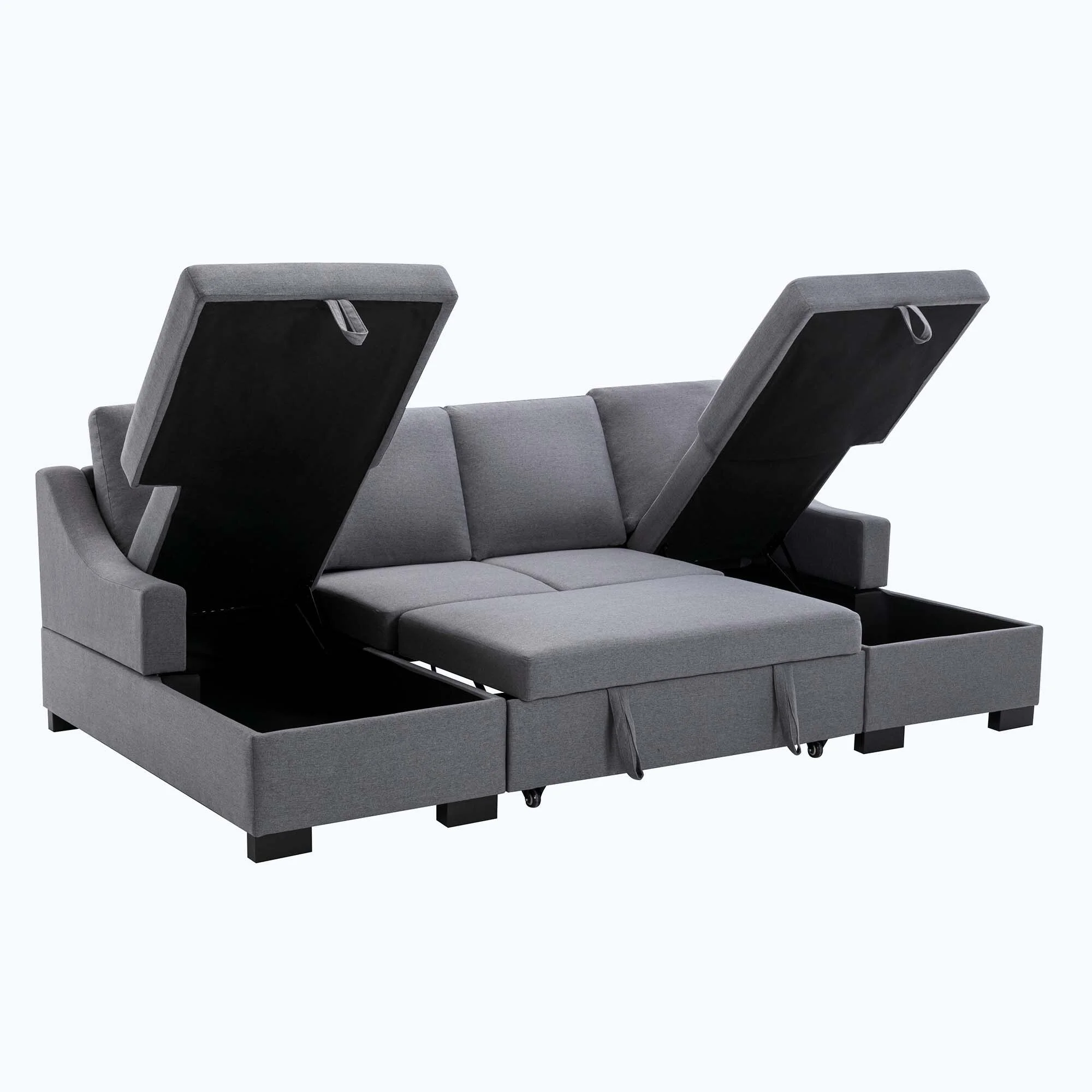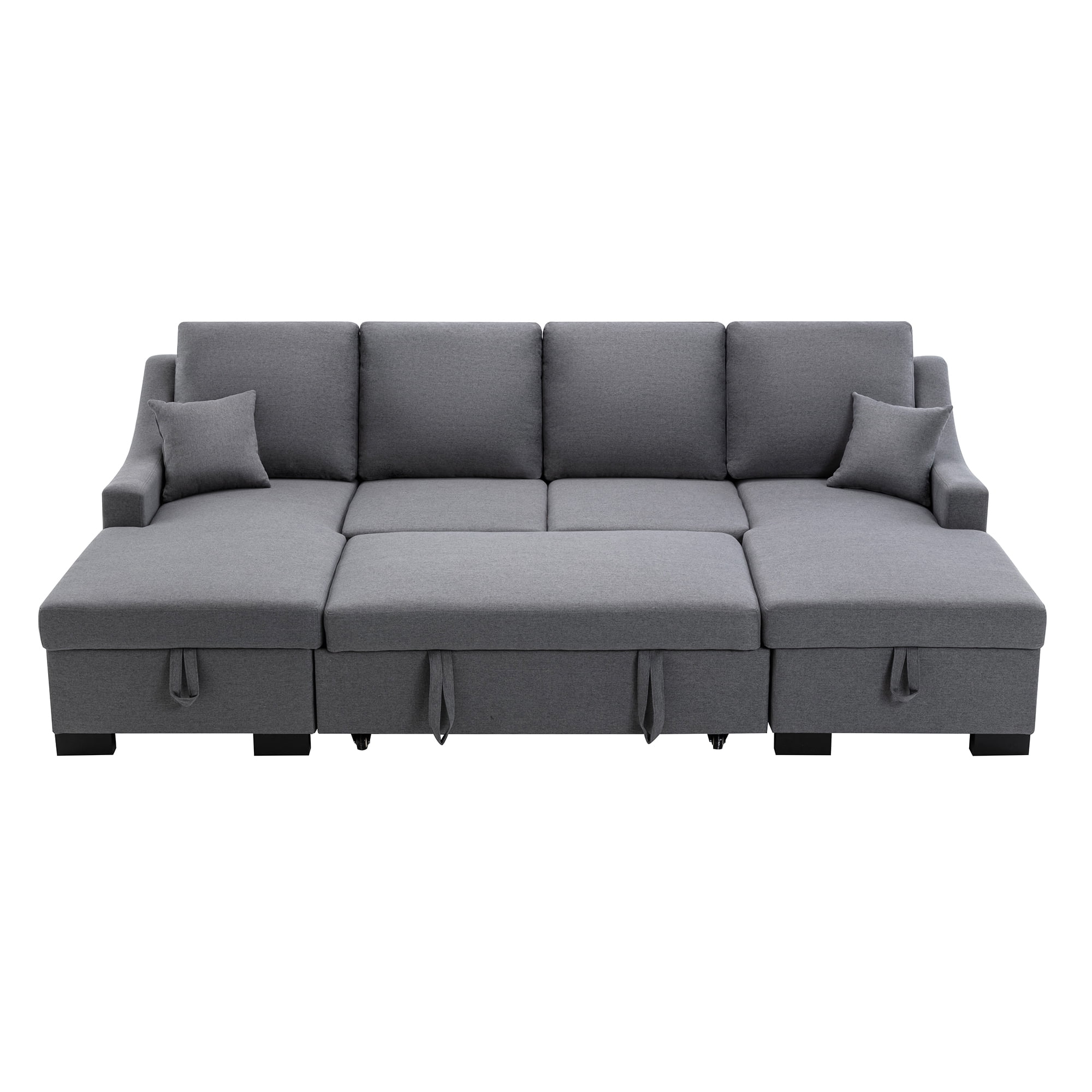 Upholstery Sleeper Sectional Sofa with Double Storage Spaces,2 Tossing Cushions