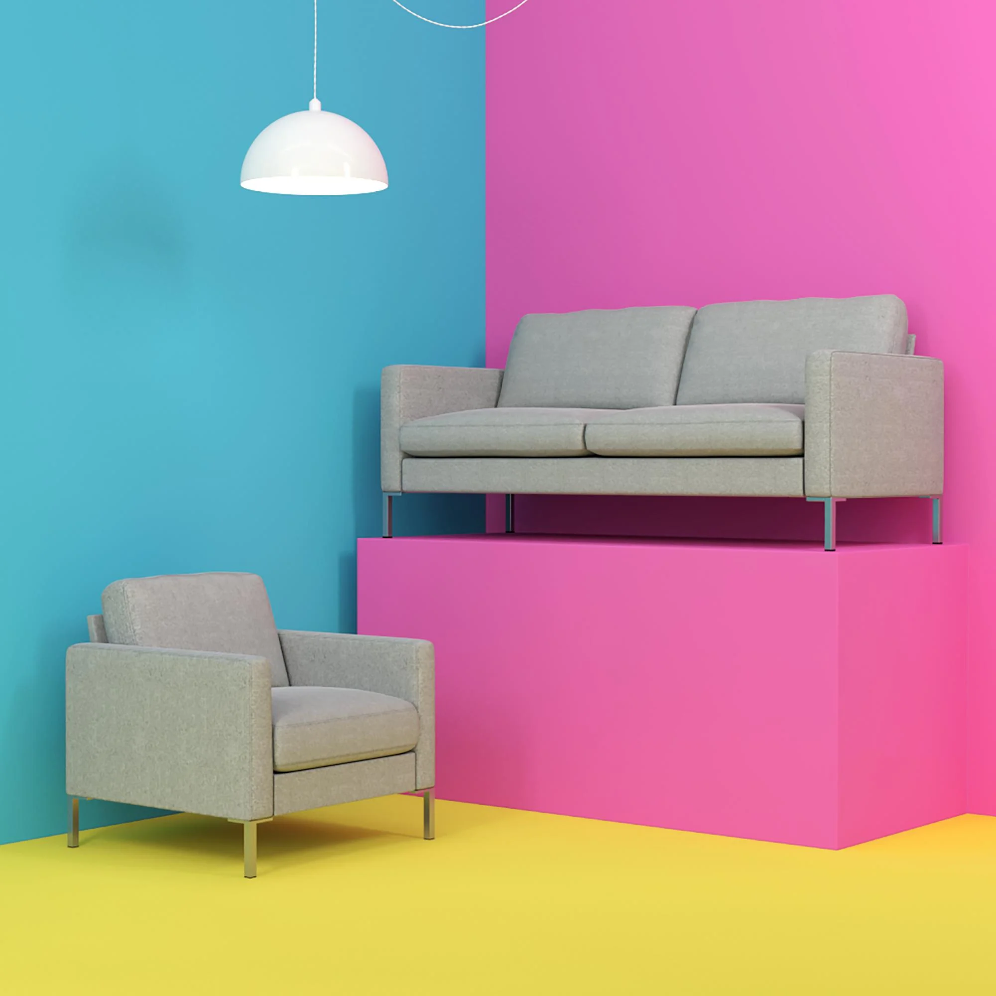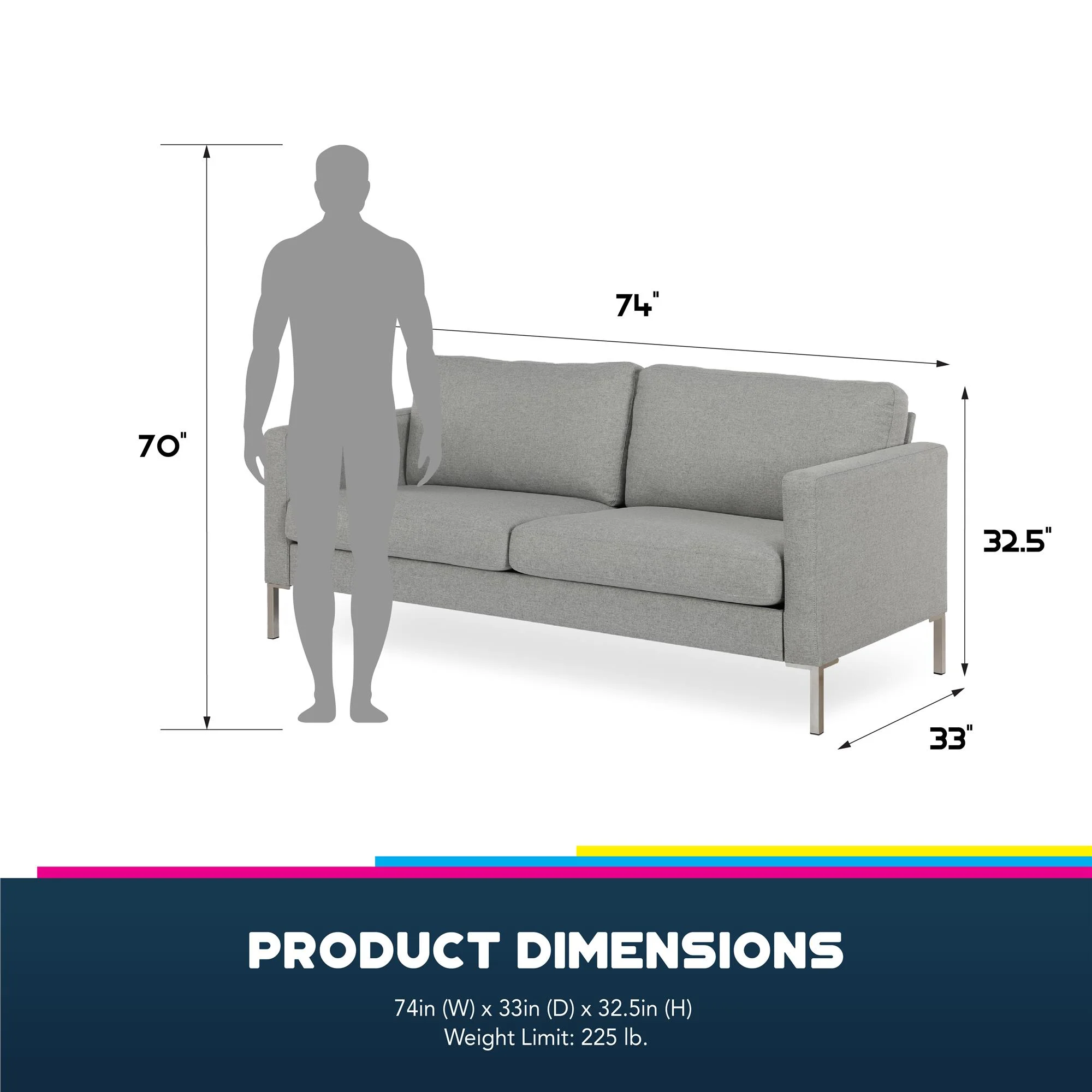 Bellemave Double Chaise Lounge Sofa, Fabric Floor Couch with Two Pillows, Blue