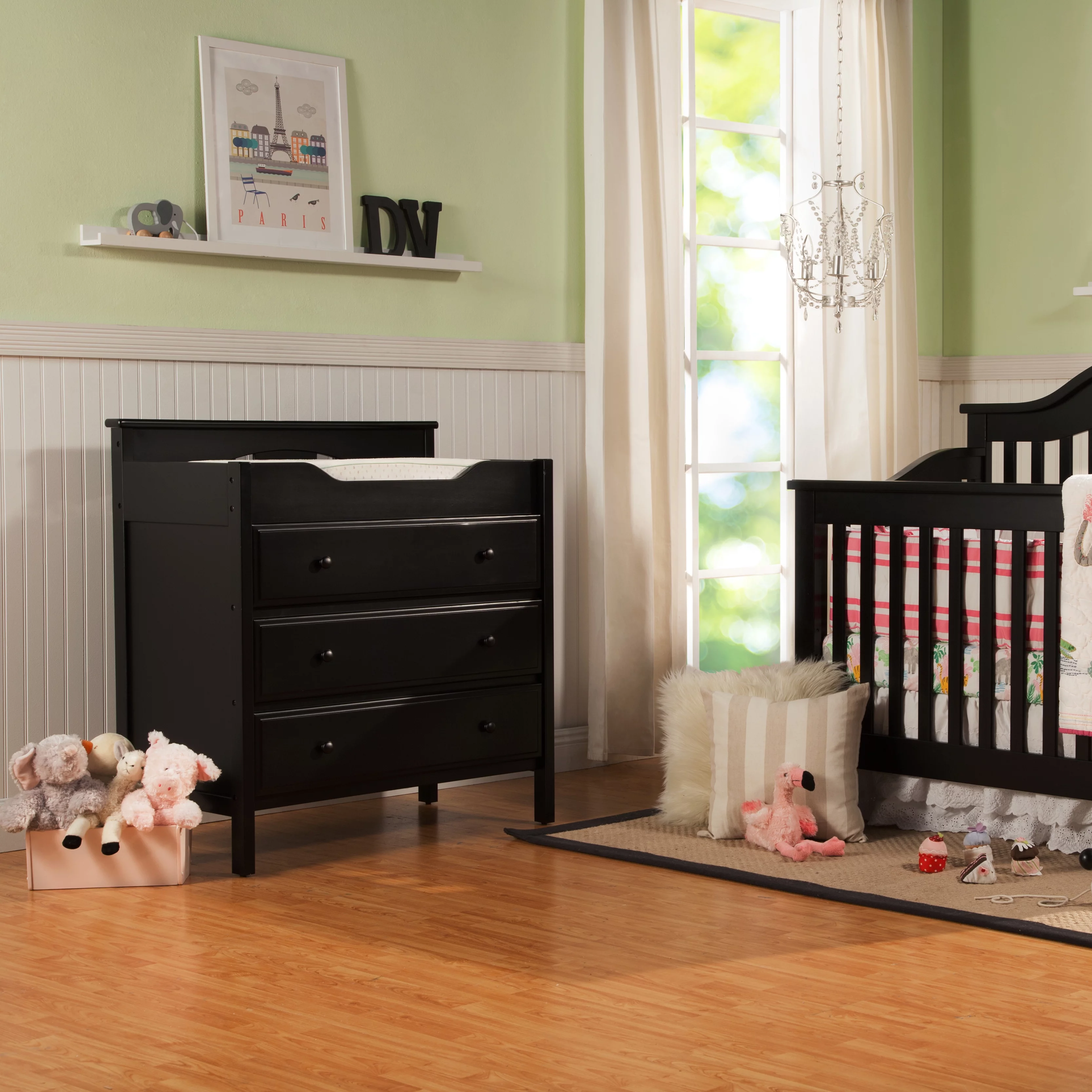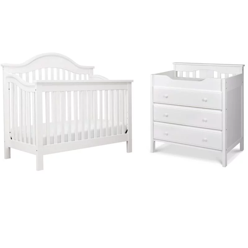 Home Square 4-in-1 White Convertible Crib with Changing Table Dresser Combo Set