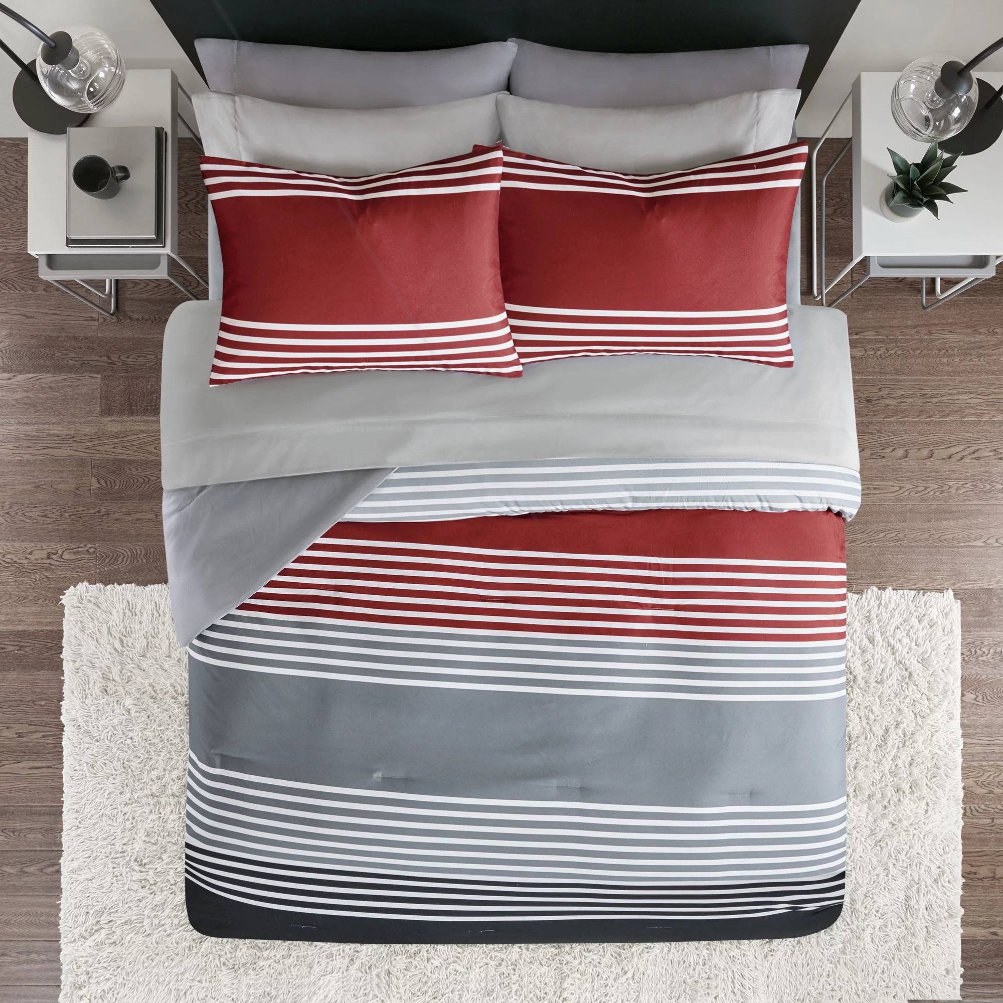 Comfort Spaces 9-Piece Queen Comforter Sets Microfiber Bed in a Bag Bedding Set with Sheets and Side Pockets, Red/Gray