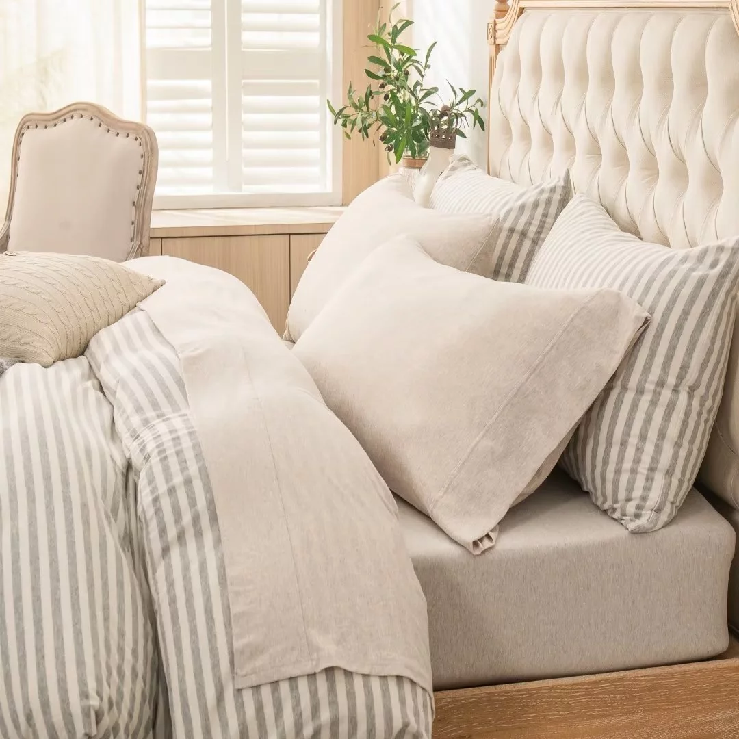 Pure Era Jersey Knit T-Shirt Cotton 4pc Deep Pocket Sheet Set Beige California King