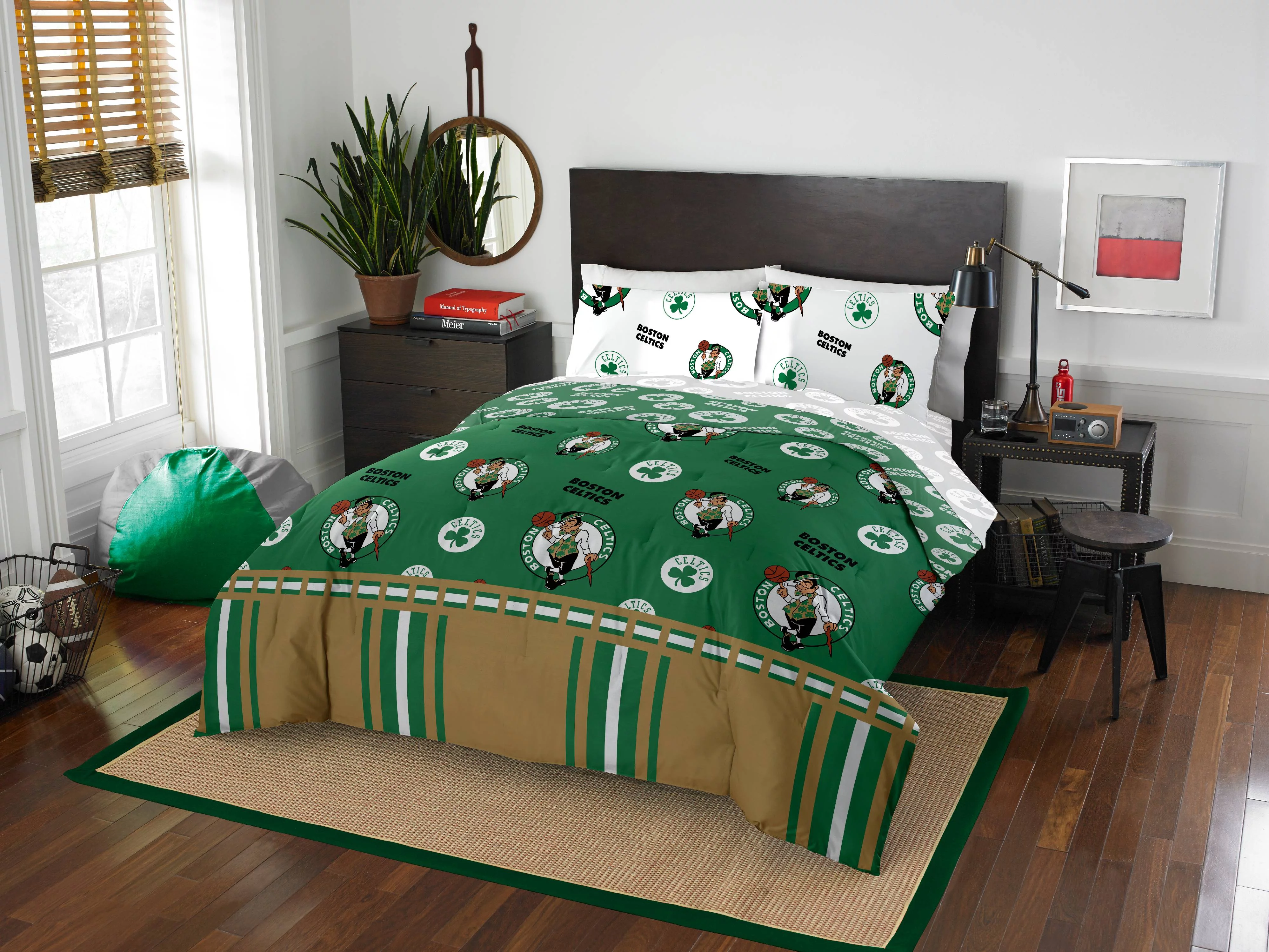 NBA Boston Celtics Bed in Bag Set, Queen Size, Team Colors, 100% Polyester, 5 Piece Set