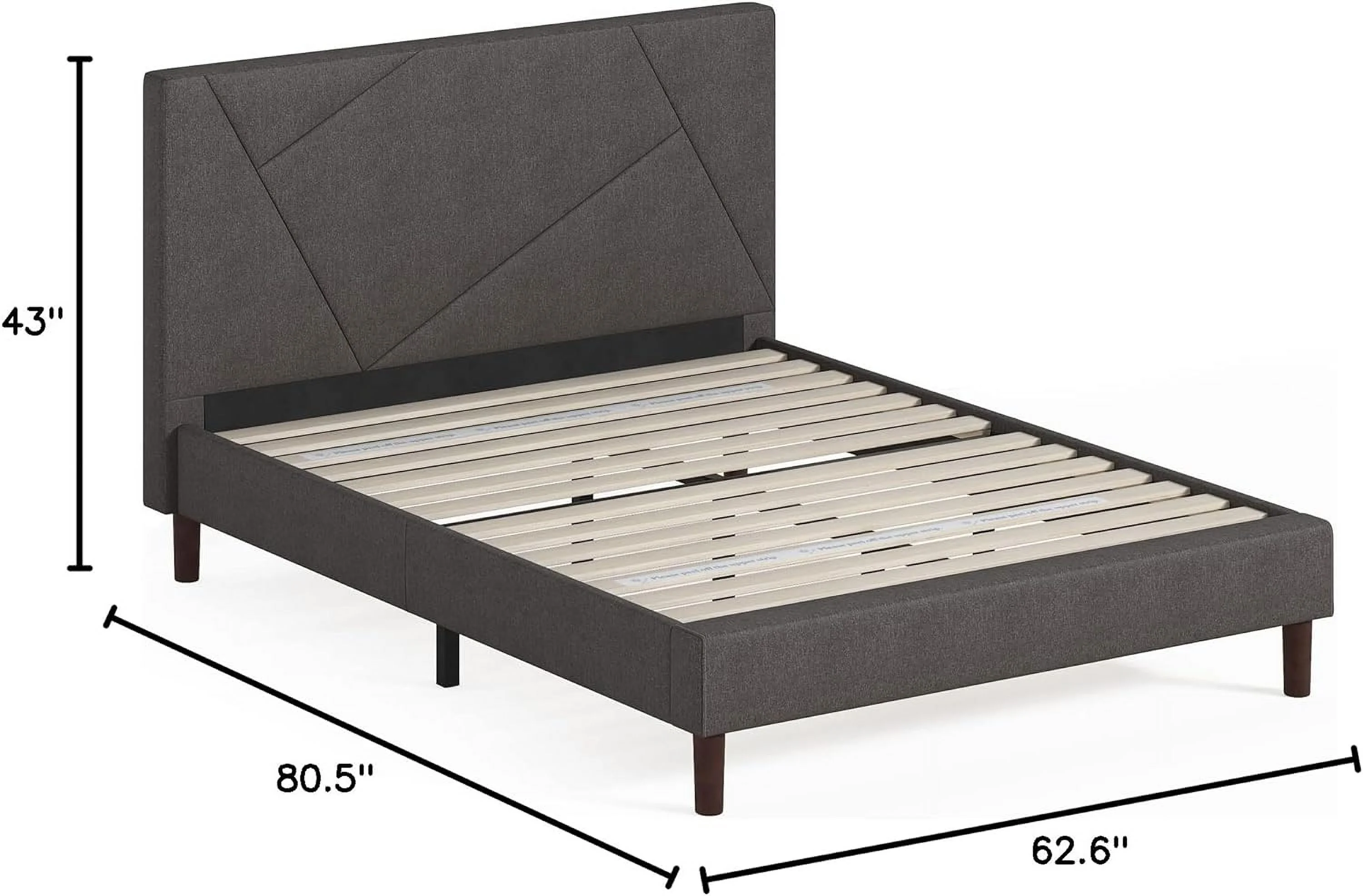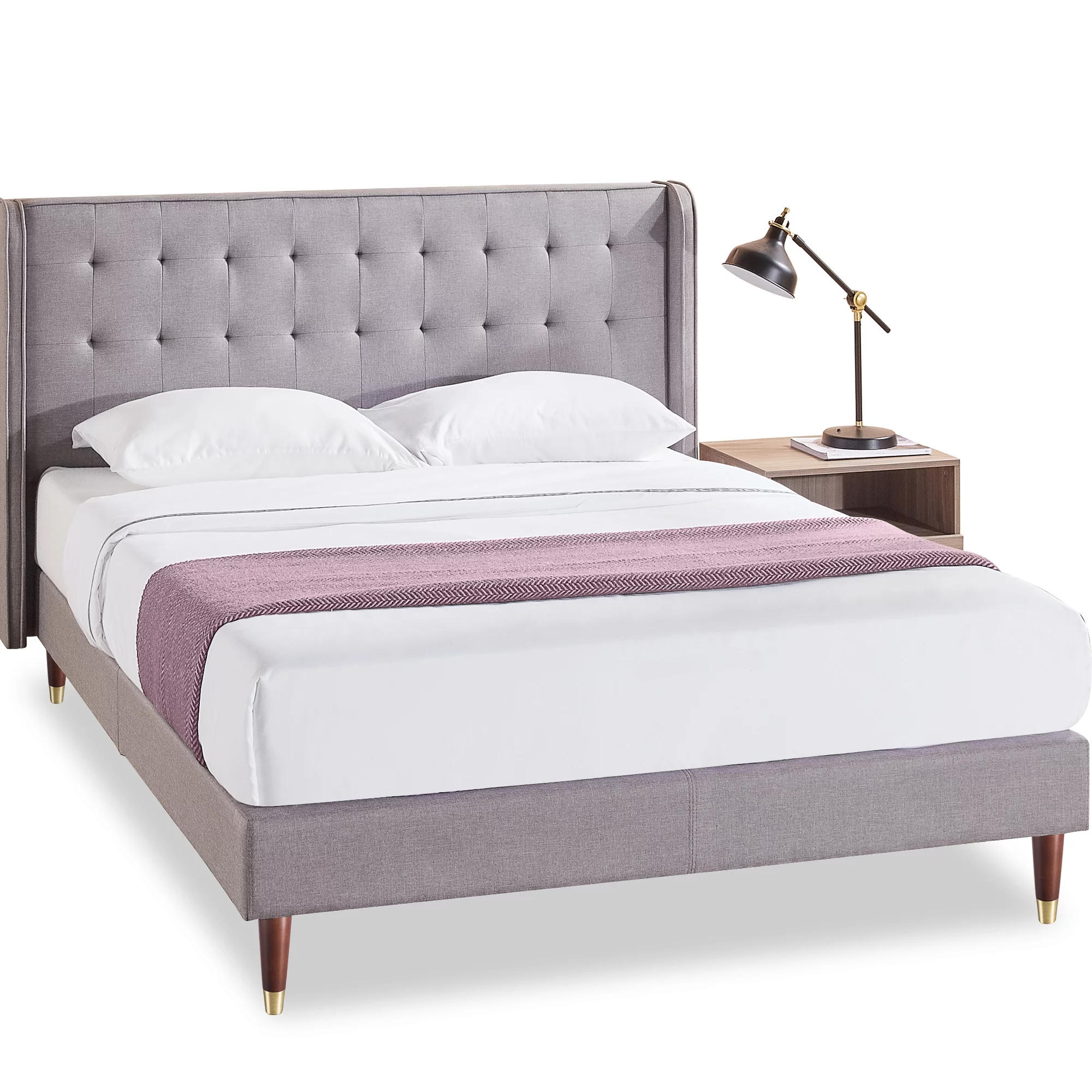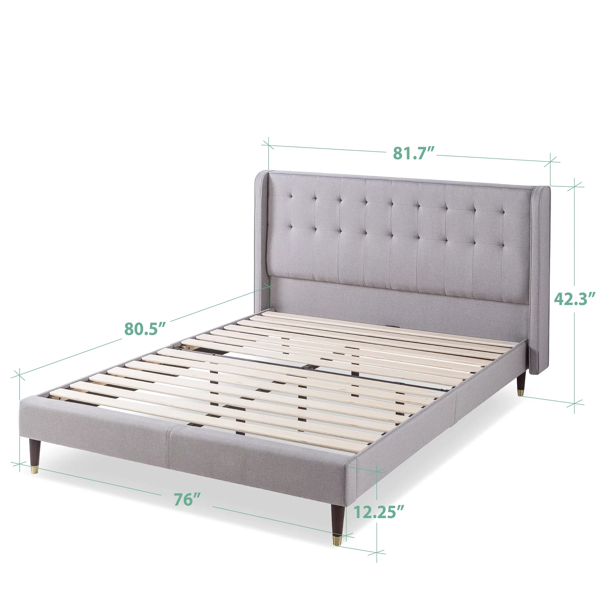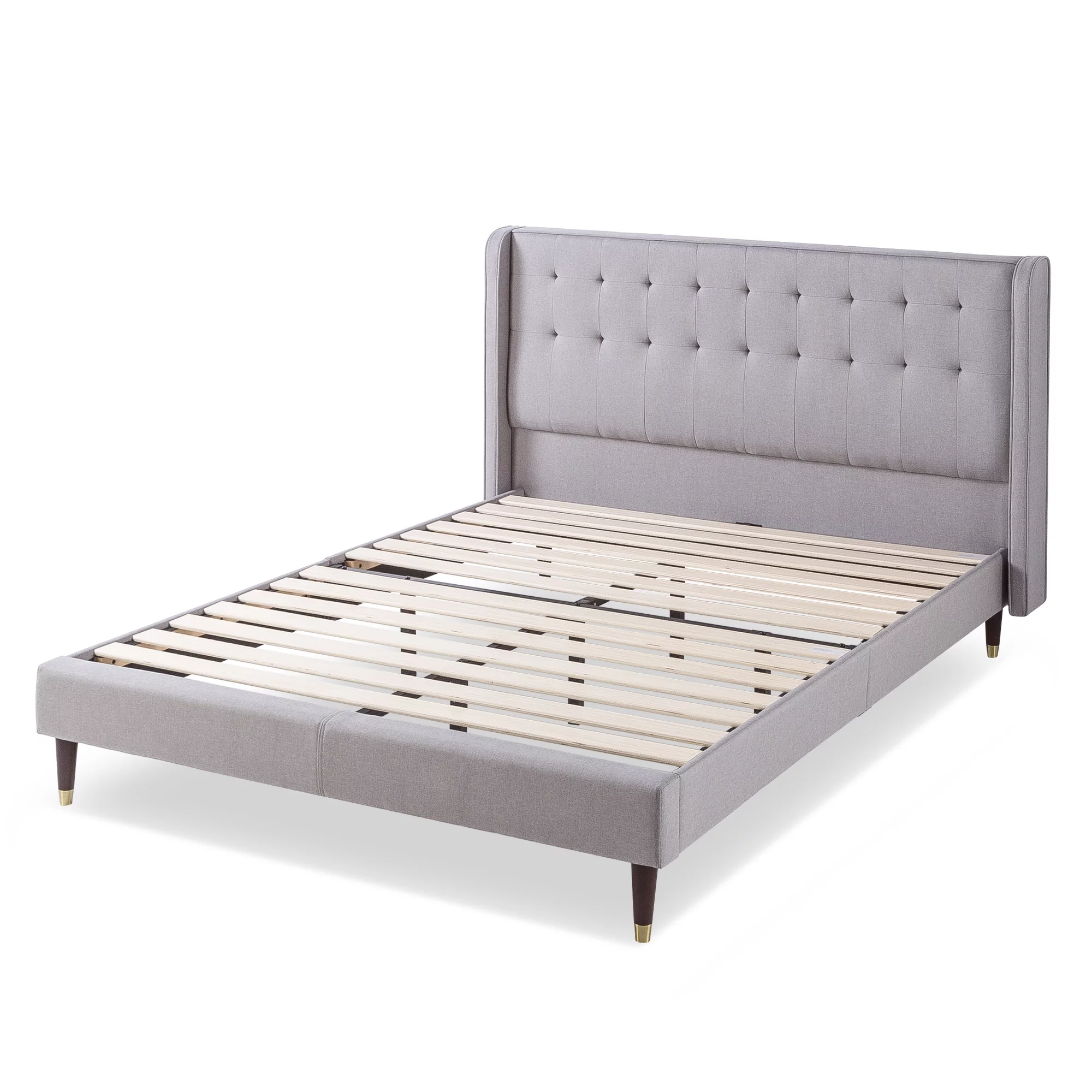Zinus Benton 43” Upholstered Platform Bed Frame with Wingback Headboard, King, Gray