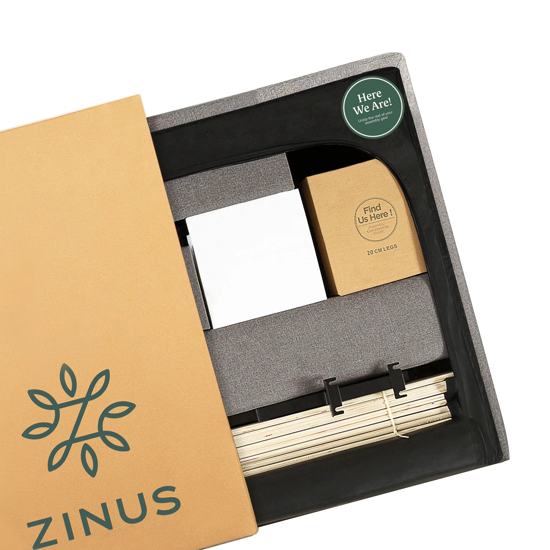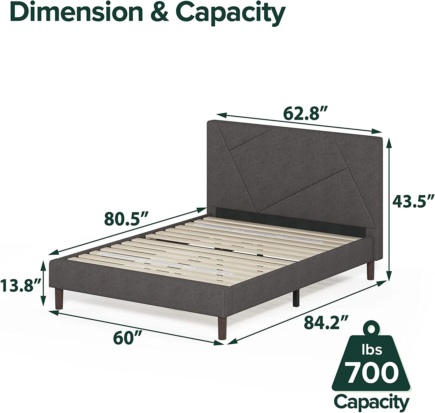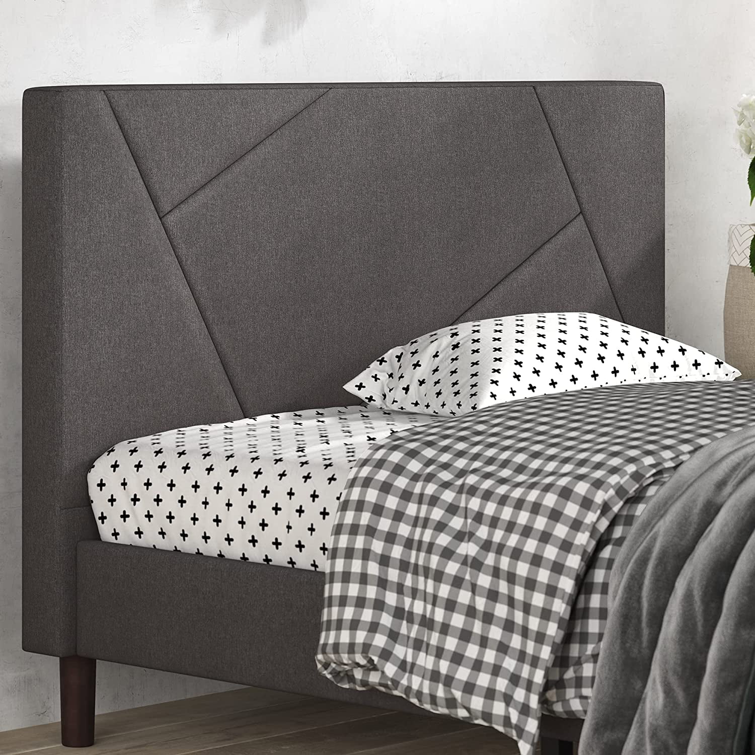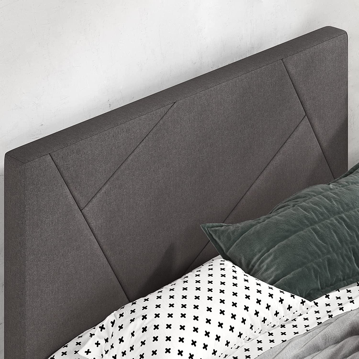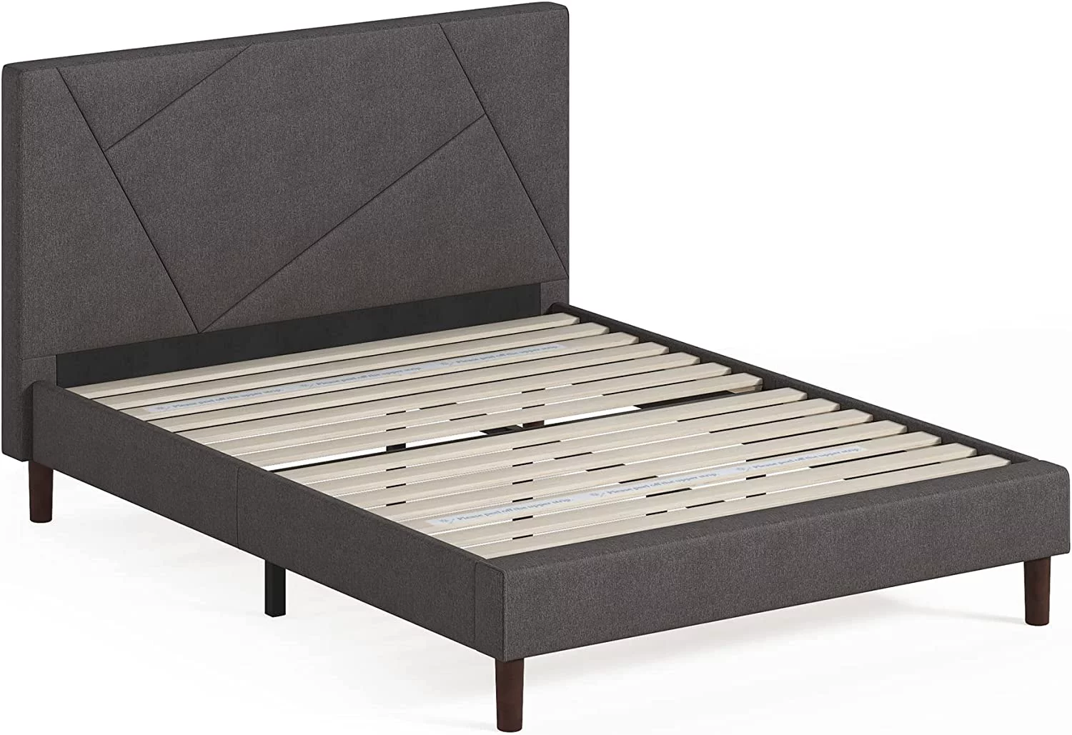 Zinus Benton 43” Upholstered Platform Bed Frame with Wingback Headboard, King, Gray