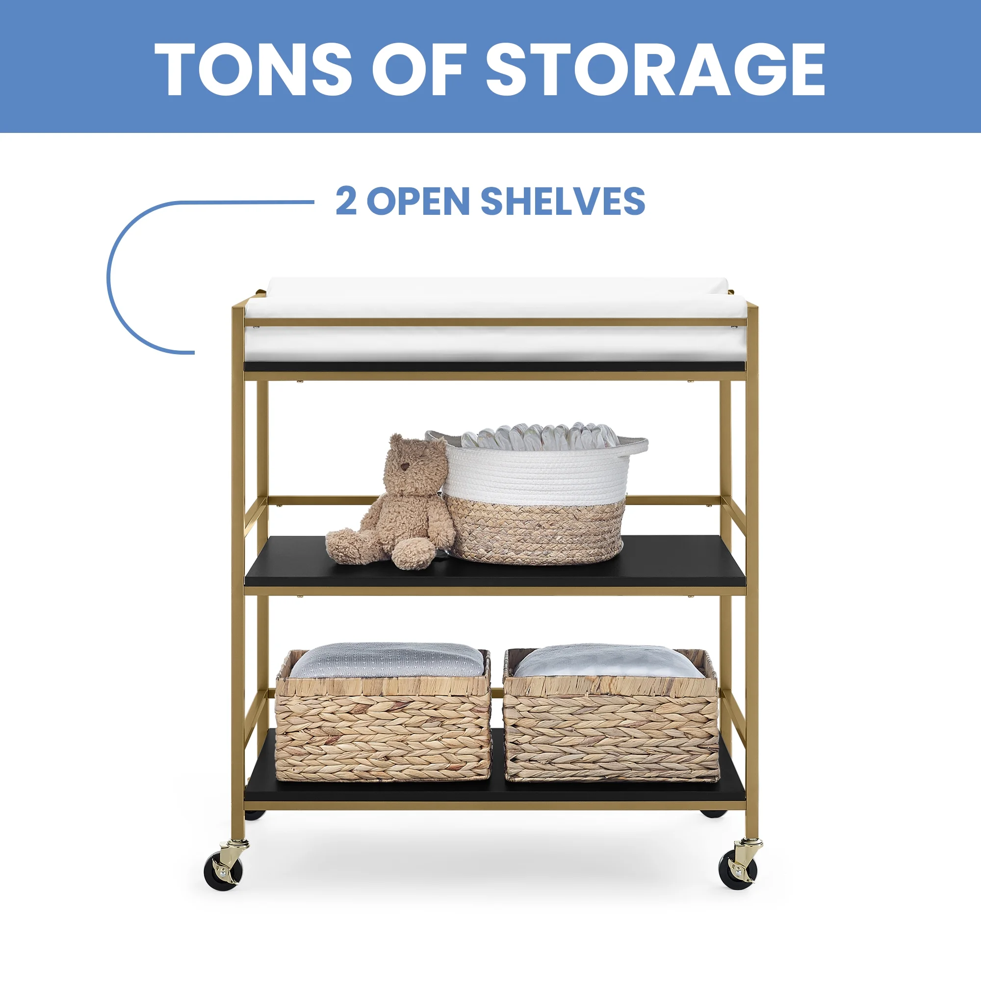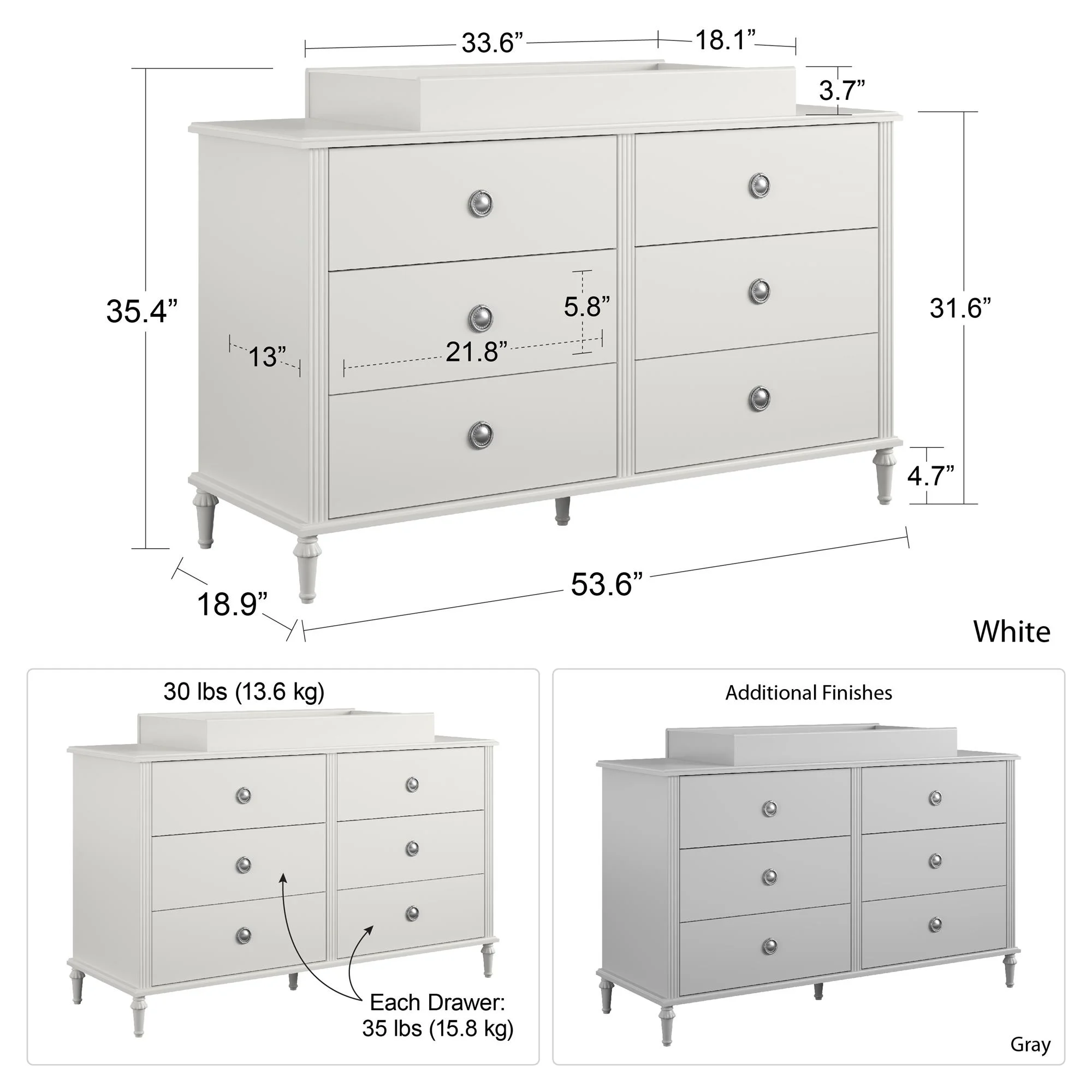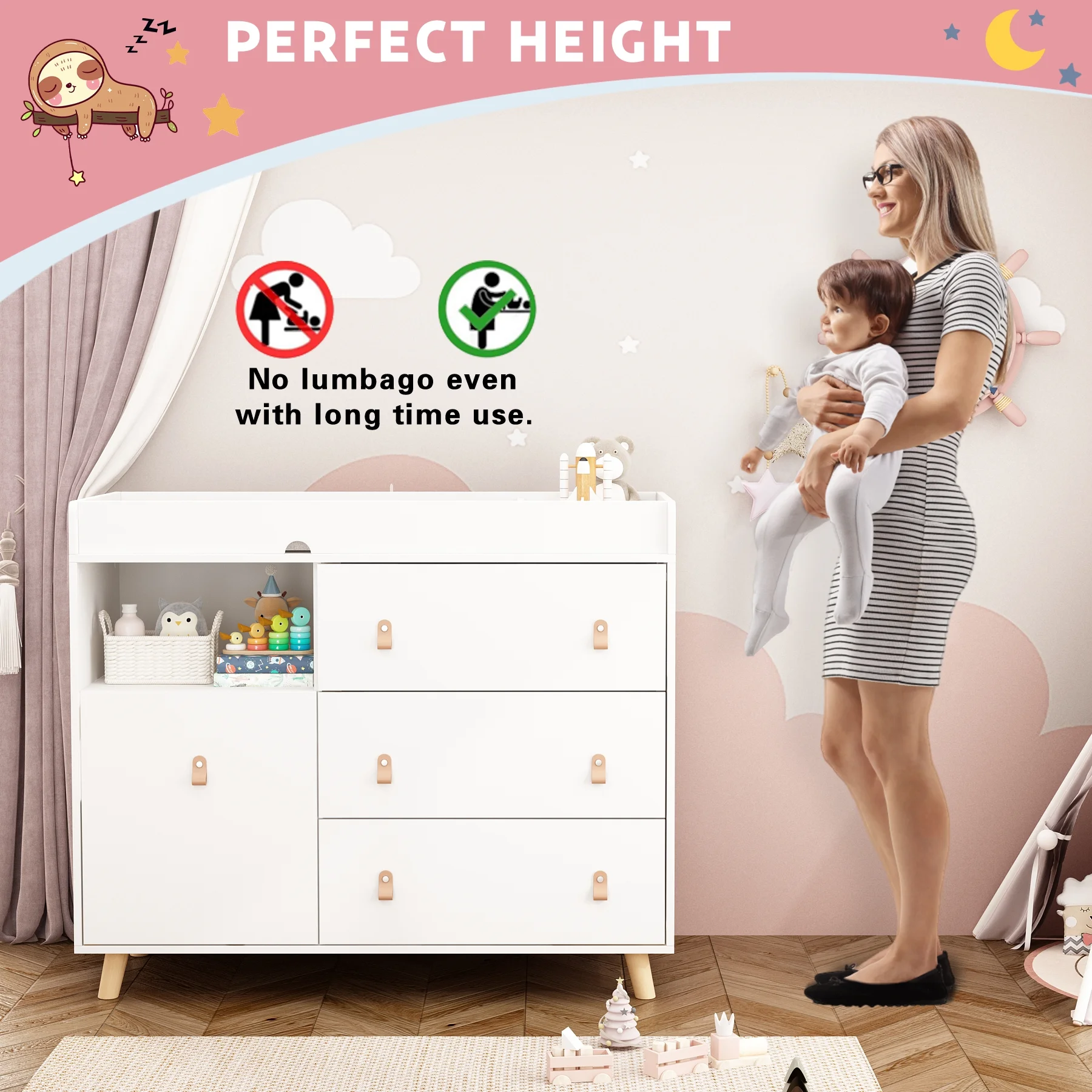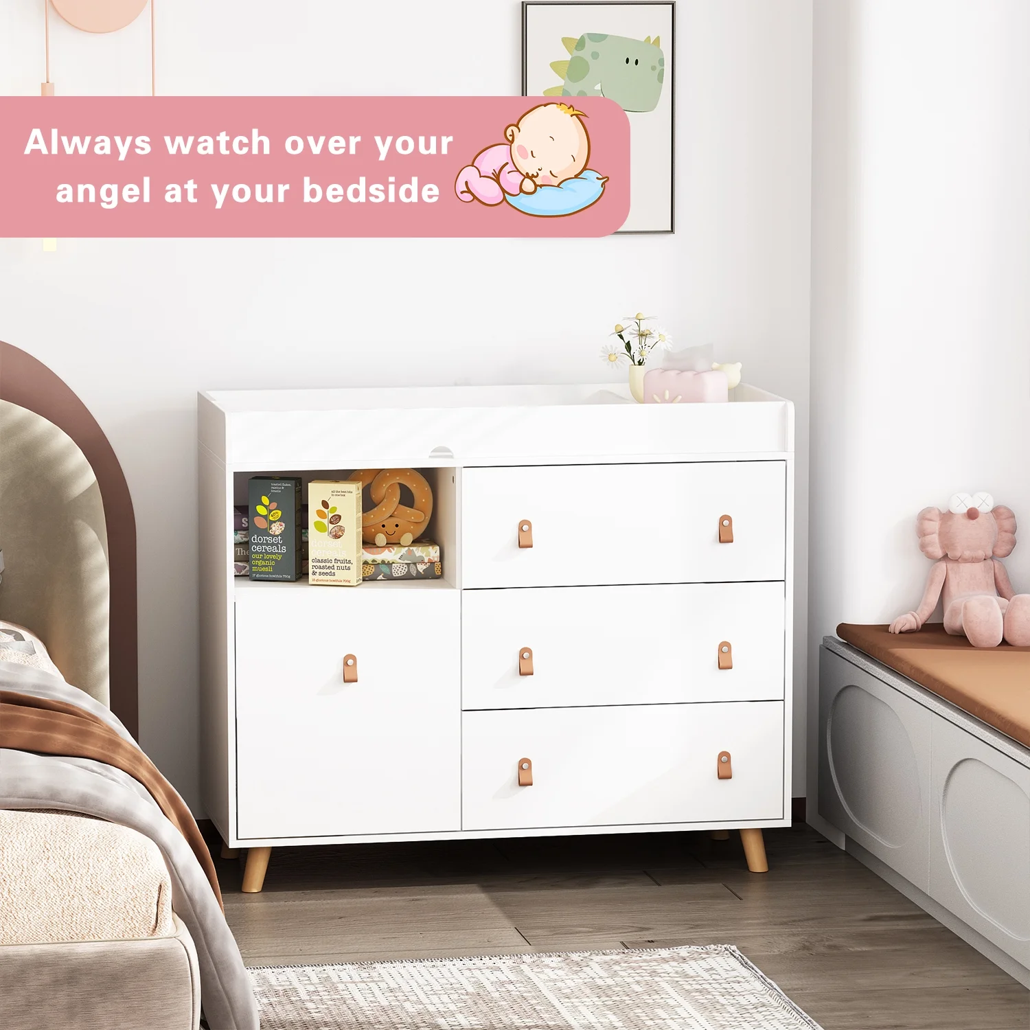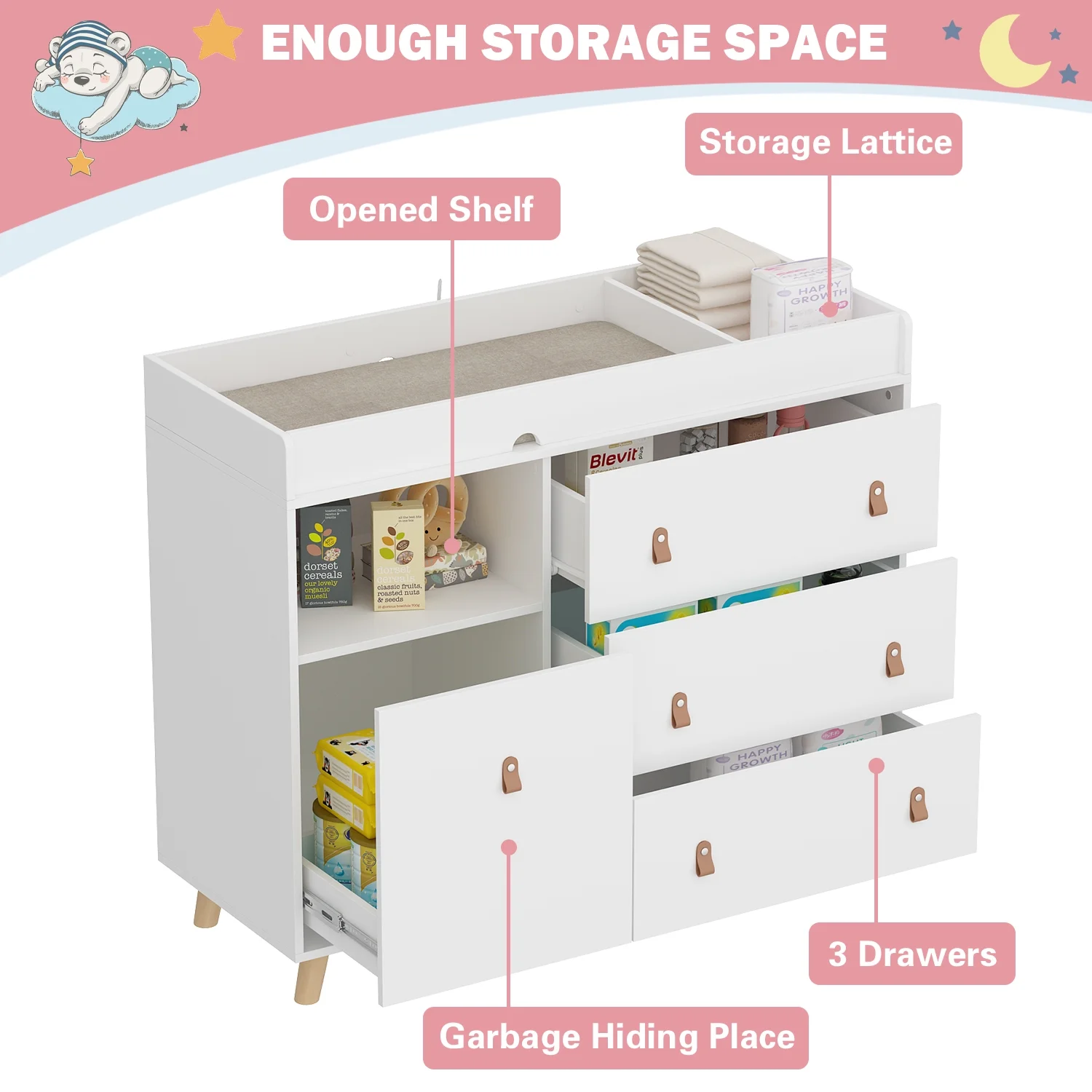 OXYLIFE Baby Nursery Changing Table Dresser with 3 Drawers and Shelf for Nursery Room, White