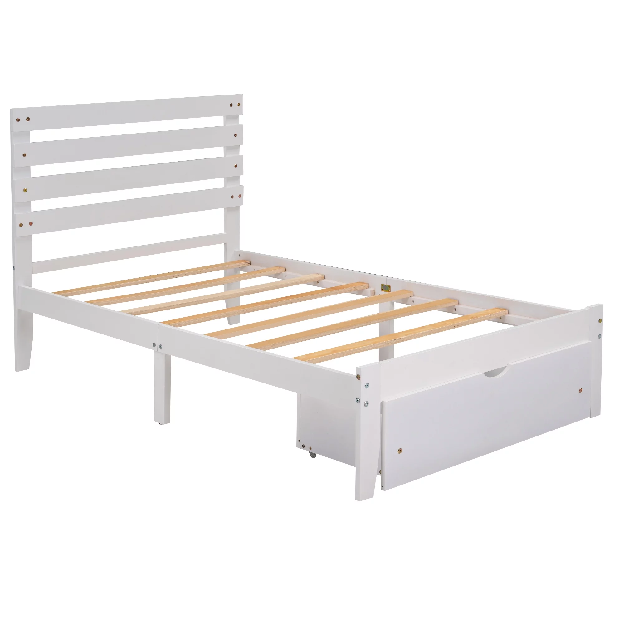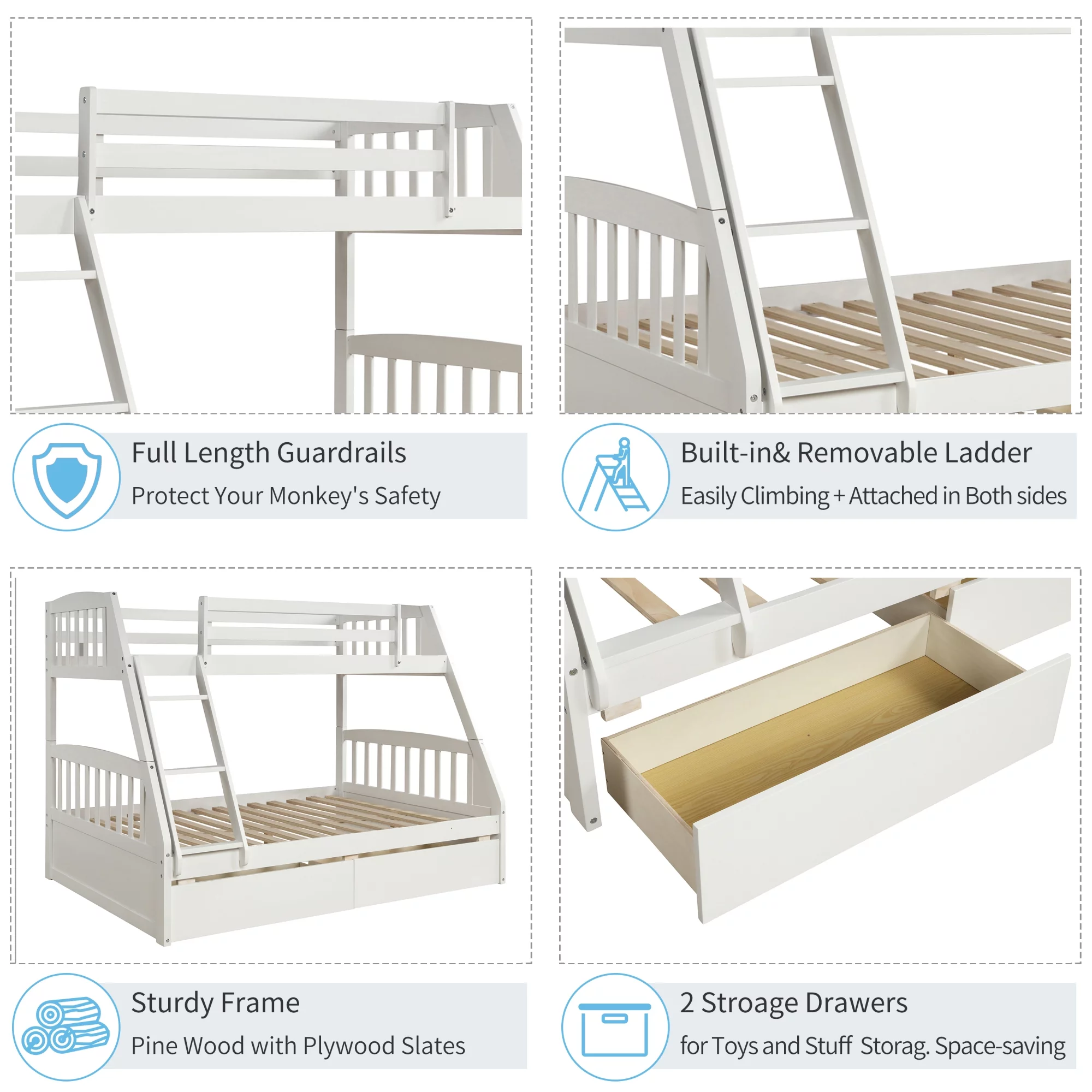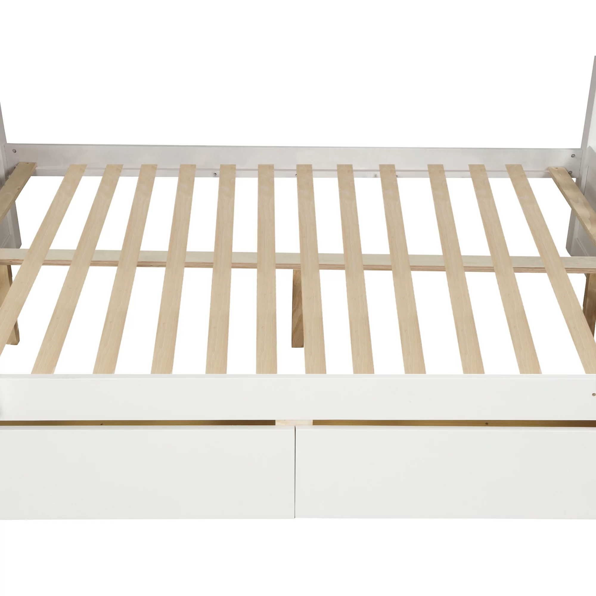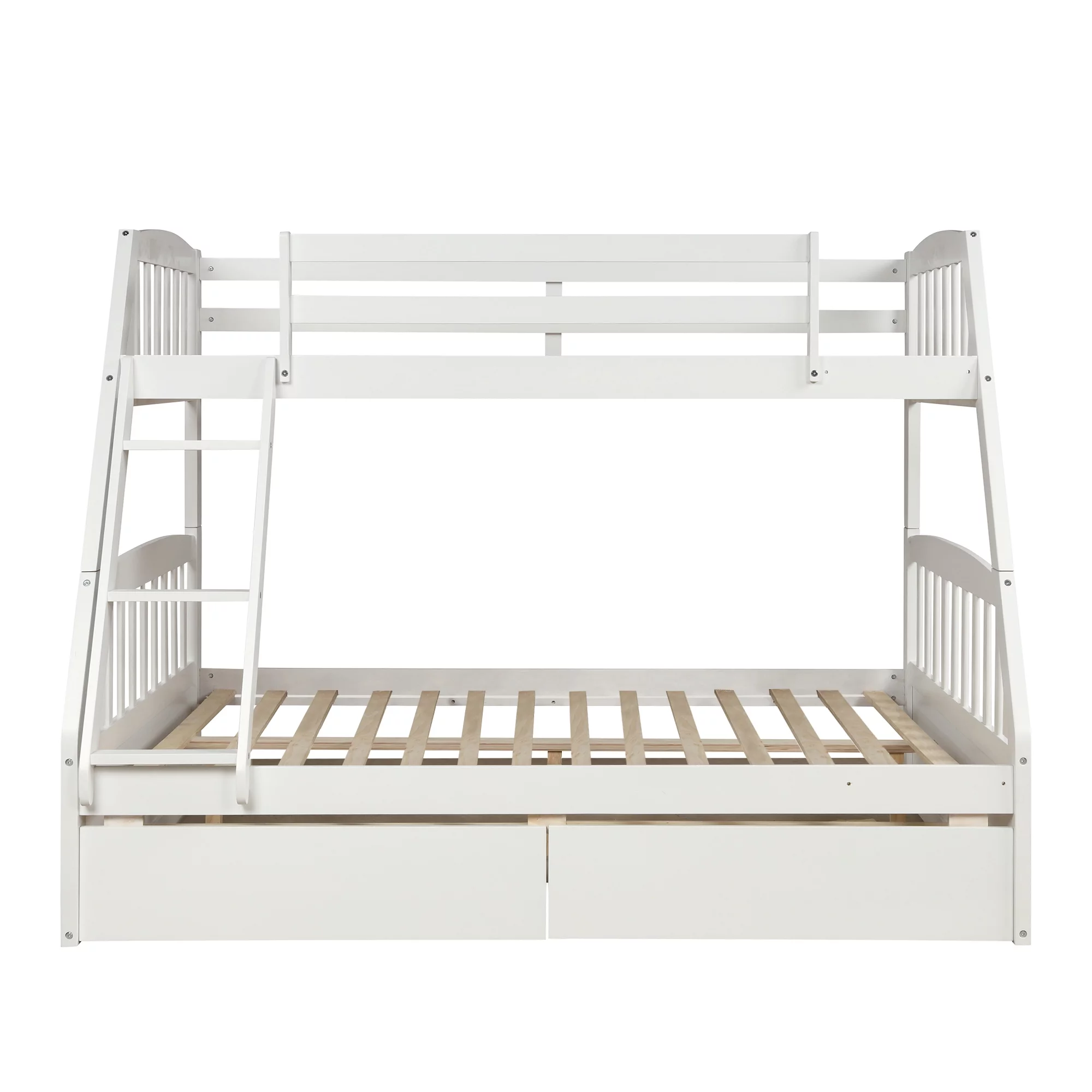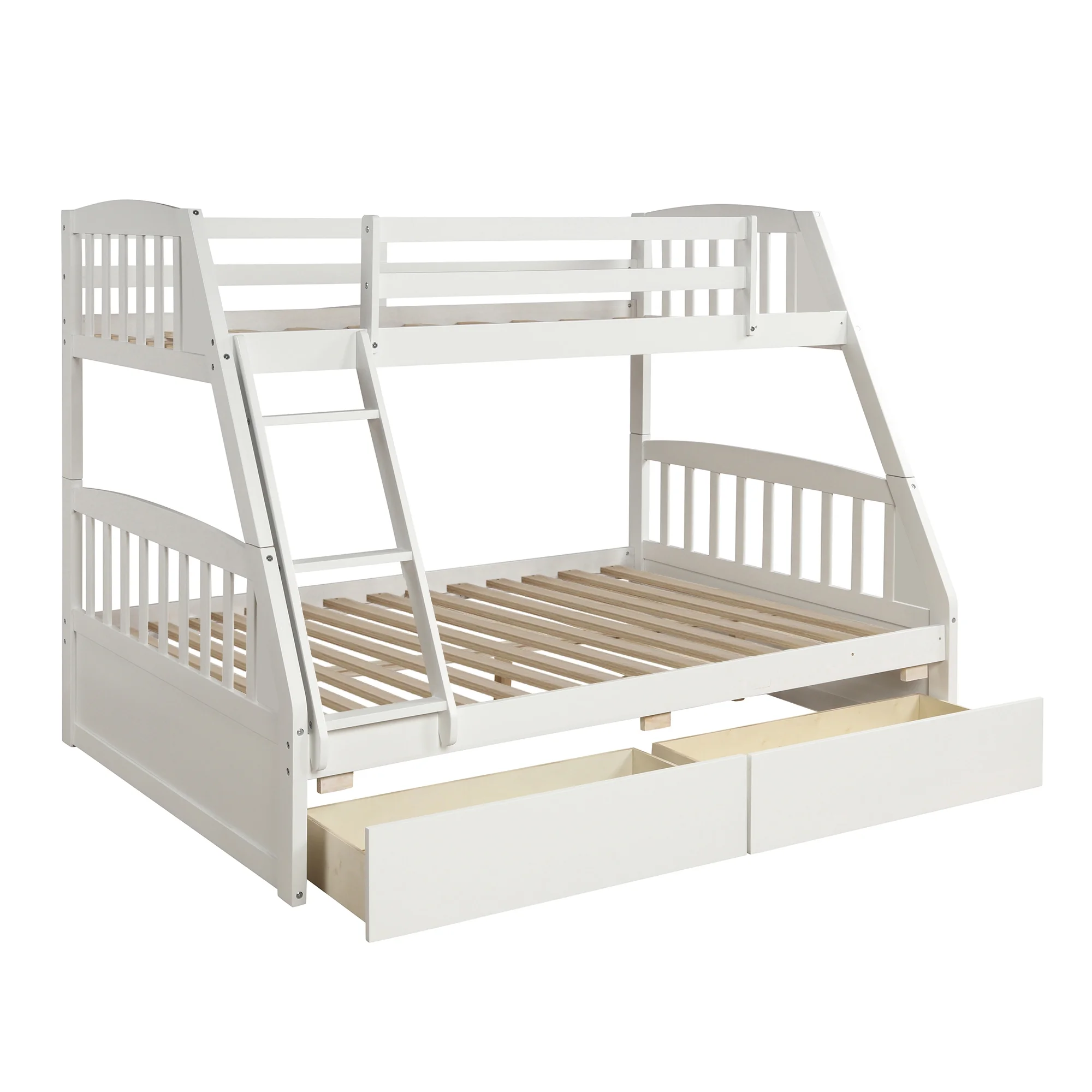 TOPMAX Solid Wood Twin Over Full Bunk Bed with Two Storage Drawers, White