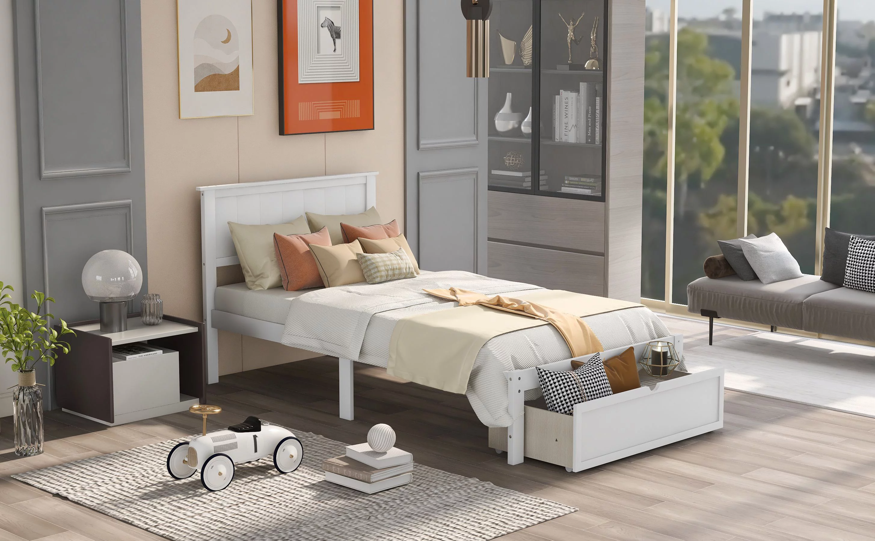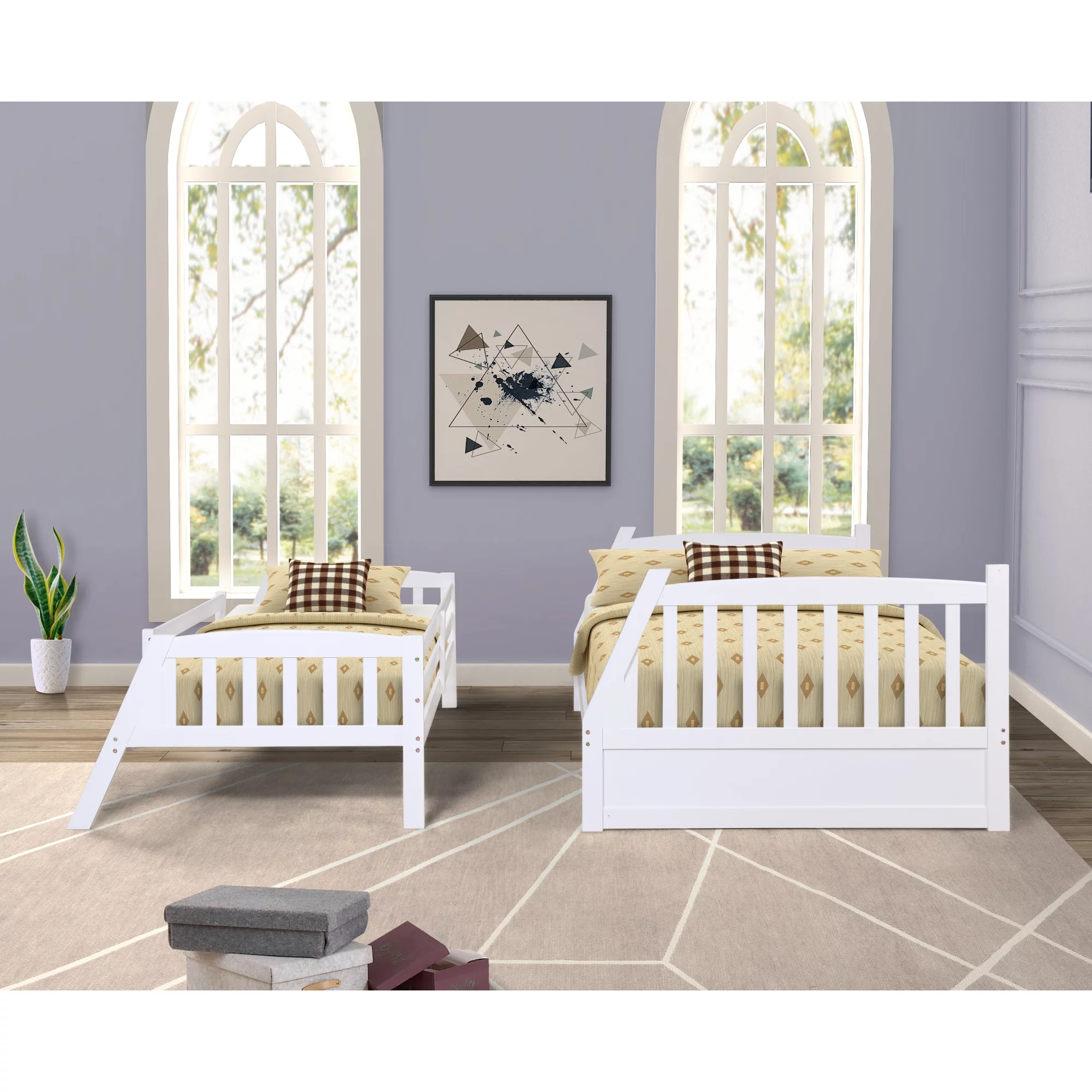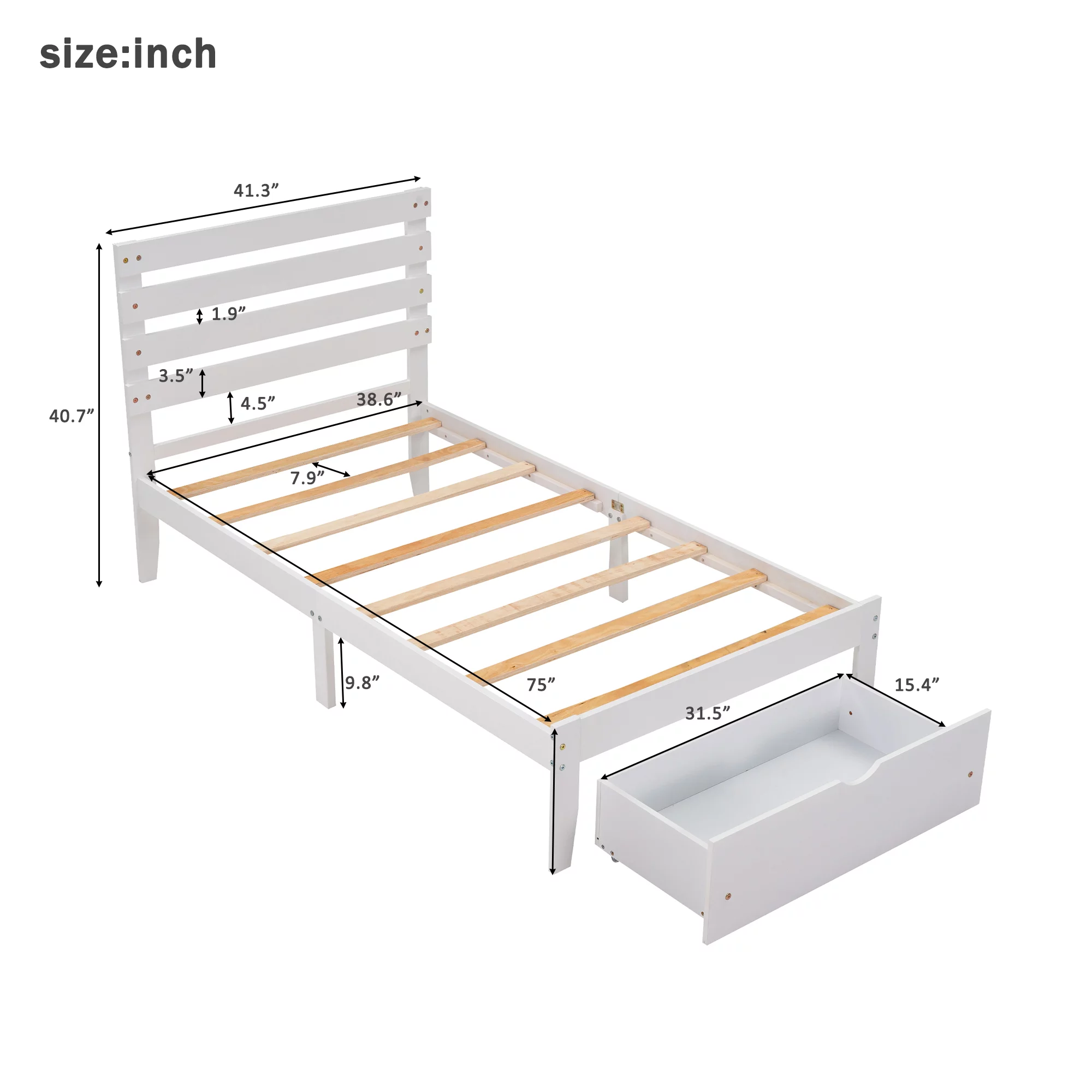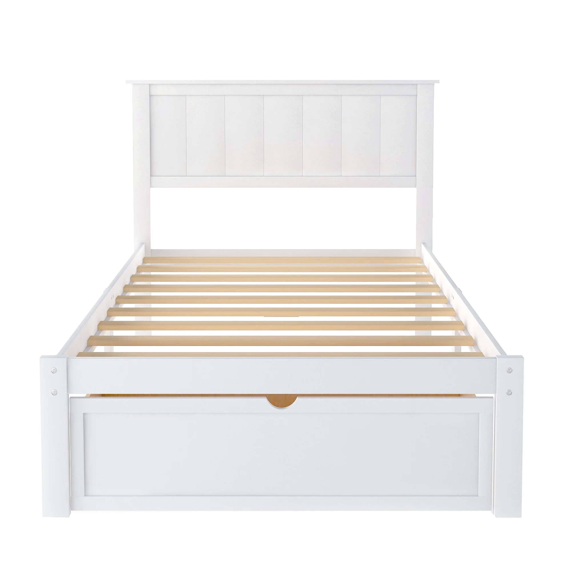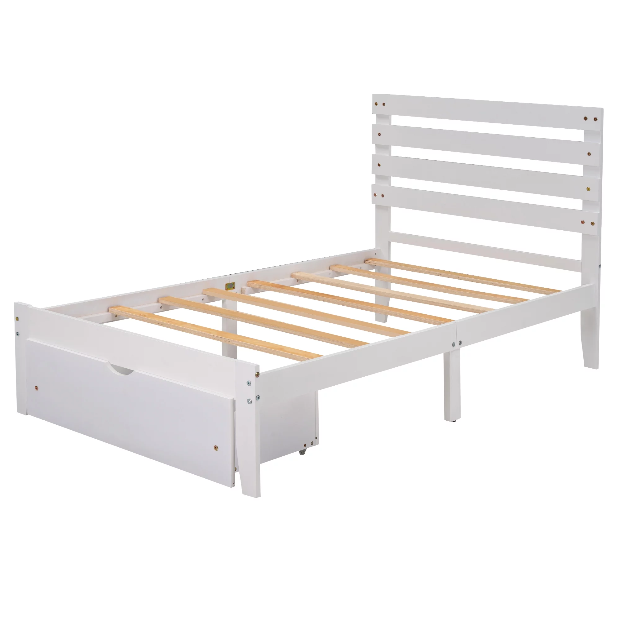 TOPMAX Solid Wood Twin Over Full Bunk Bed with Two Storage Drawers, White