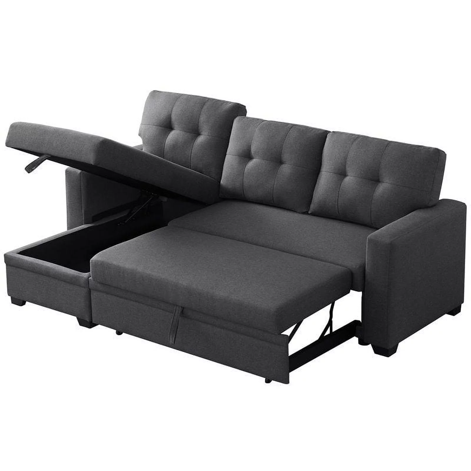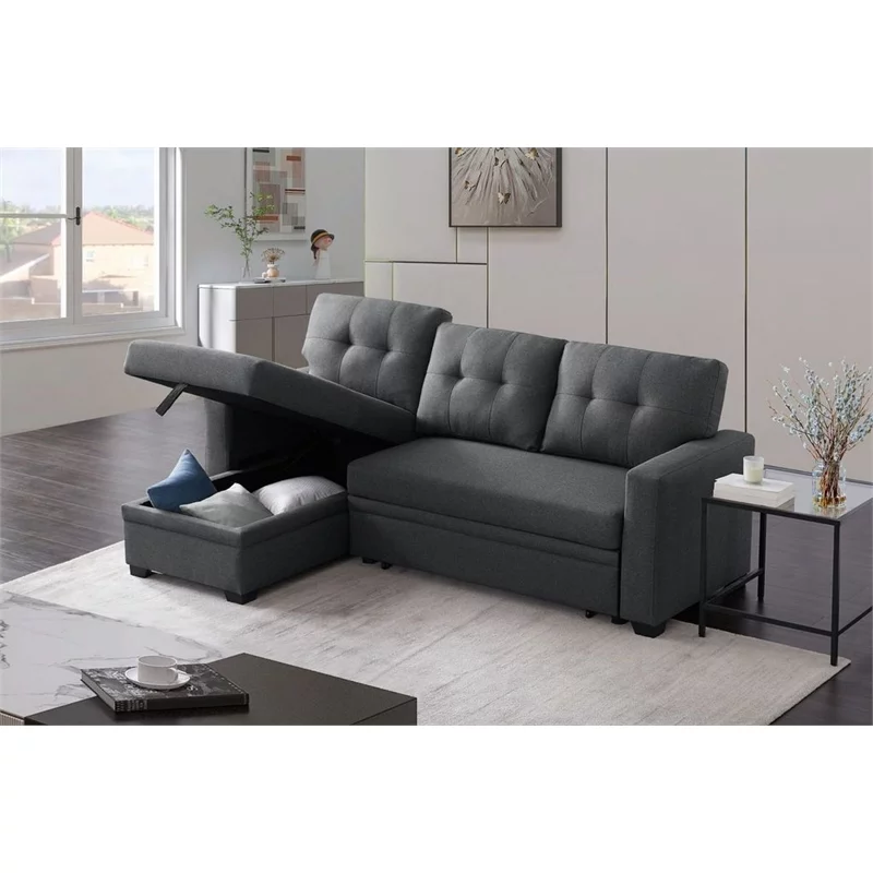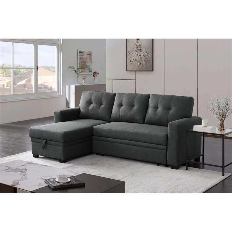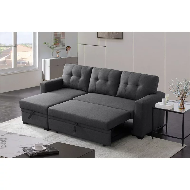 Devion Furniture Polyester Fabric Reversible Sleeper Sectional Sofa in Dark Gray