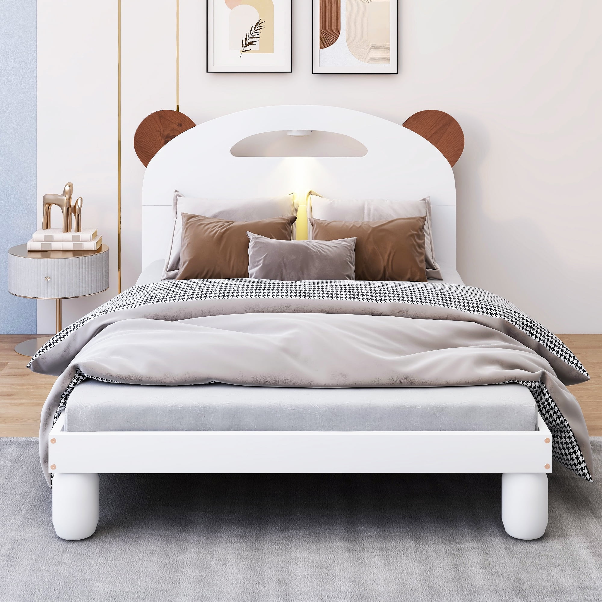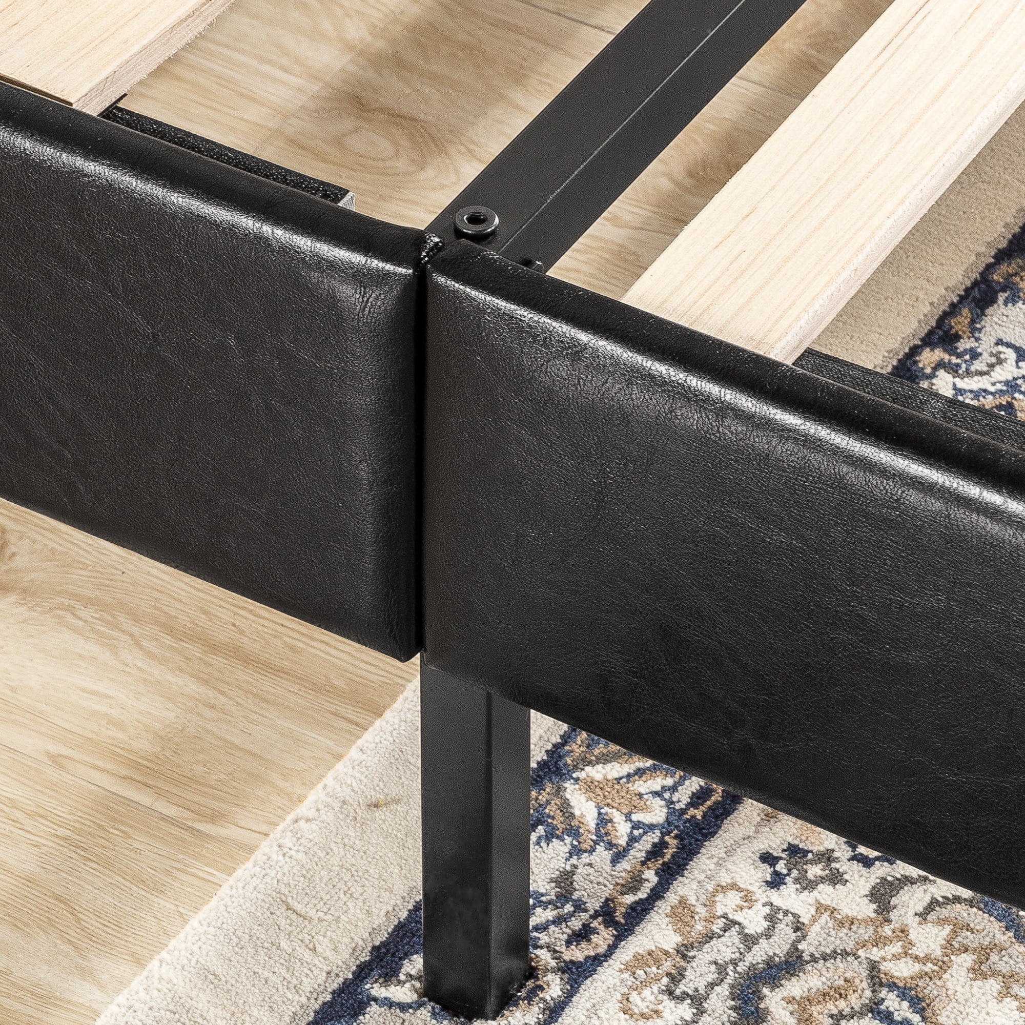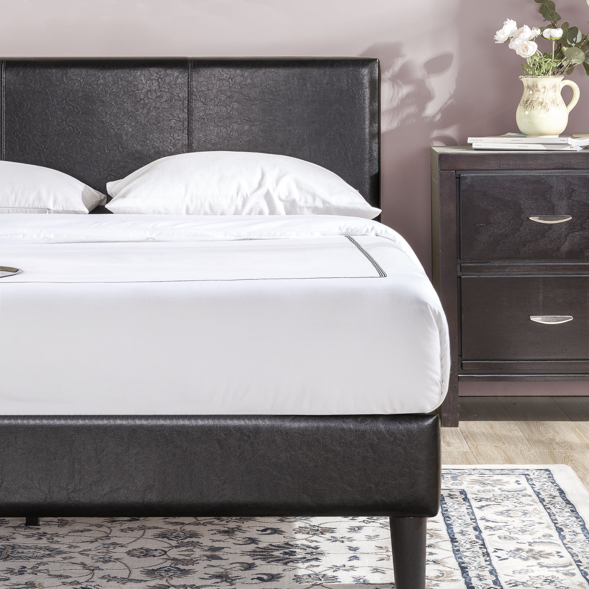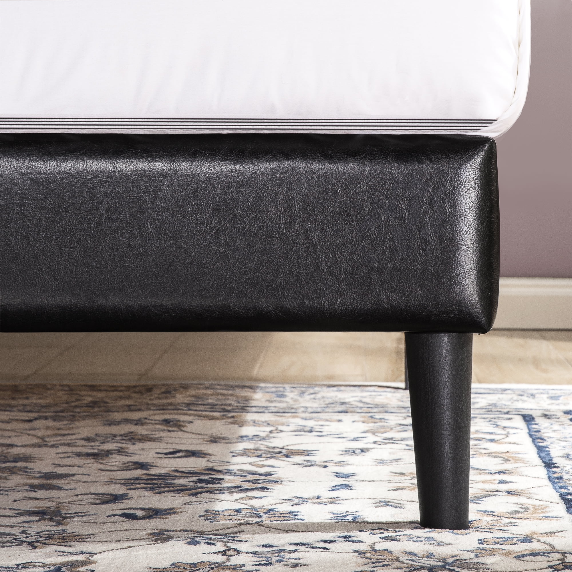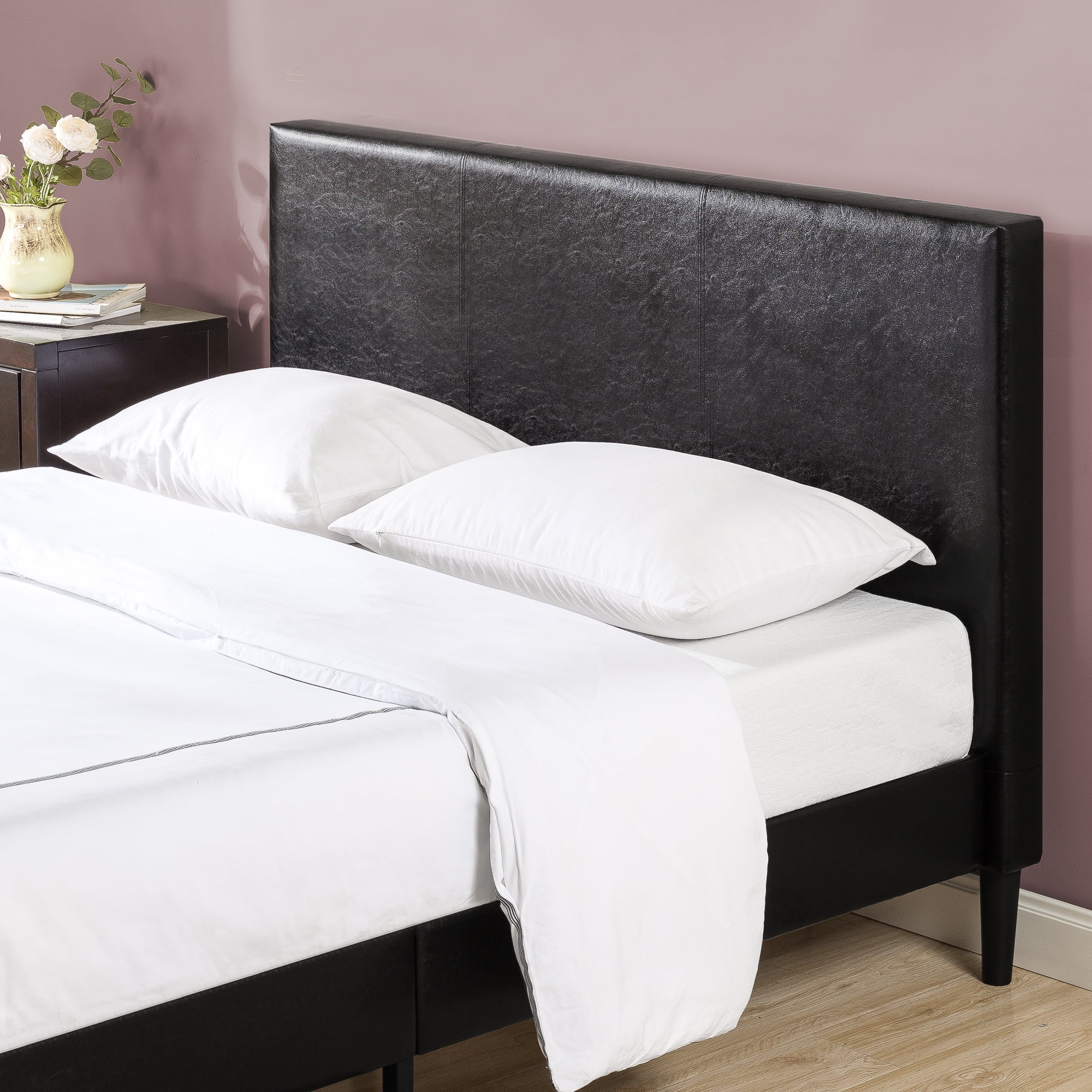 Zinus Jade 35” Faux Leather Platform Bed with Short Headboard, Black, Twin