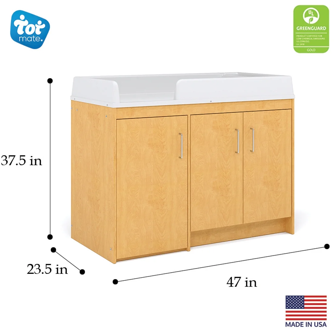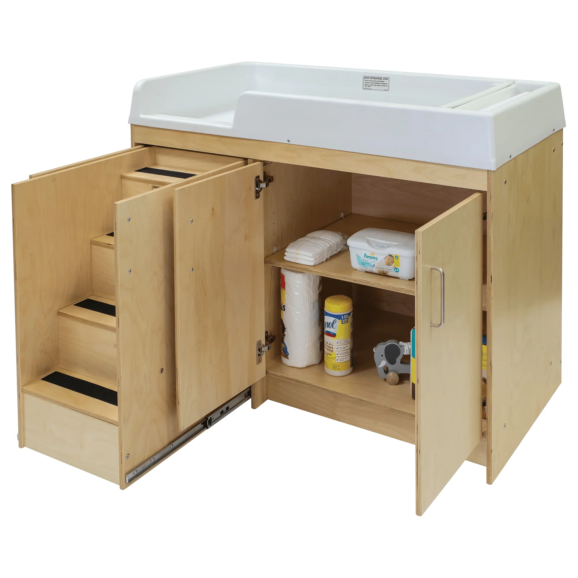 Tot Mate Toddler Changing Table with Walk-up Steps, Nursery Furniture, Birch Plywood, Assembled