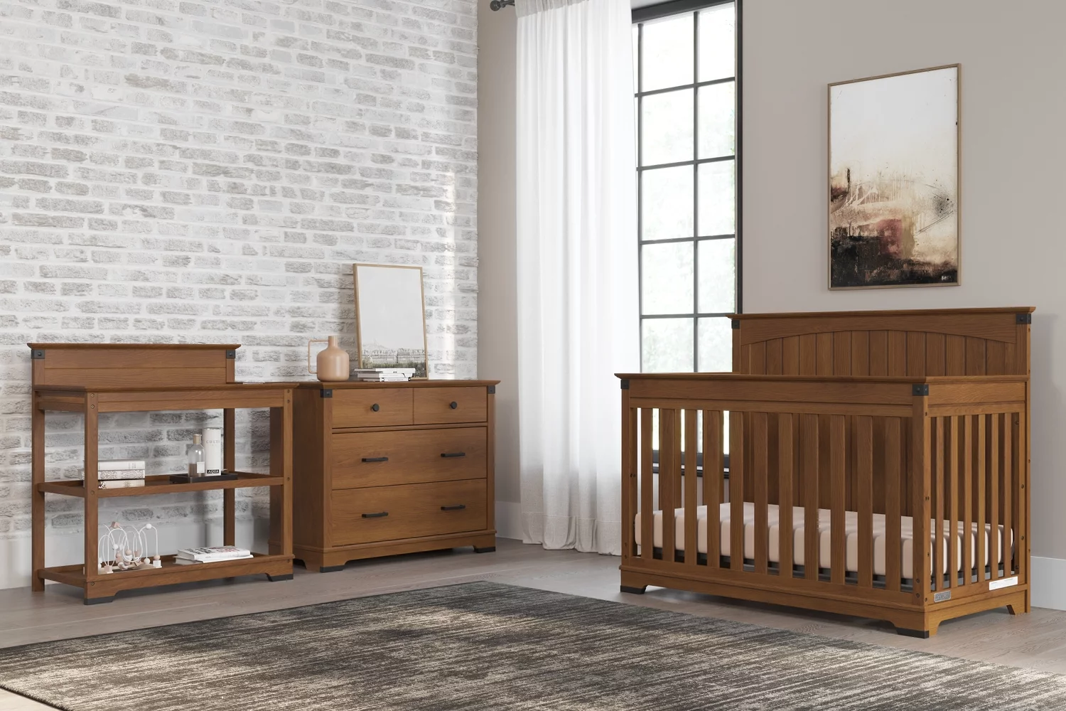 AFG Baby Furniture Grace 3-Drawer Changing Table with Contoured Changing Pad, Pecan
