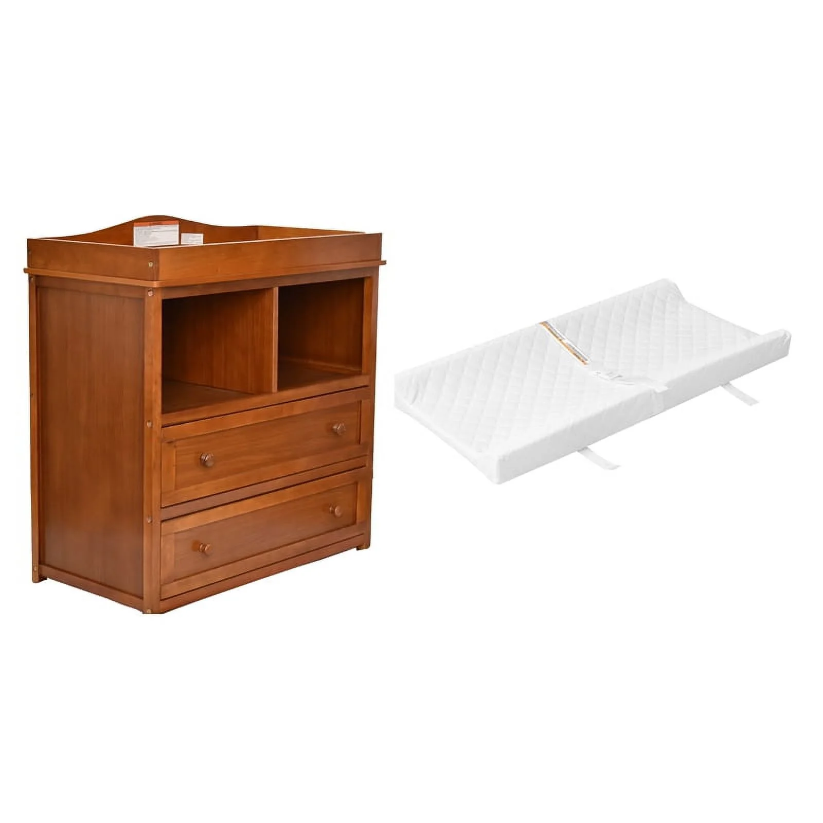 AFG Baby Furniture Leila 2-Drawer Changing Table with Contoured Changing Pad, Pecan