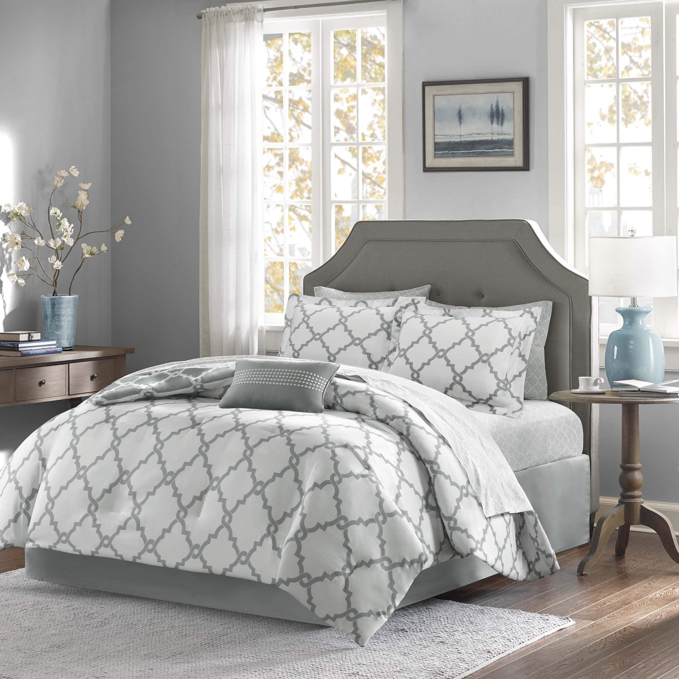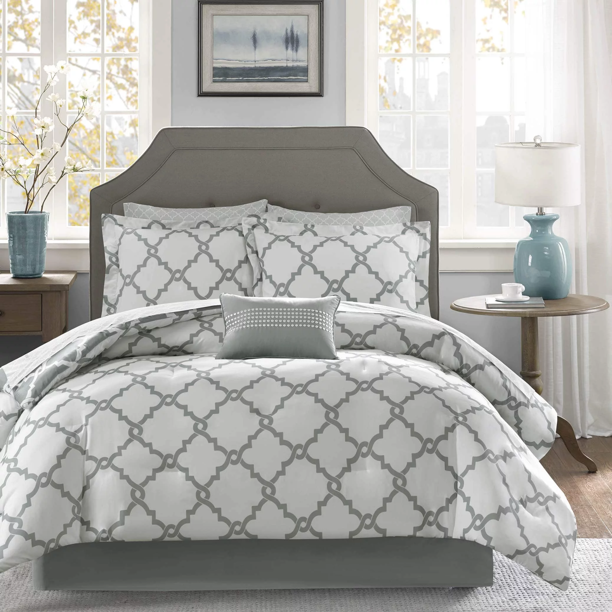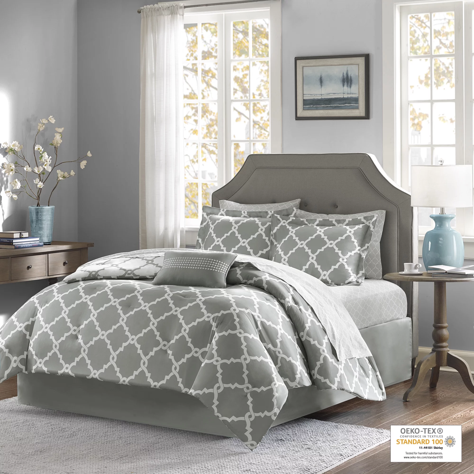 Home Essence Gray 9 Piece Bed in a Bag Comforter Set with Sheets, Queen