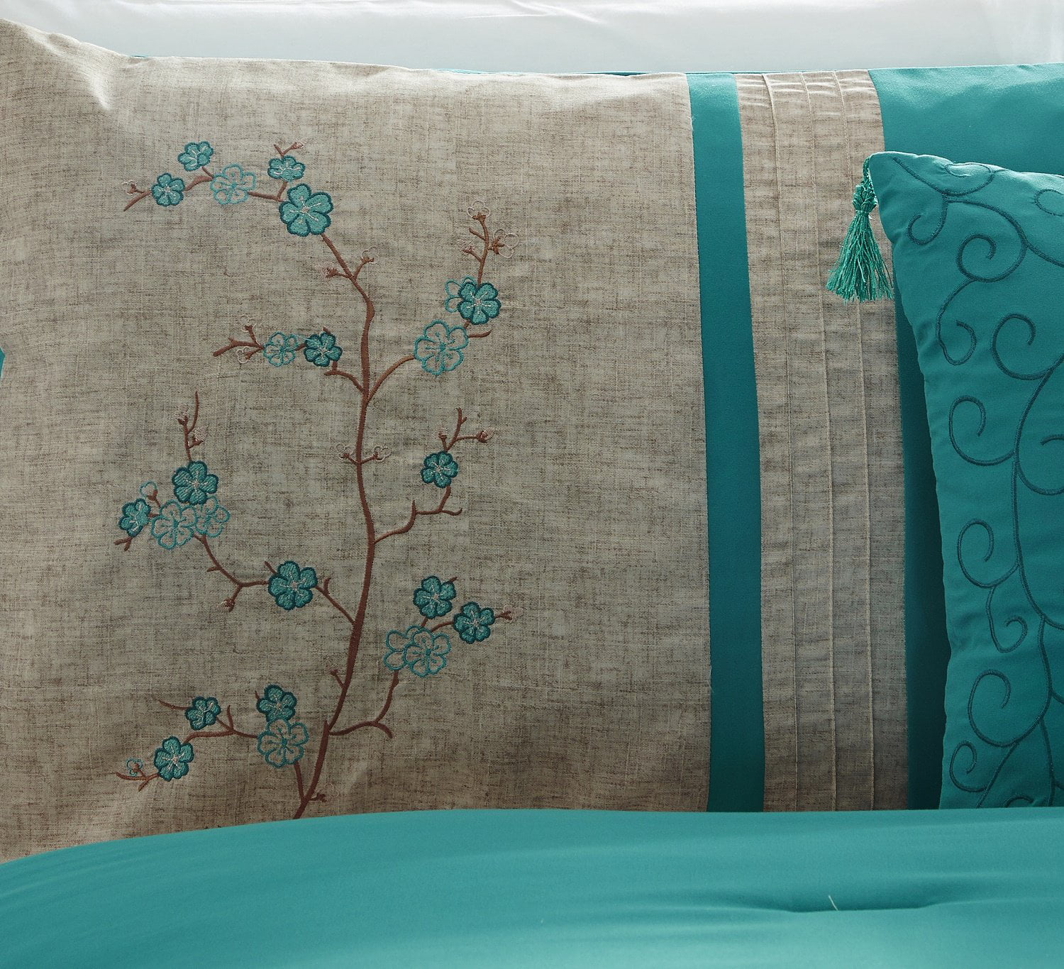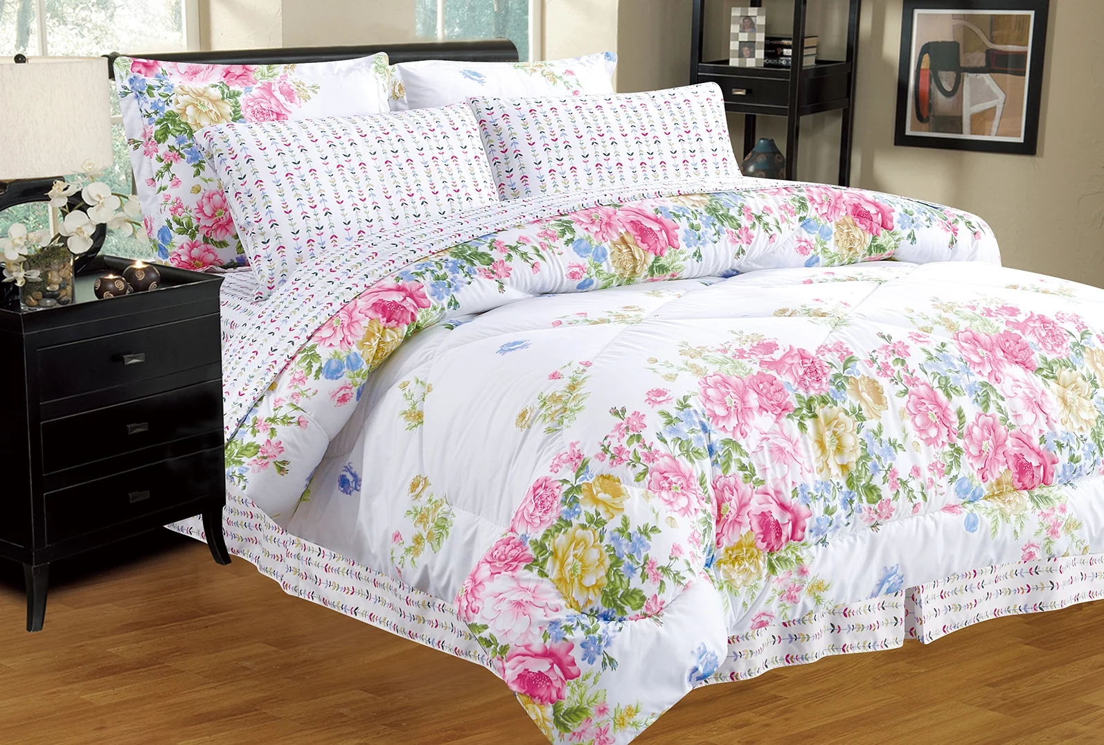 Chezmoi Collection Floral 7 Piece Comforter Sets, Queen with Shams, Bed Skirt, Cushions, Breakfast Pillow