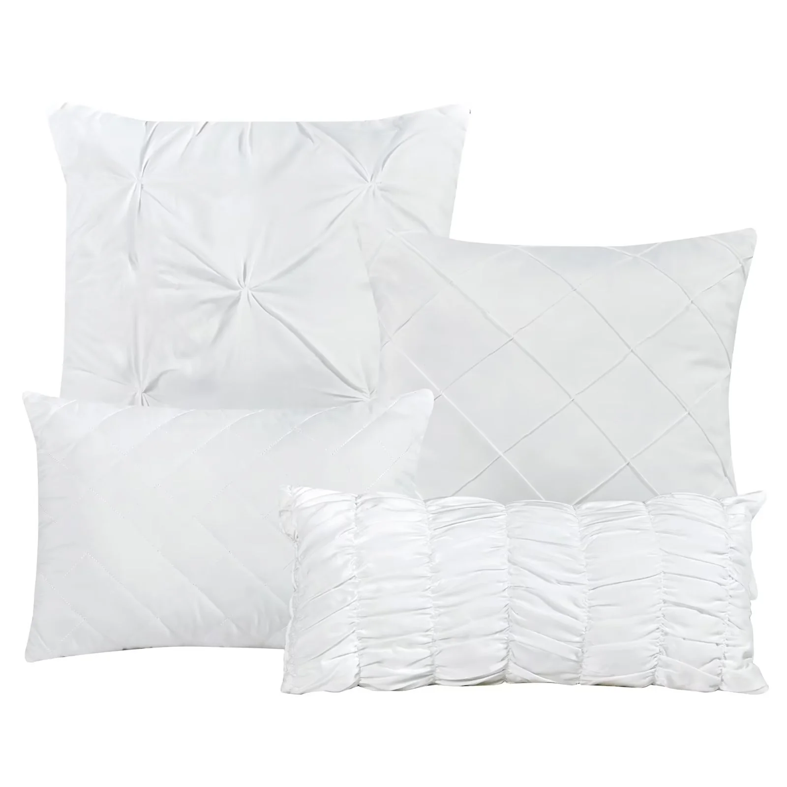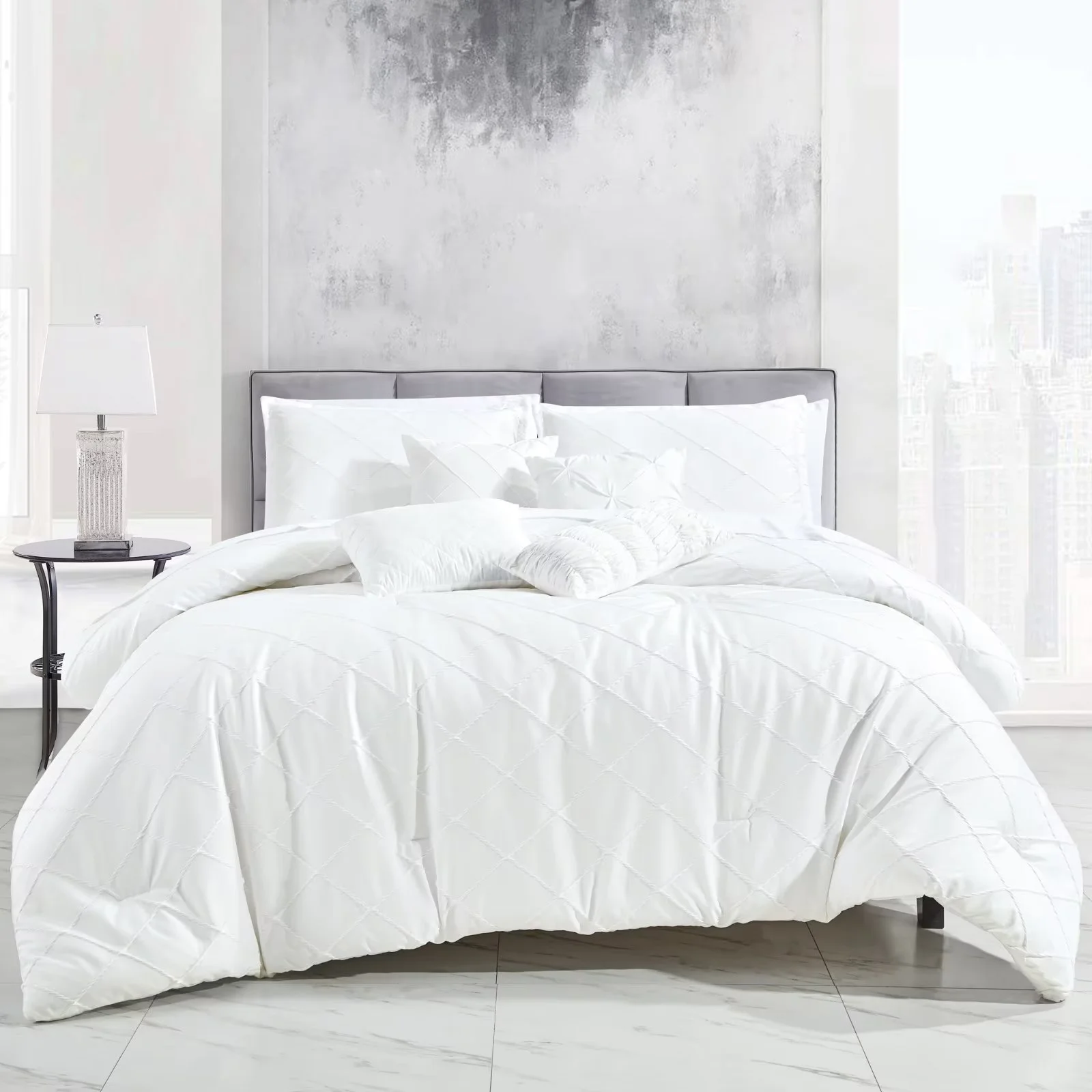 Pintuck Hypoallergenic 8-Piece Bed In A Bag Comforter Set - Sheet Set Included!! (White, Queen)