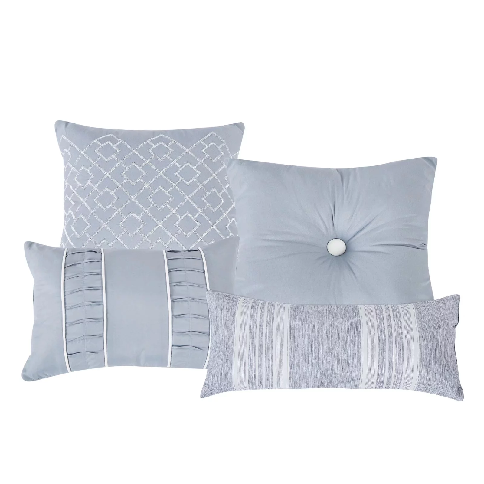 Lucid Reversible Bed in a Bag 7-Piece Comforter Set with 2 Pillows, Queen, Blue/Gray