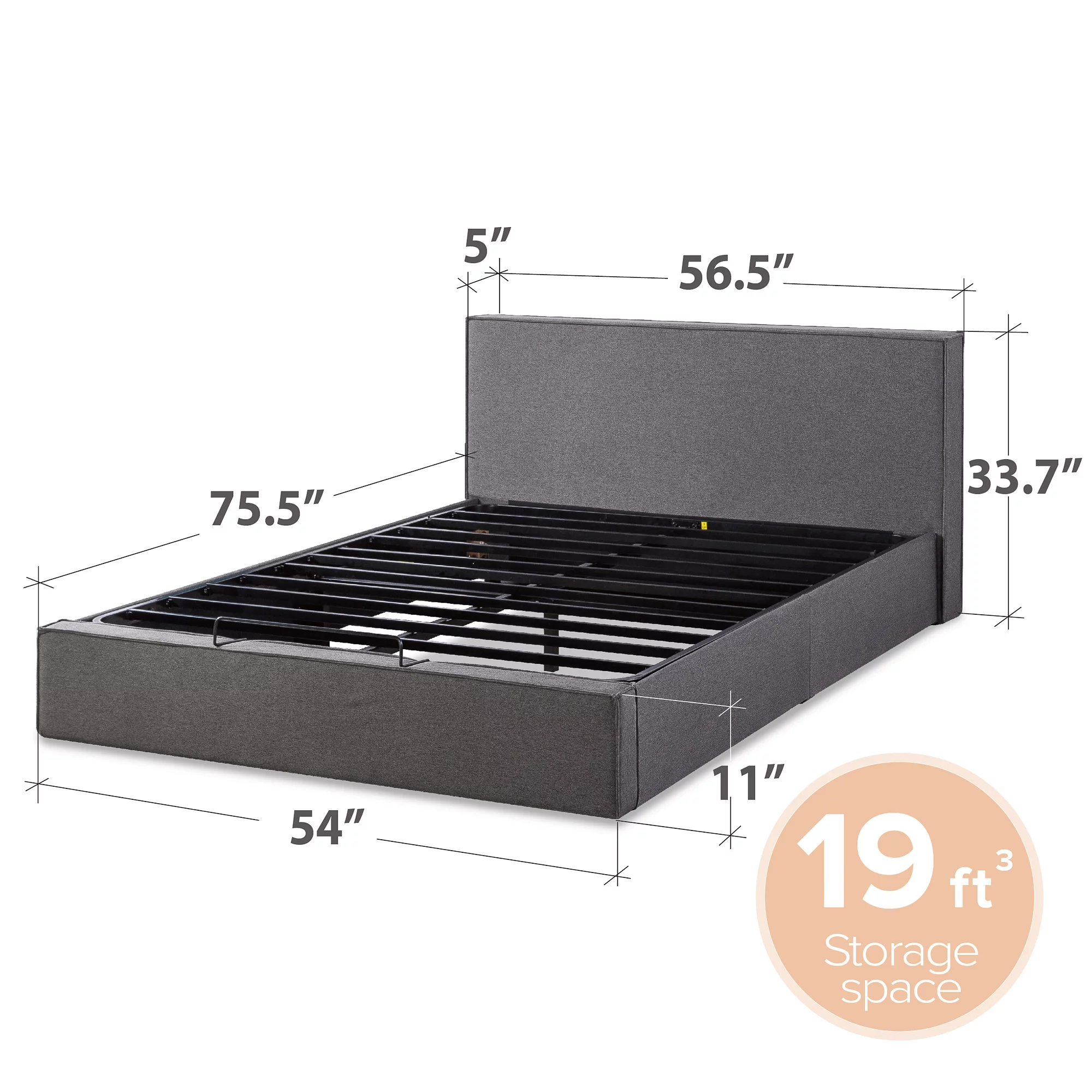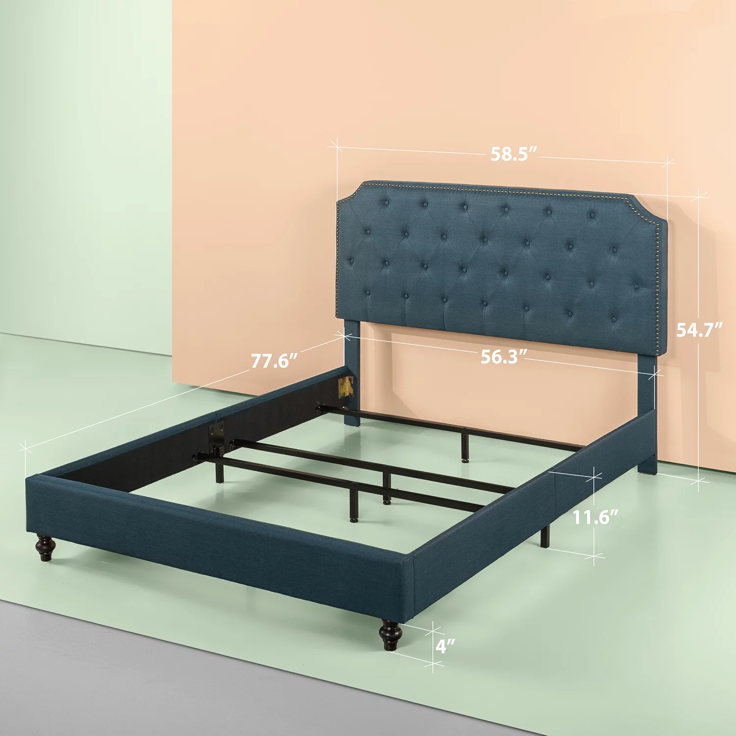 Zinus Andover 47” Blue Upholstered Platform Bed with Adjustable Headboard, Full