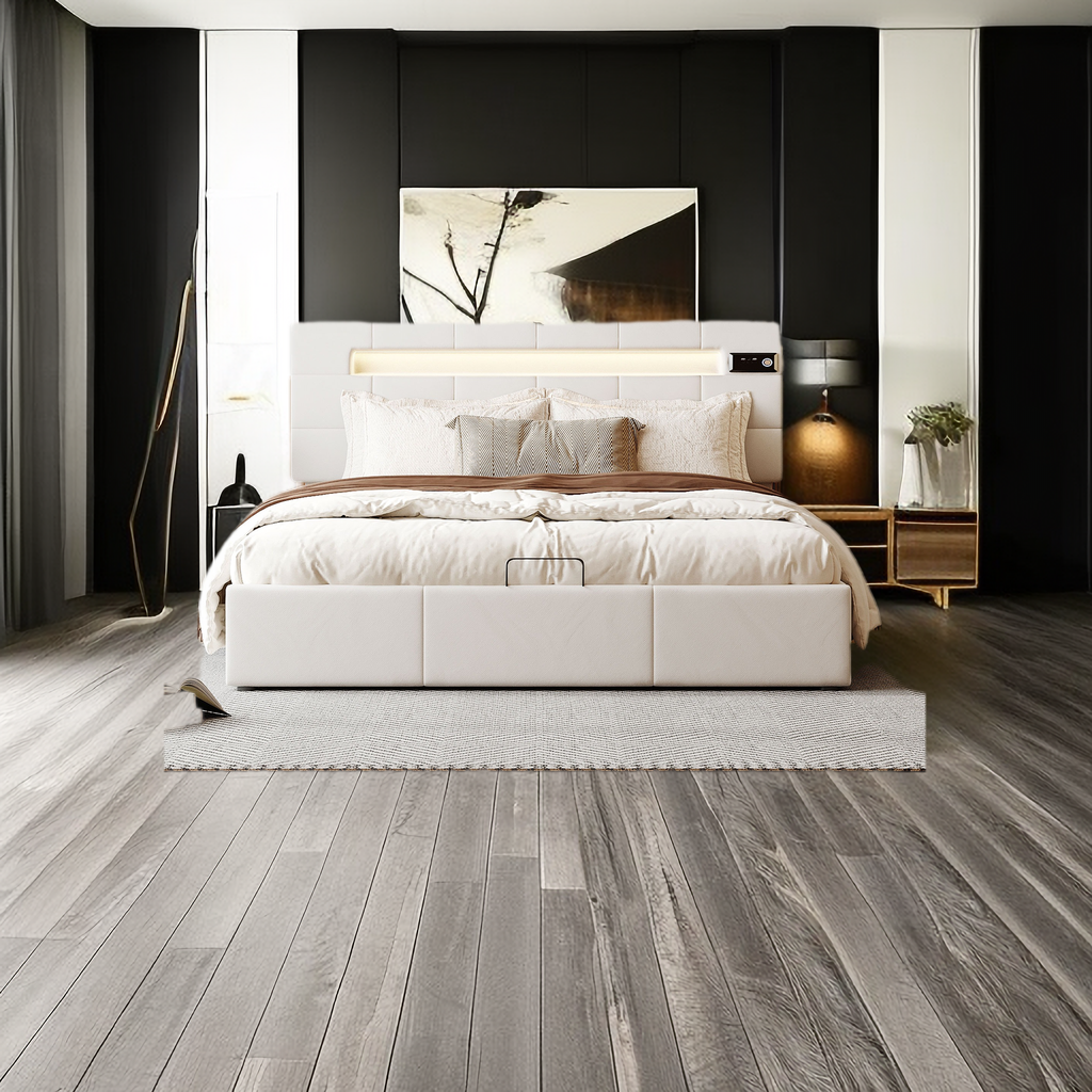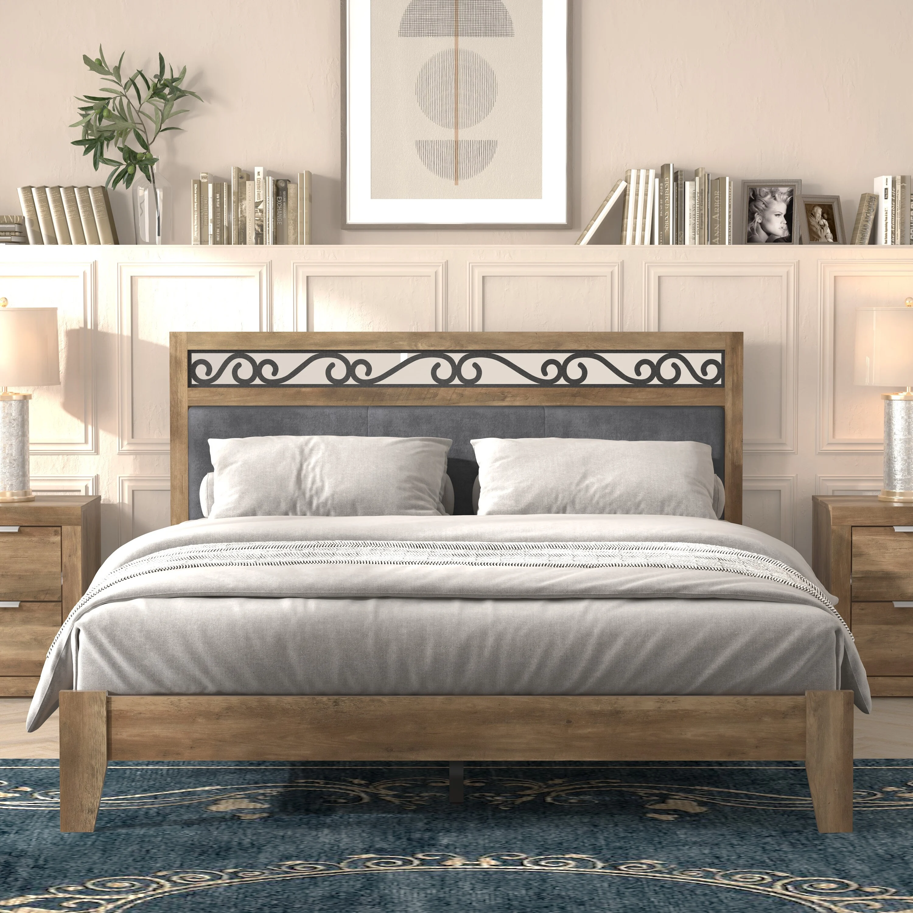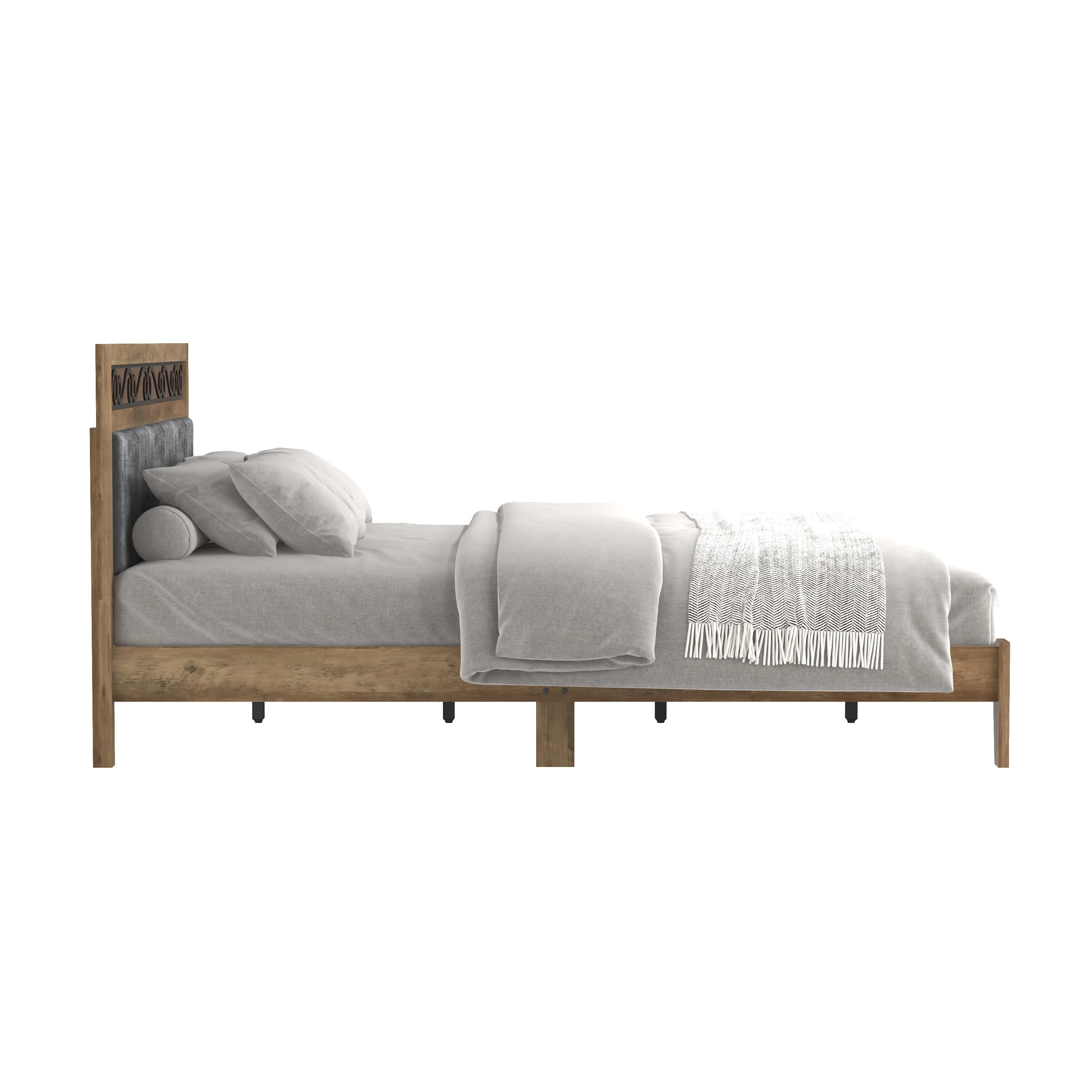 GALANO Tammin Knotty Oak Upholstered Queen Platform Bed with Headboard