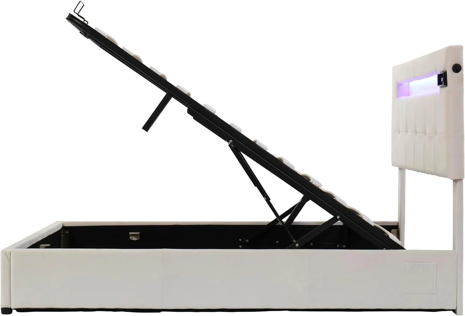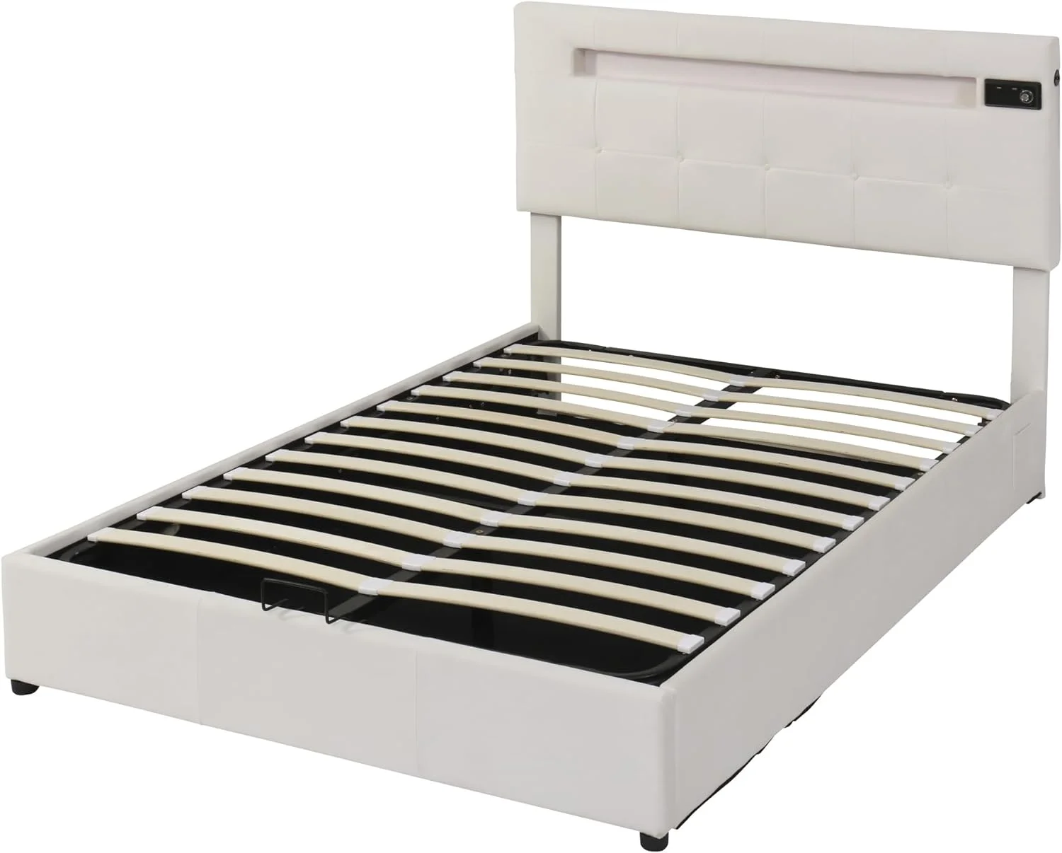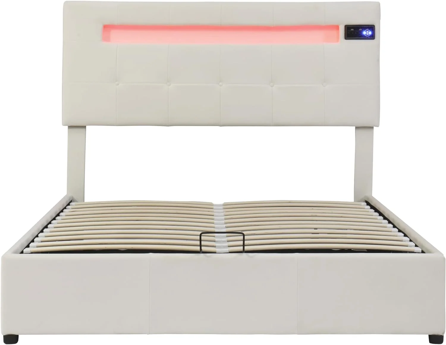 GALANO Tammin Knotty Oak Upholstered Queen Platform Bed with Headboard