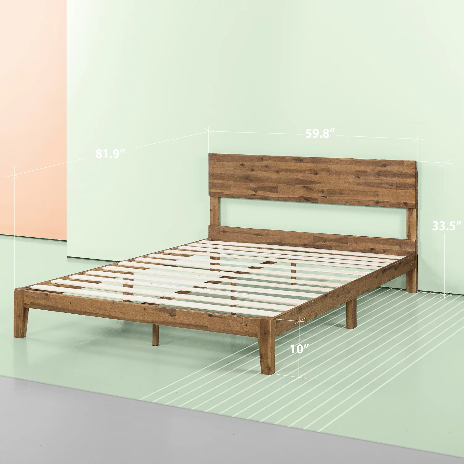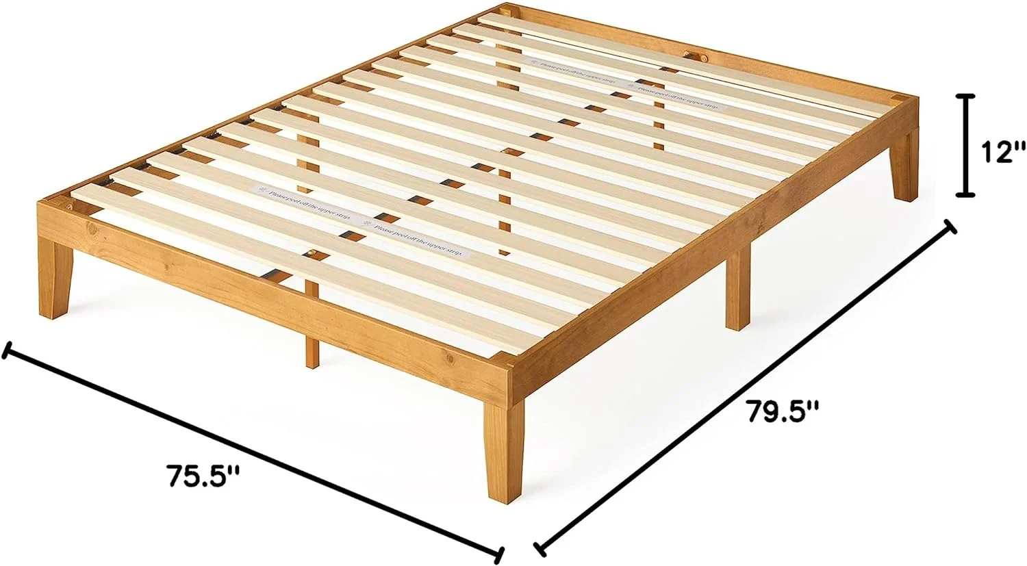 Zinus Alexis 12 Inch Deluxe Wood Platform Bed / No Box Spring Needed / Wood Slat Support / Rustic Pine Finish, Queen