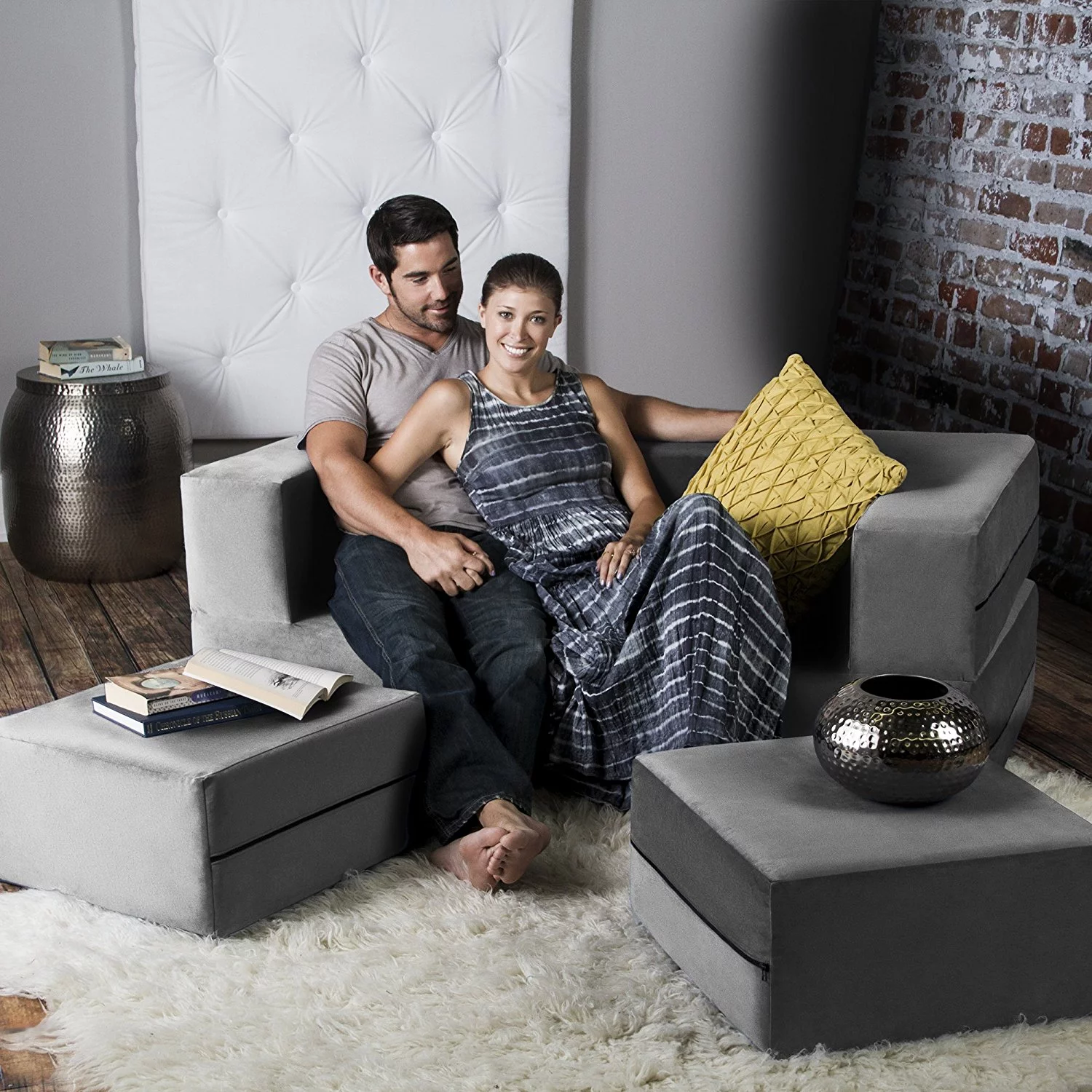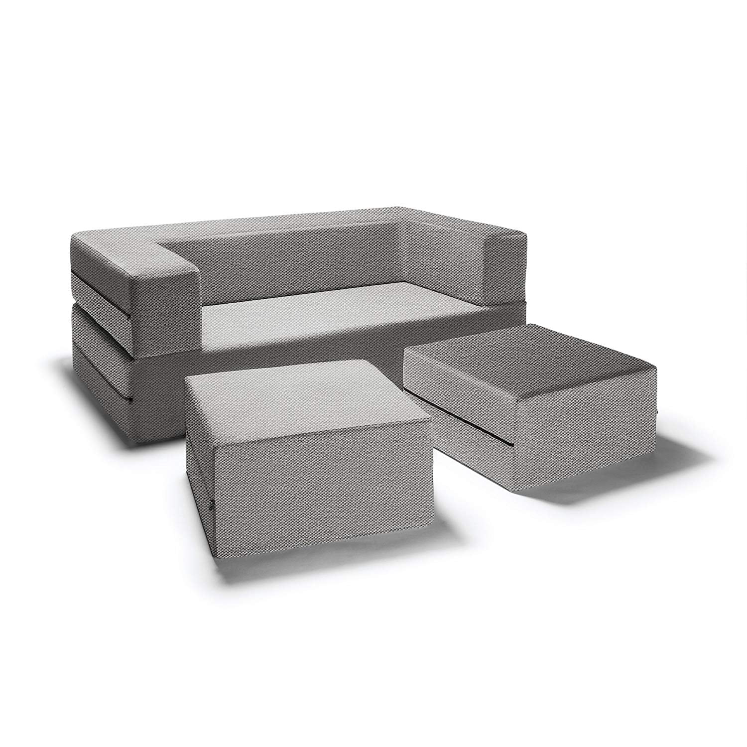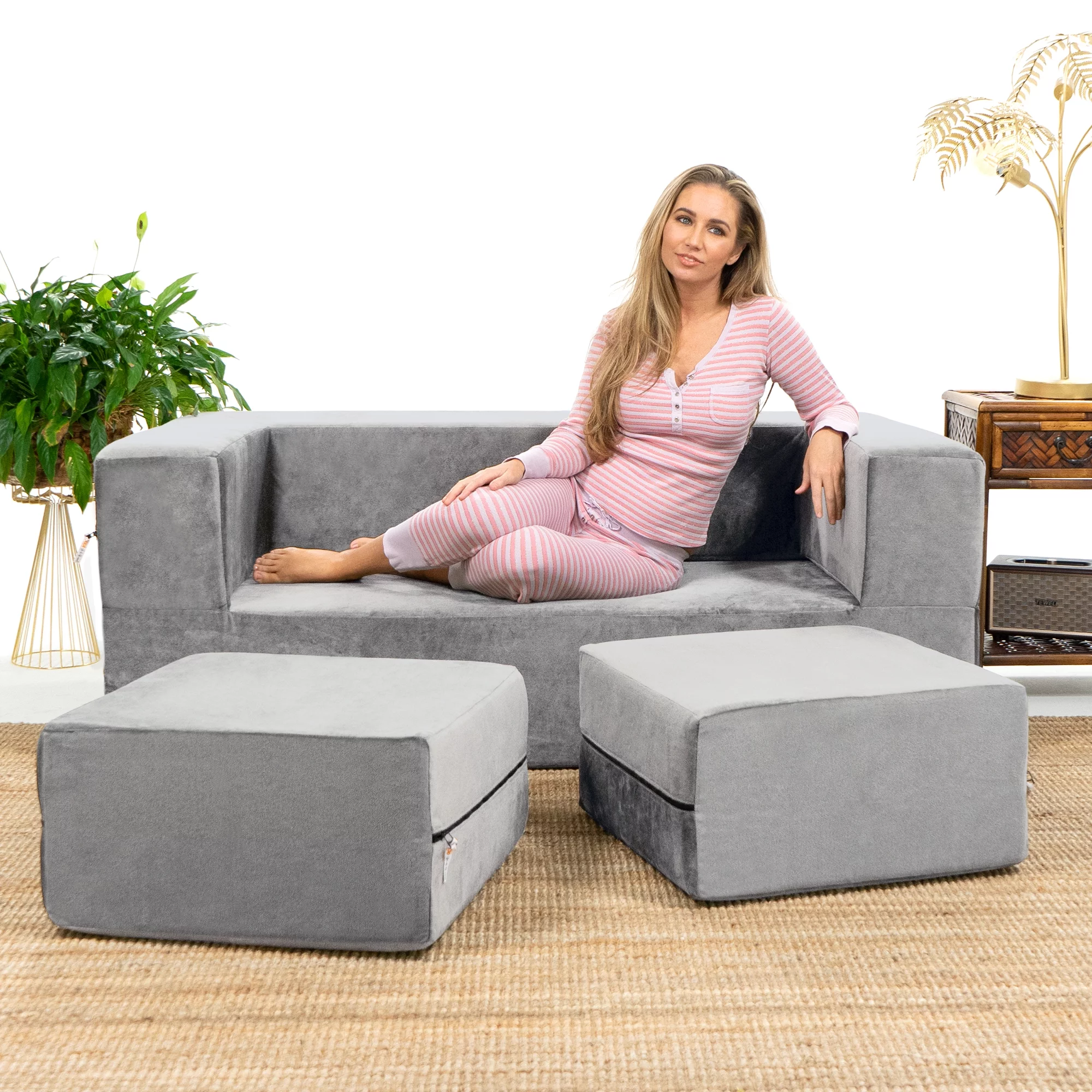 Jaxx Zipline Convertible Sleeper Loveseat & Ottomans / Queen-Size Bed, Pewter