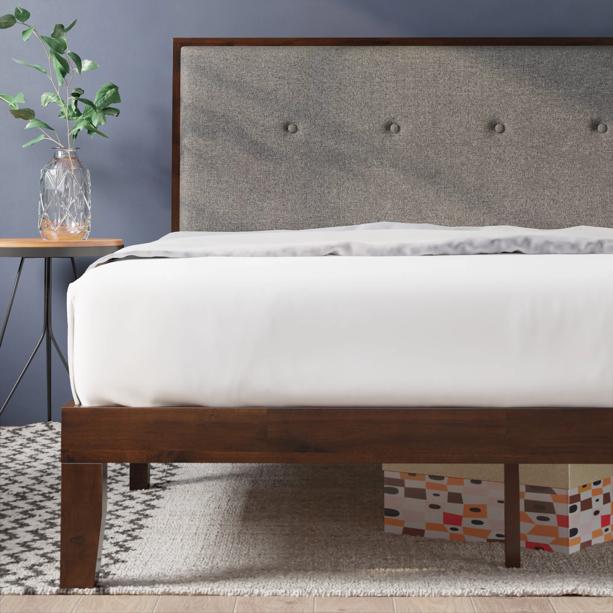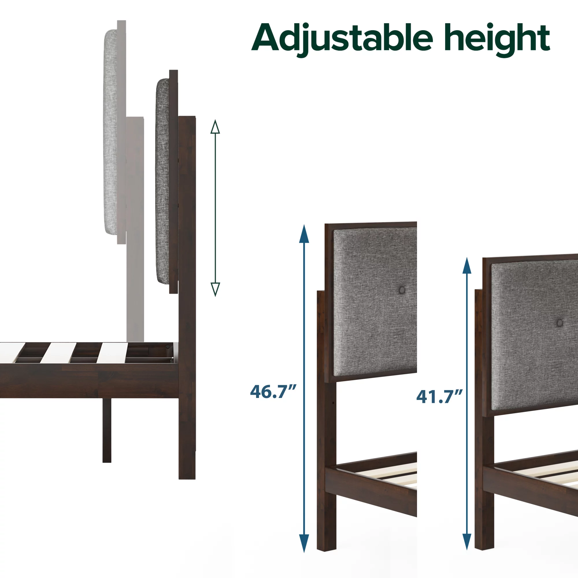 Zinus Moiz 42" Wood Platform Bed Frame with Adjustable Upholstered Headboard, King