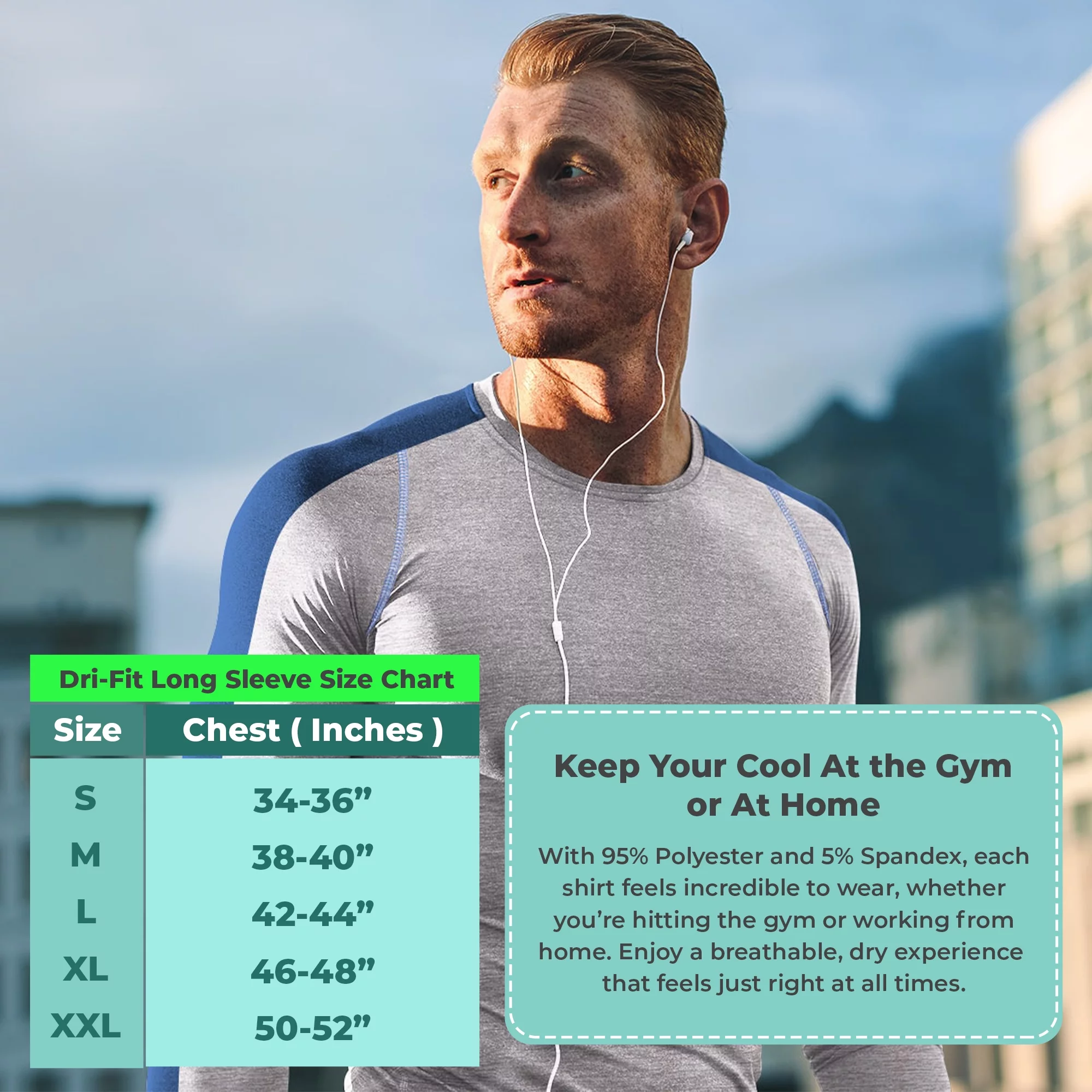 DARESAY Dri-Fit Long Sleeve T Shirts for Men-4 Pack- Moisture Wicking, Quick Dry Tees (Up to 3XL)