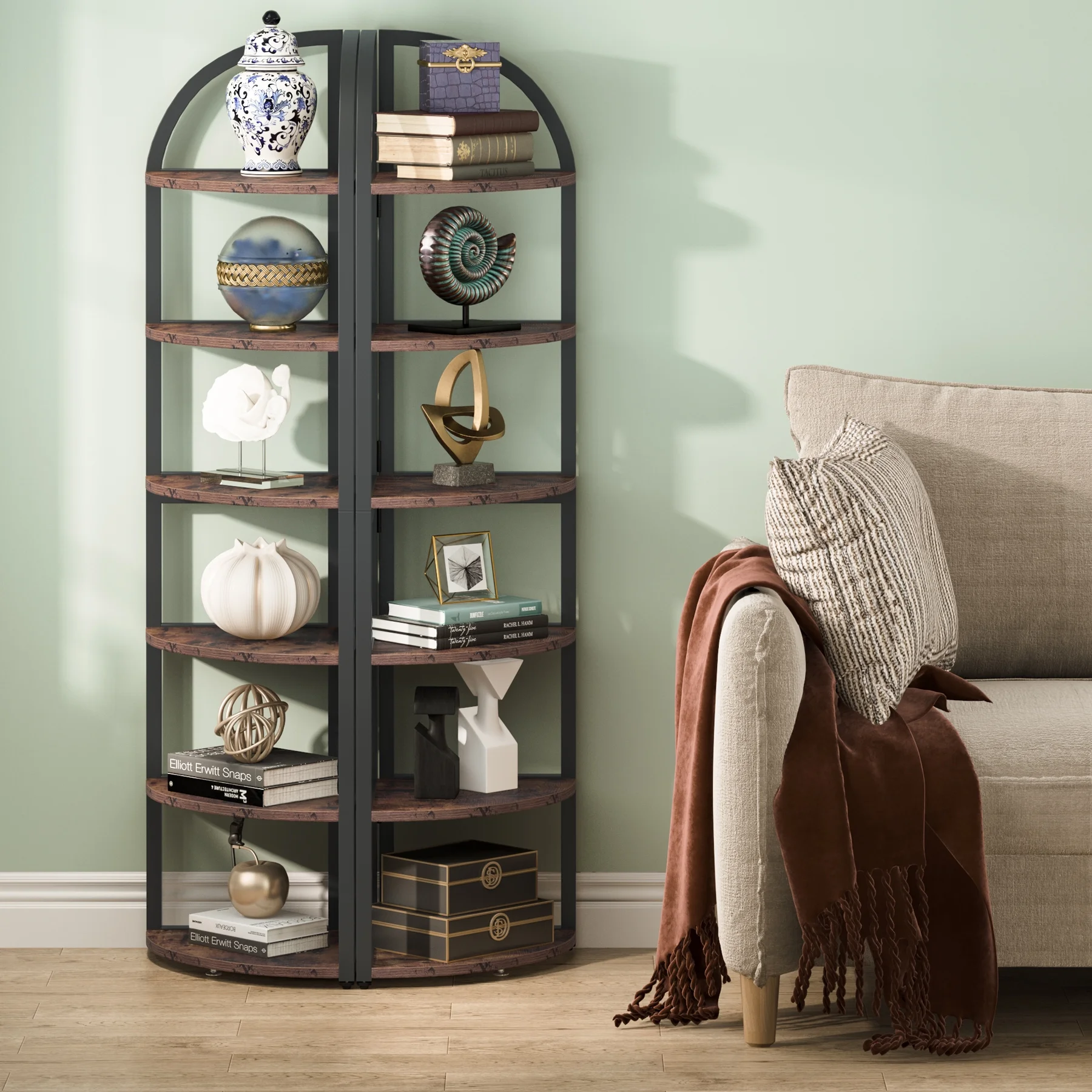6 Tier Corner Shelf 71" Tall Corner Bookshelf Rustic Plant Stand Display Rack