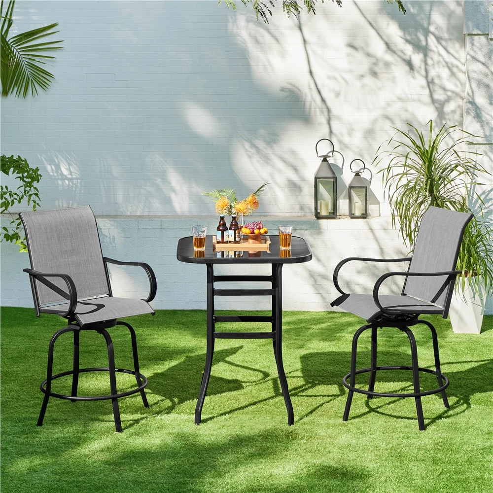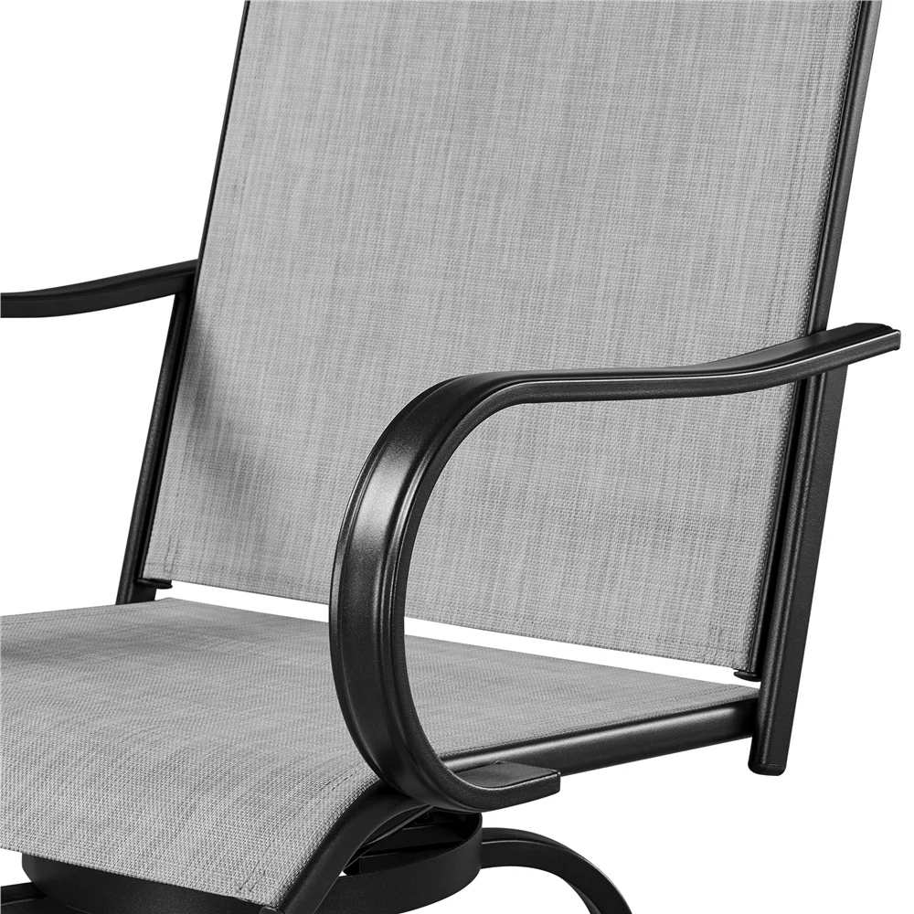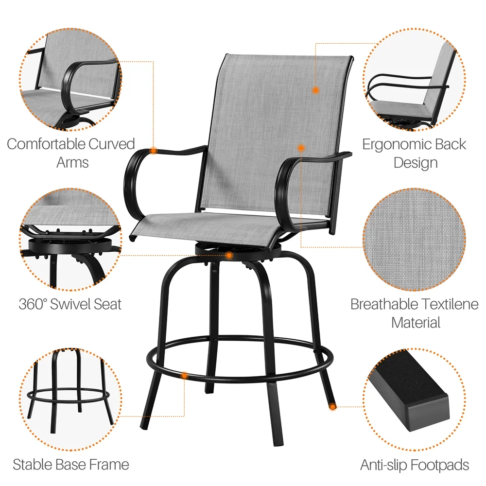 Yaheetech Outdoor Swivel Texteline Bar Stools with Armrest and Footrest, Set of 2, Black/Light Gray
