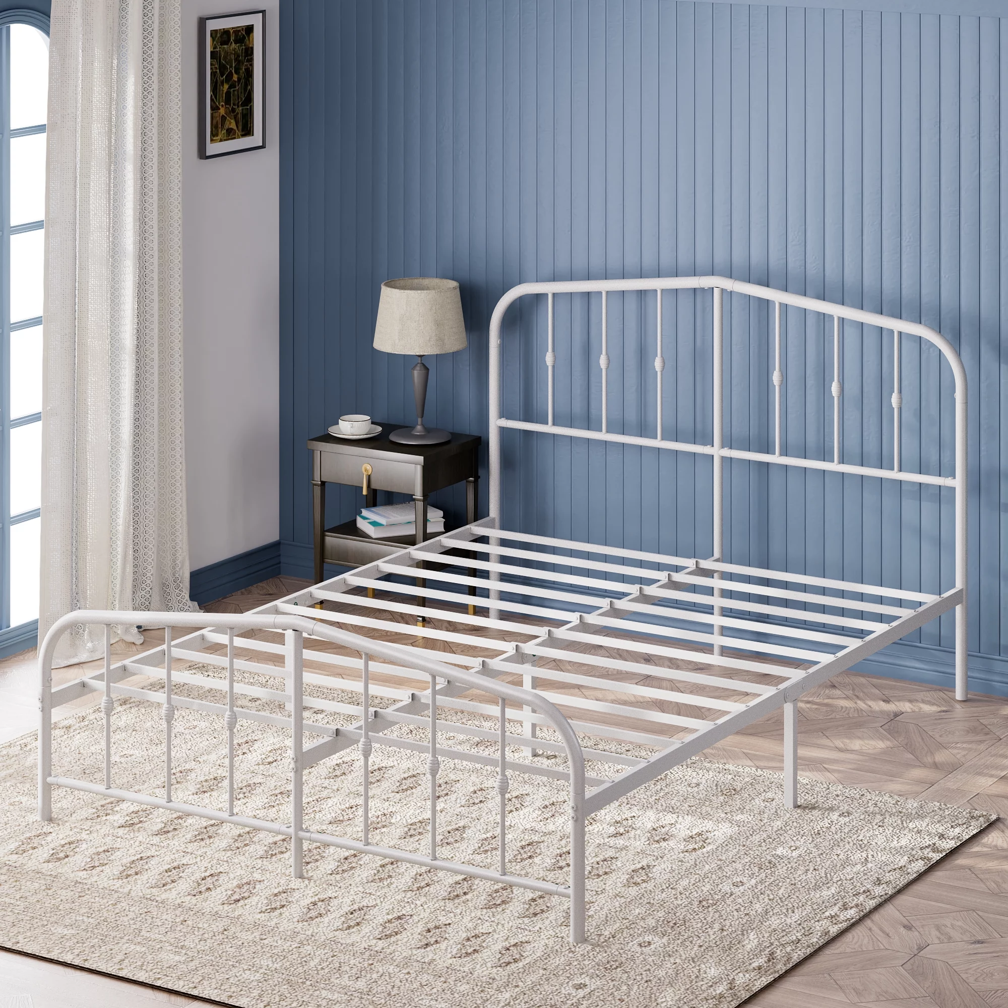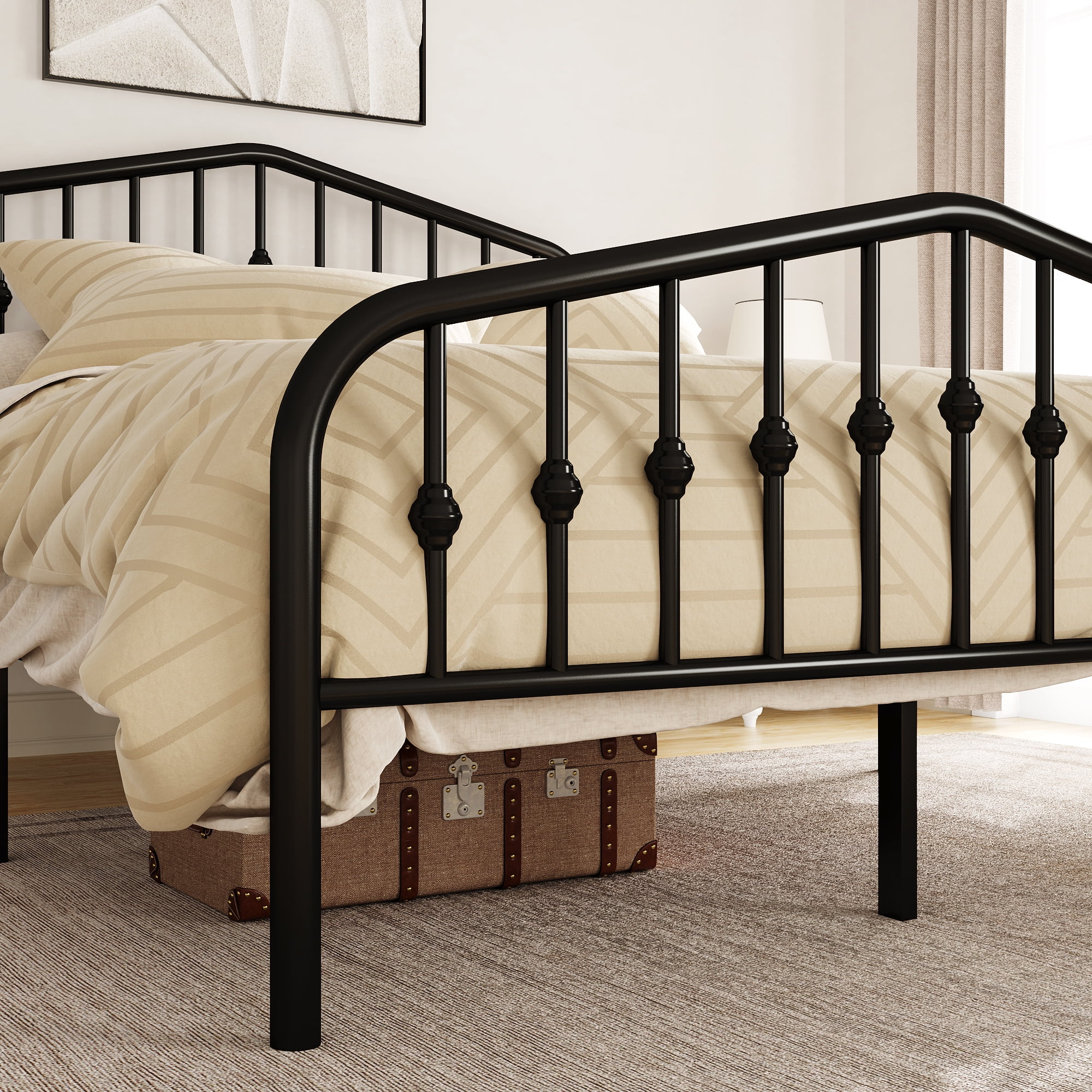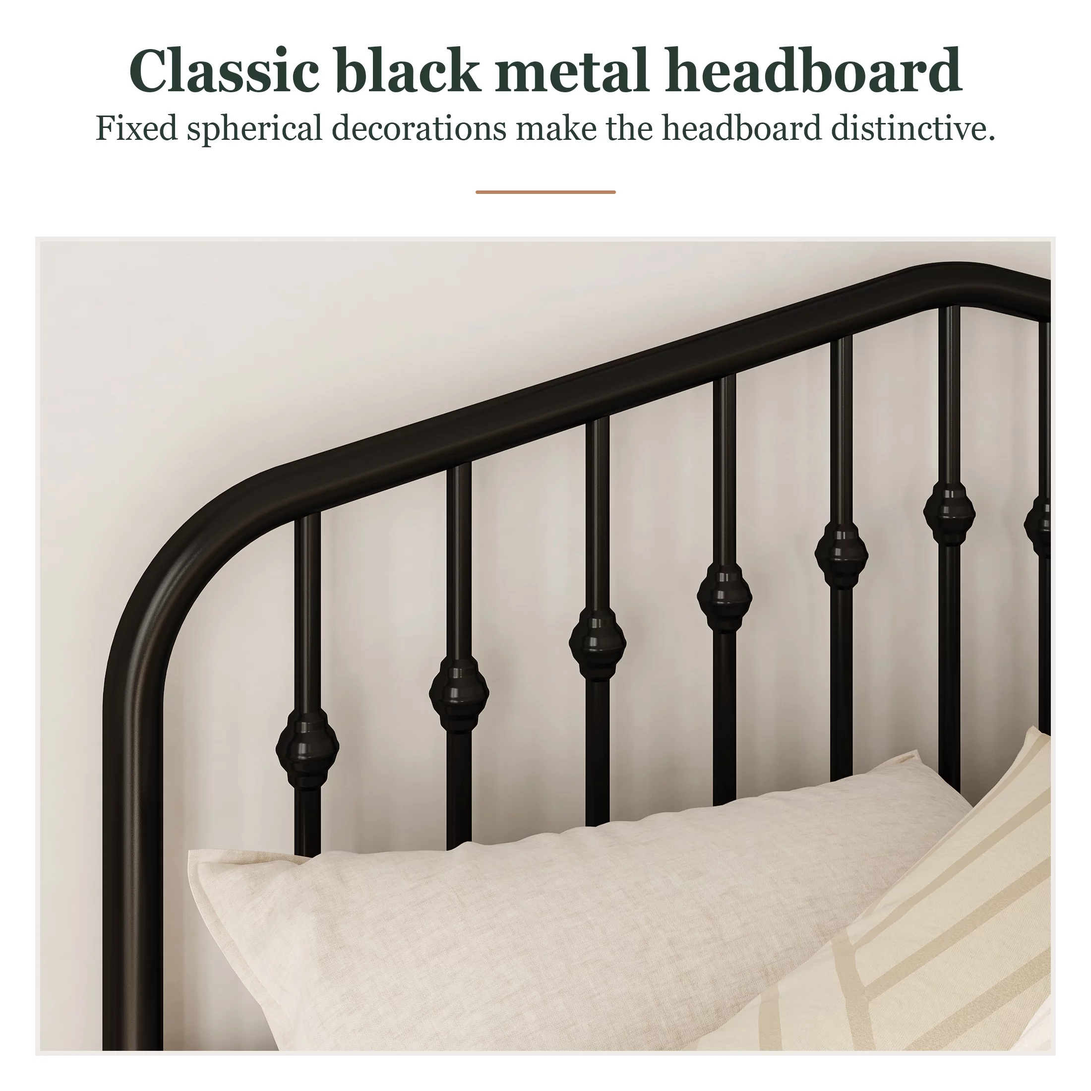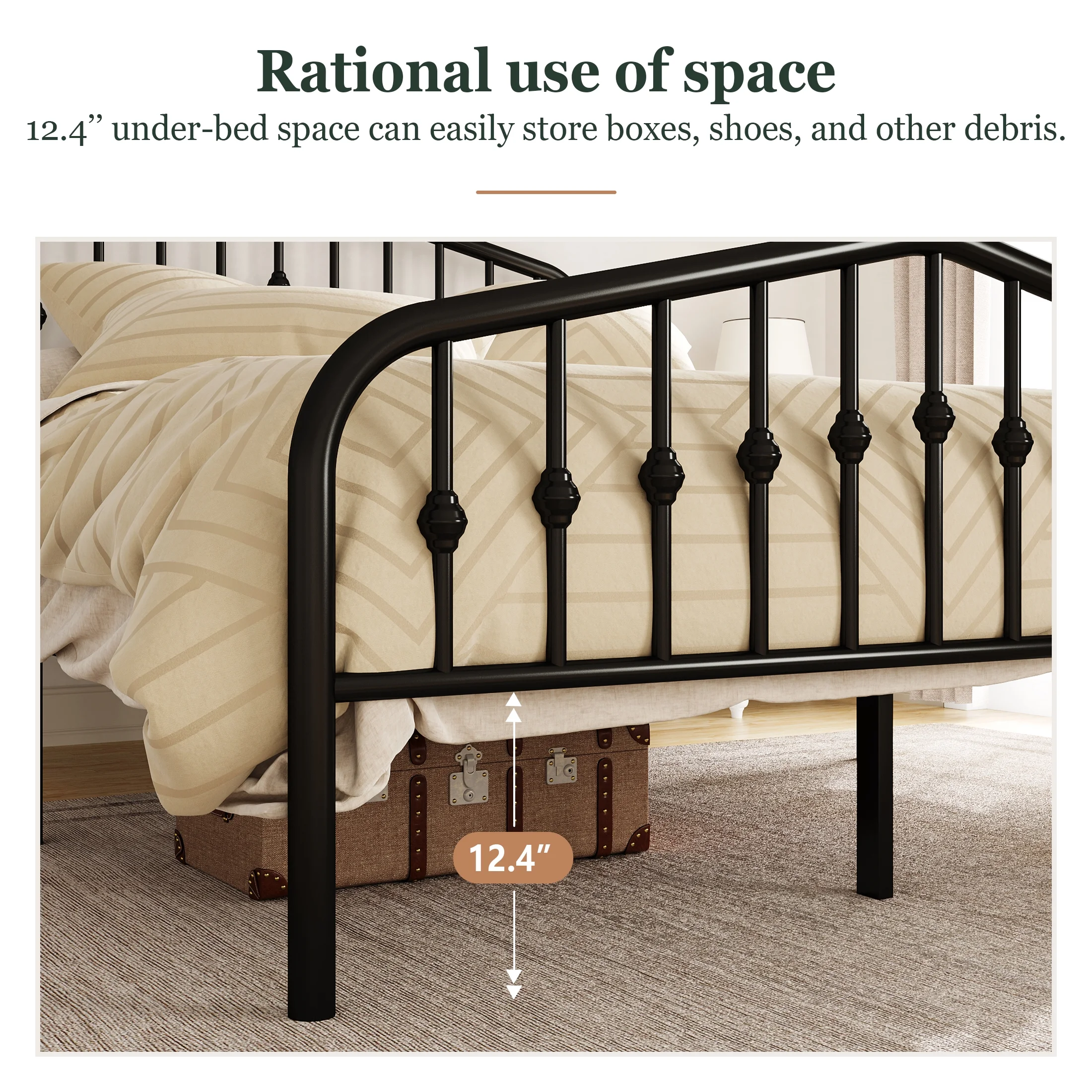 Amolife Full Size Metal Platform Bed Frame with Vintage Headboard & Footboard, Black