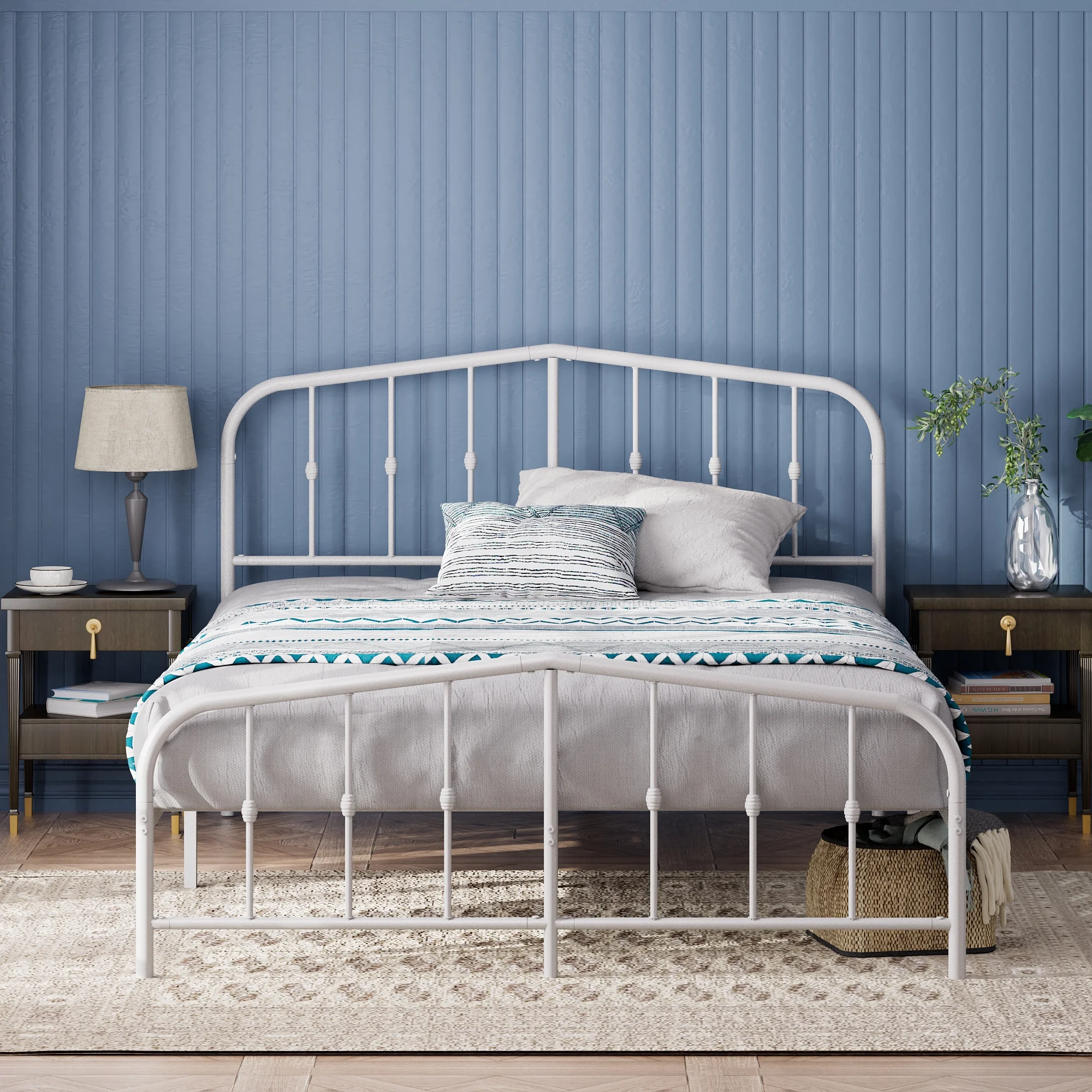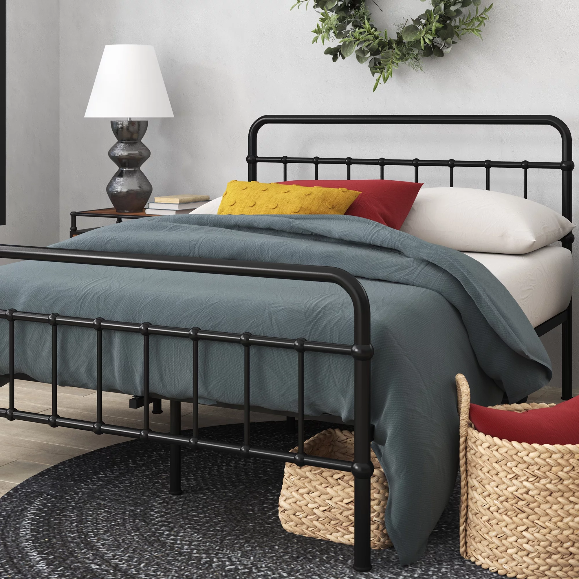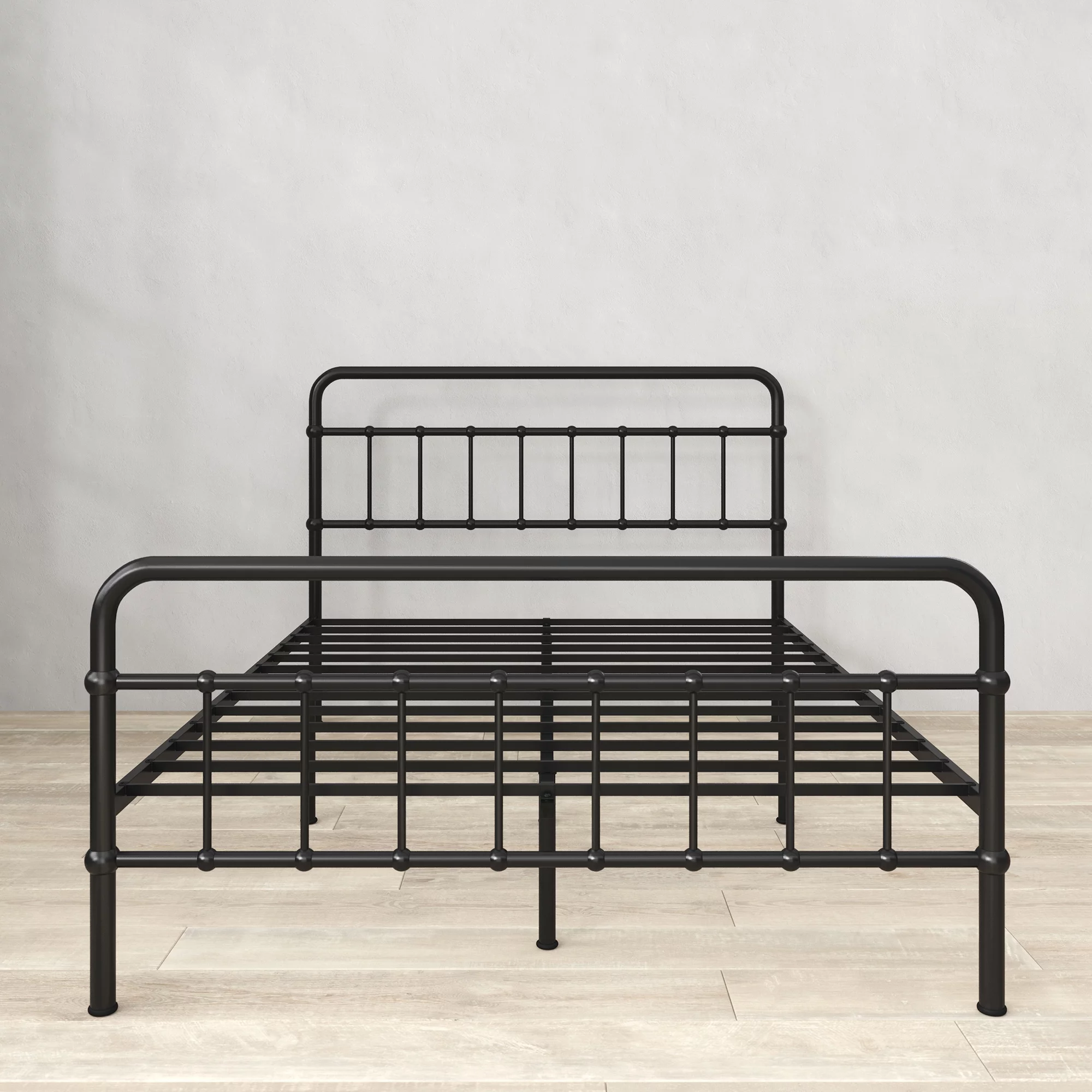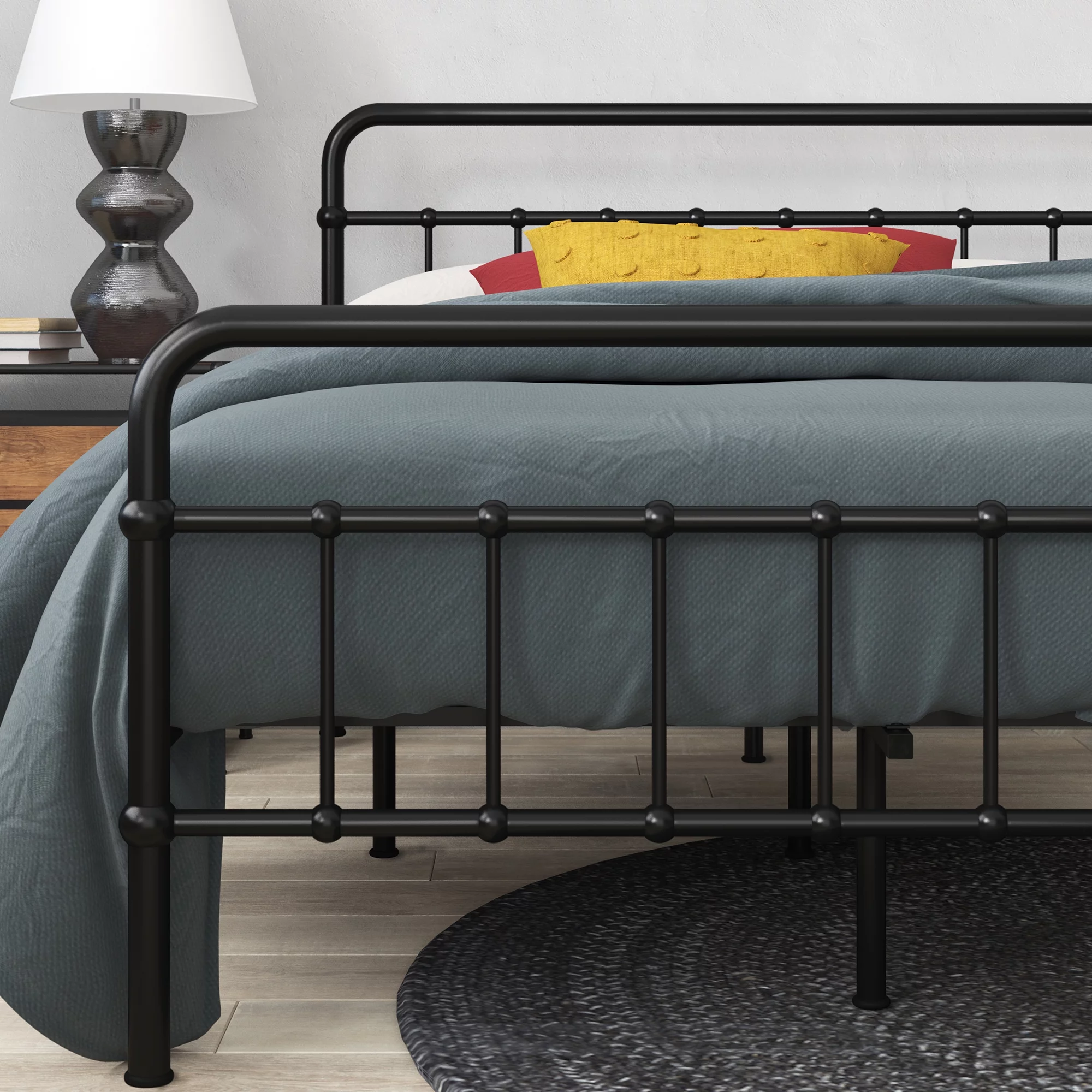 Amolife Full Size Metal Platform Bed Frame with Vintage Headboard & Footboard, Black