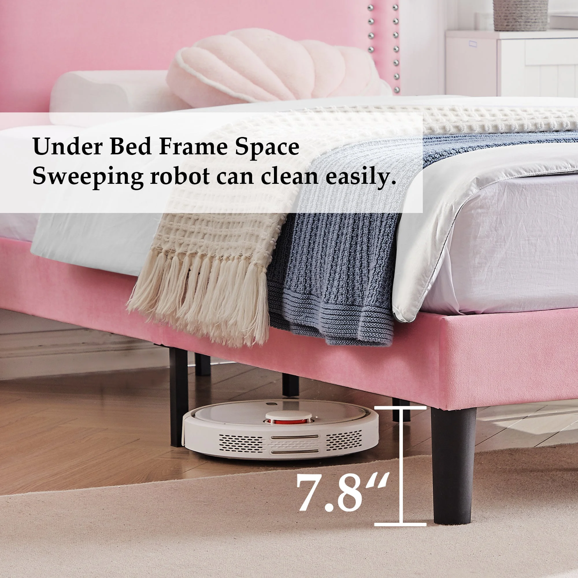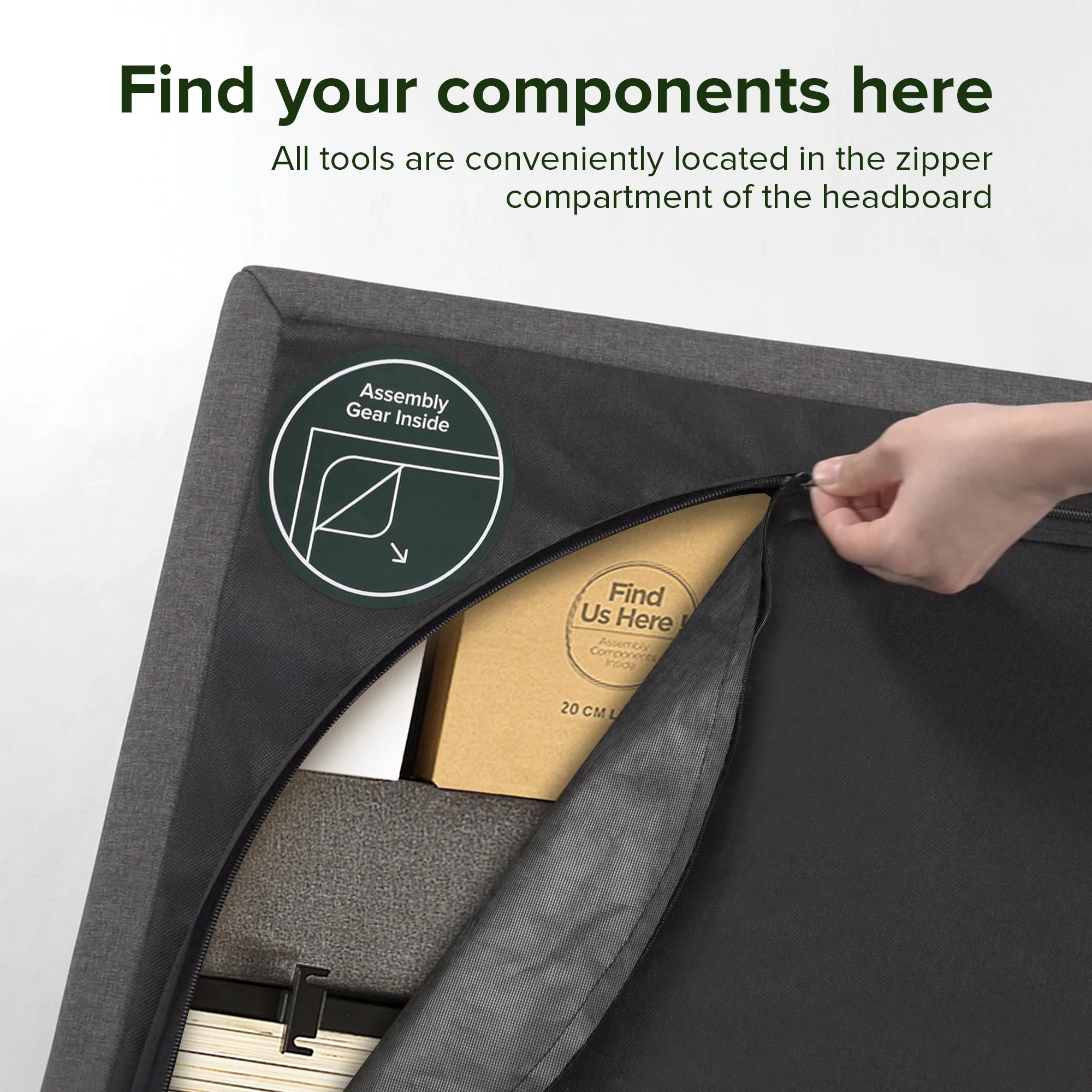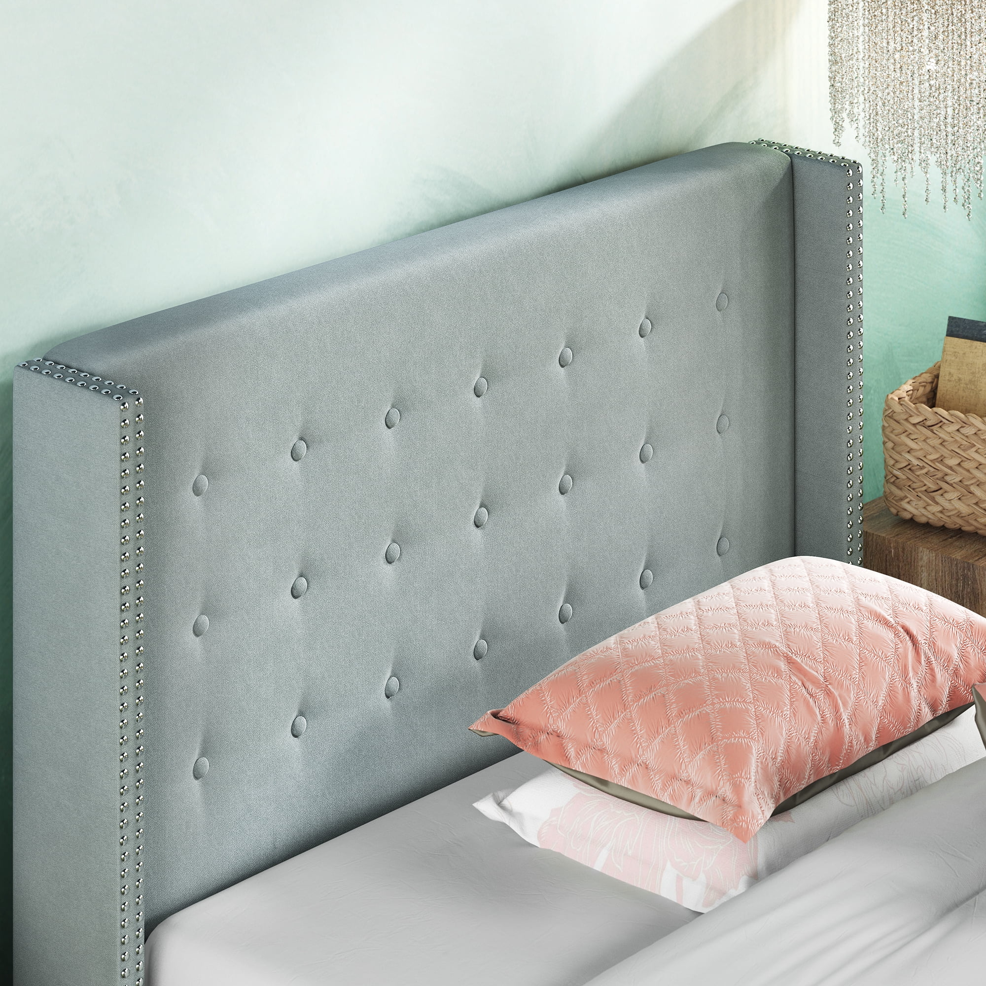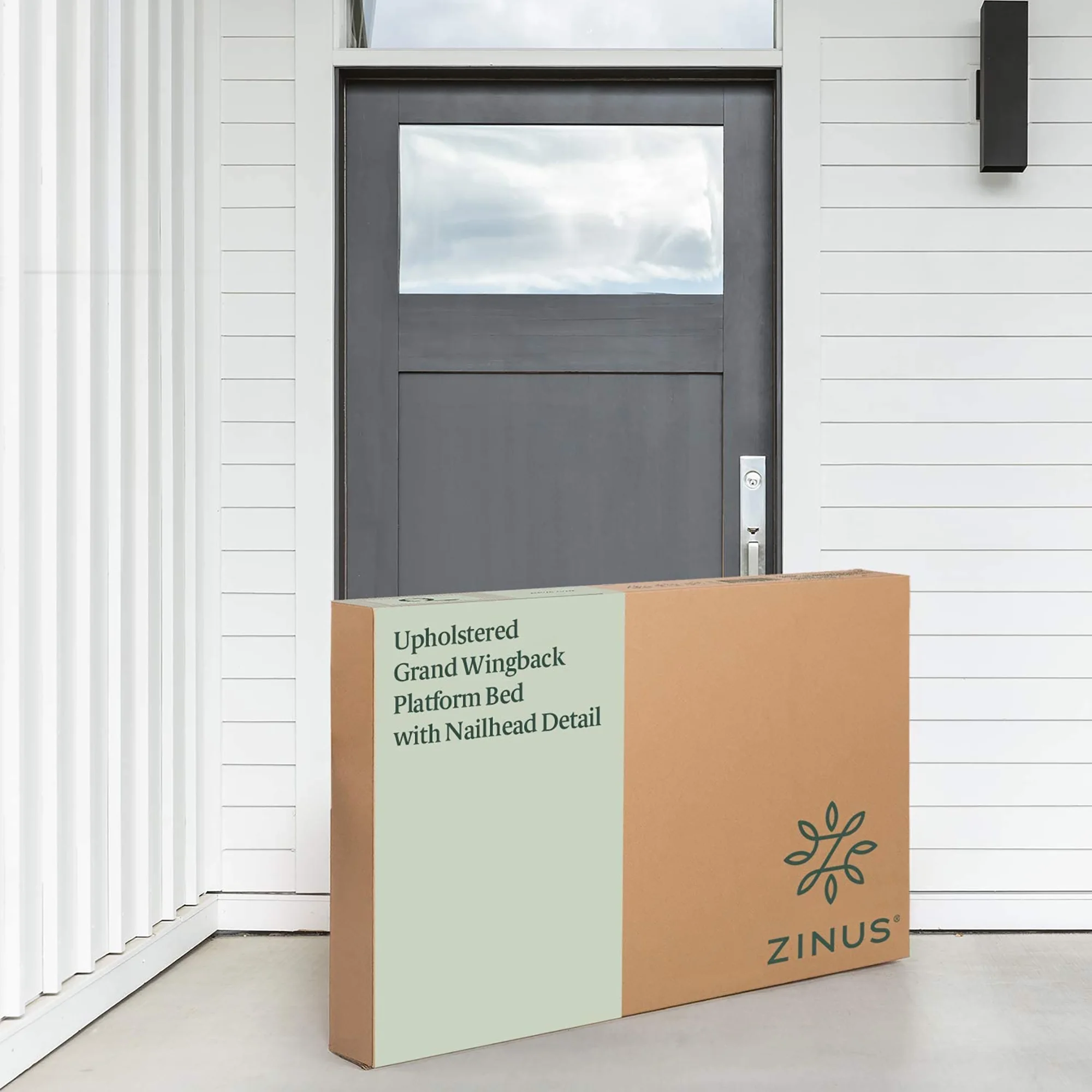 Zinus Lottie 35" Upholstered Platform Bed Frame with Short Headboard, Beige, King