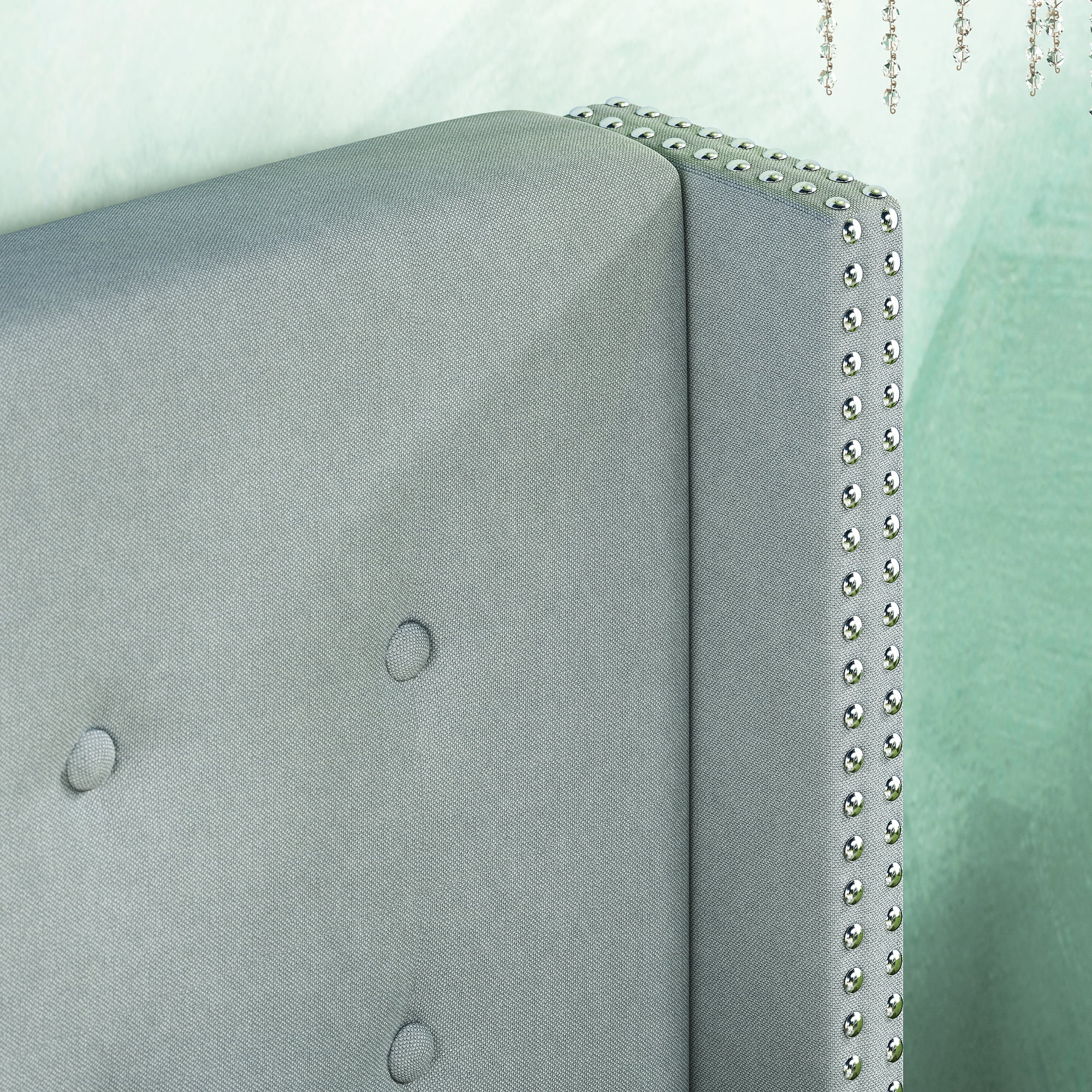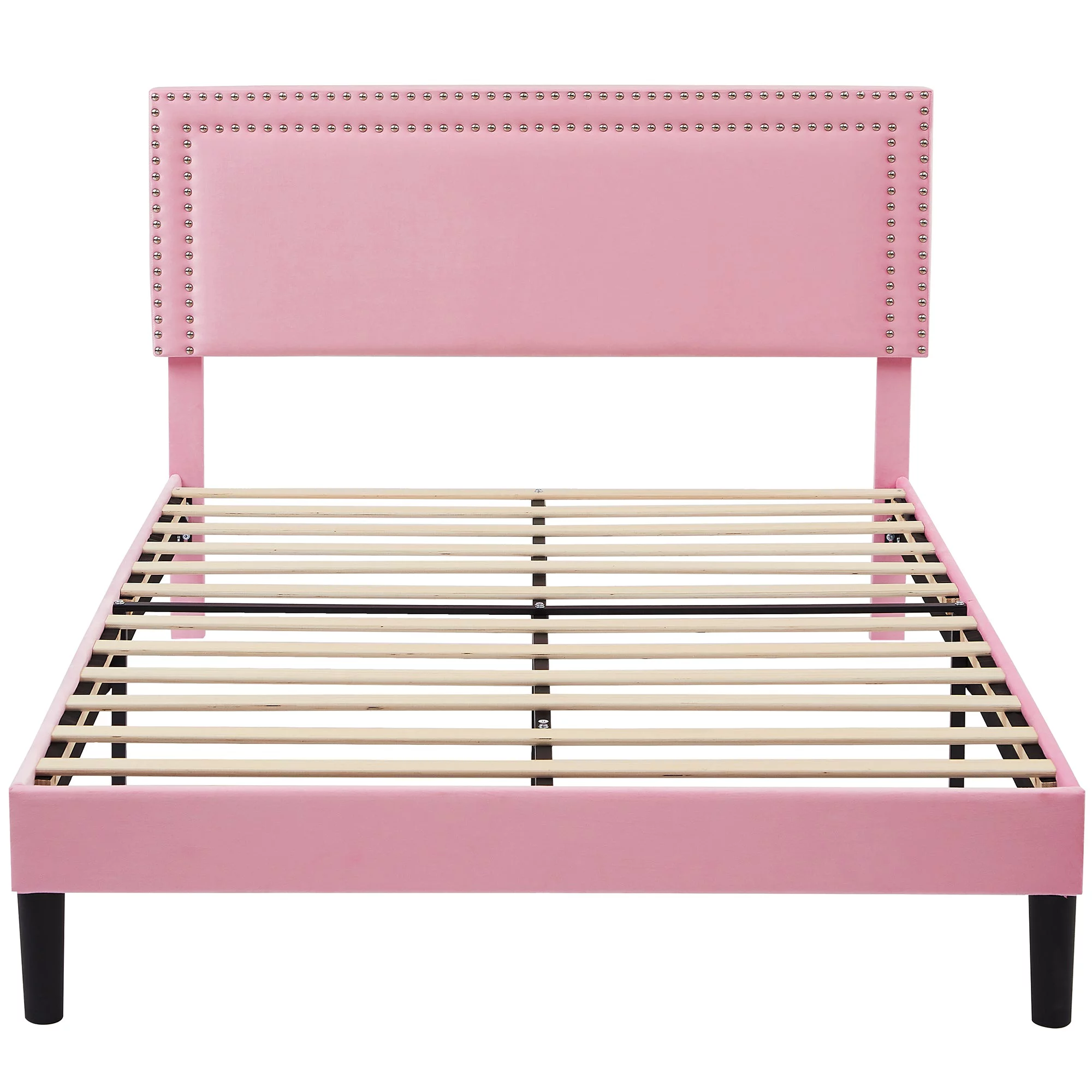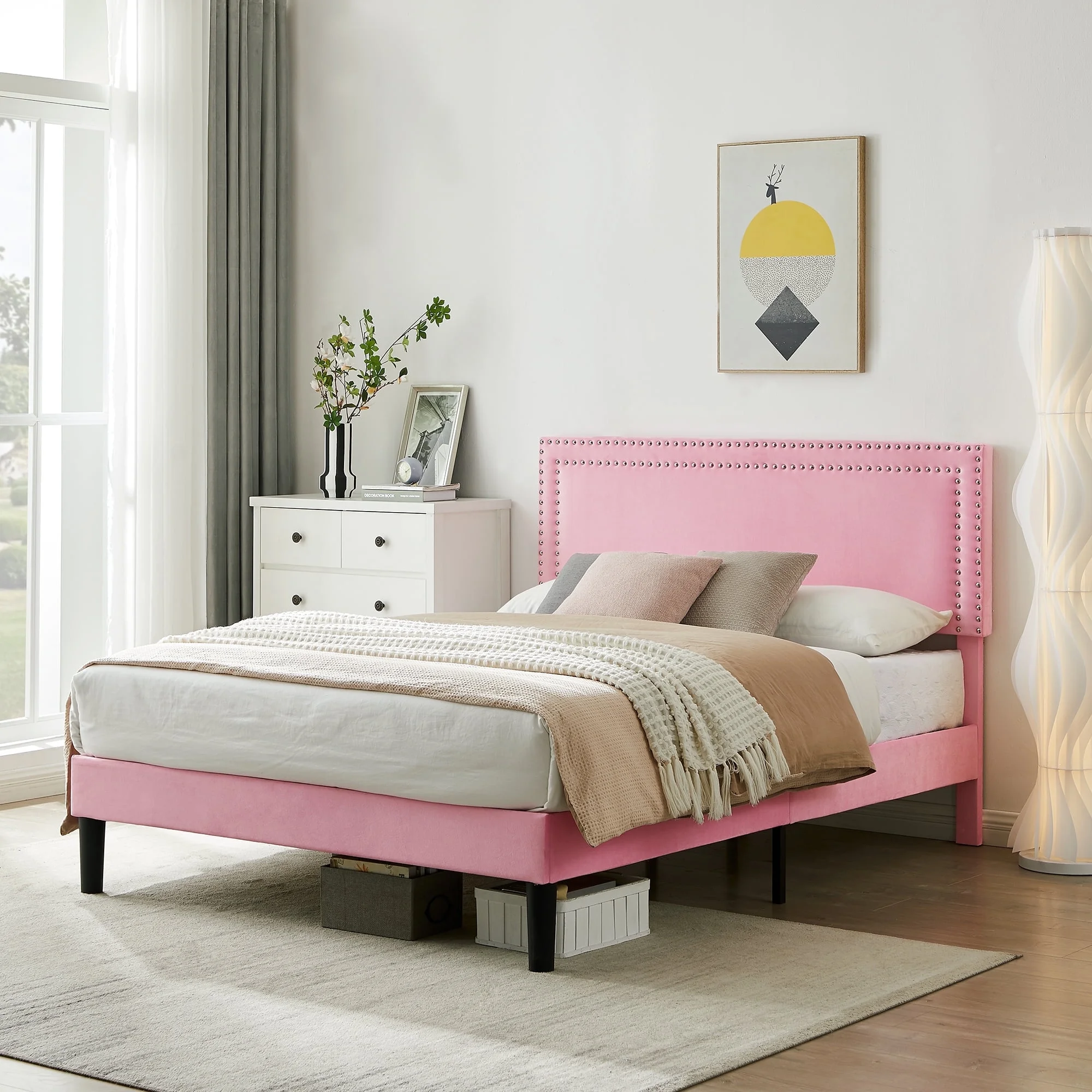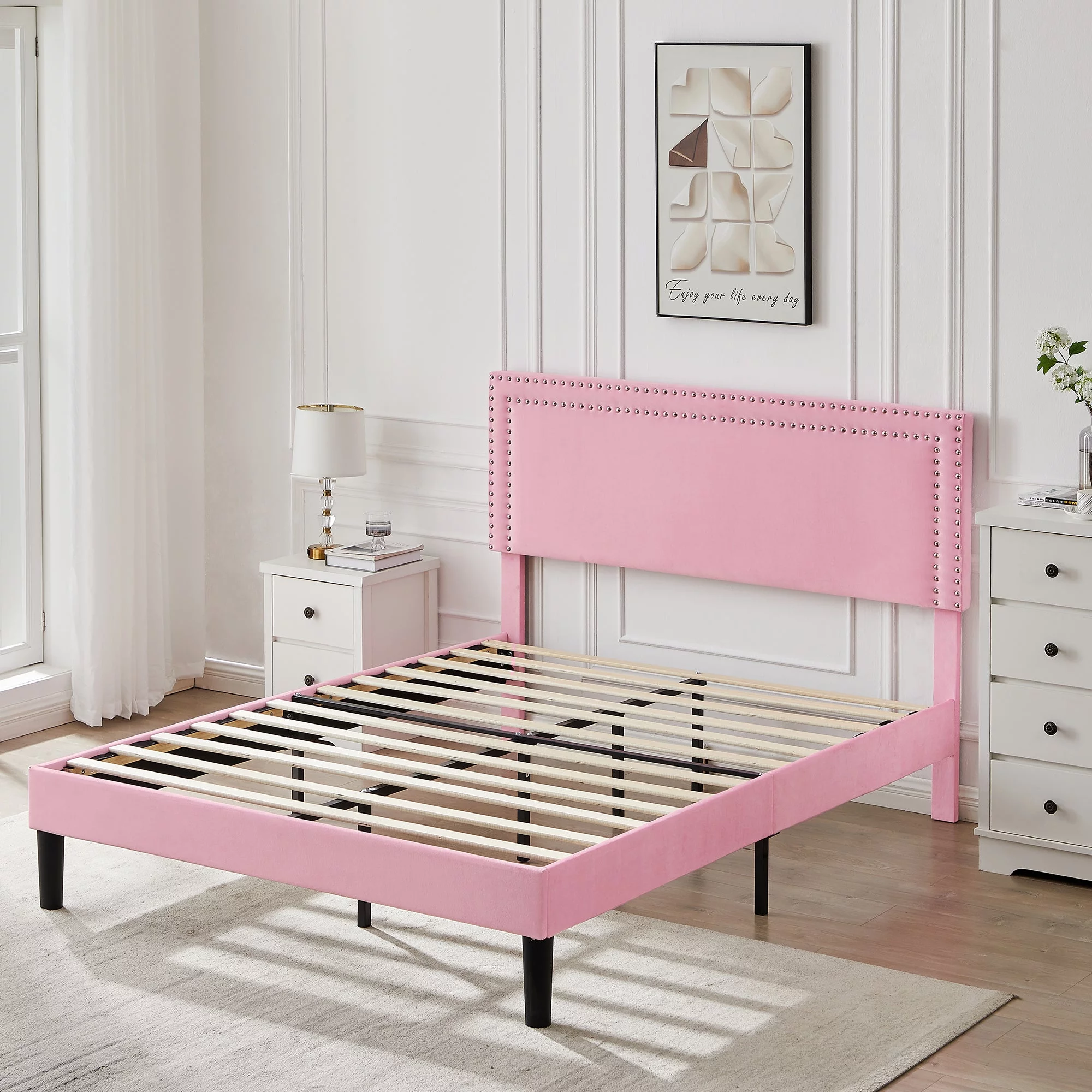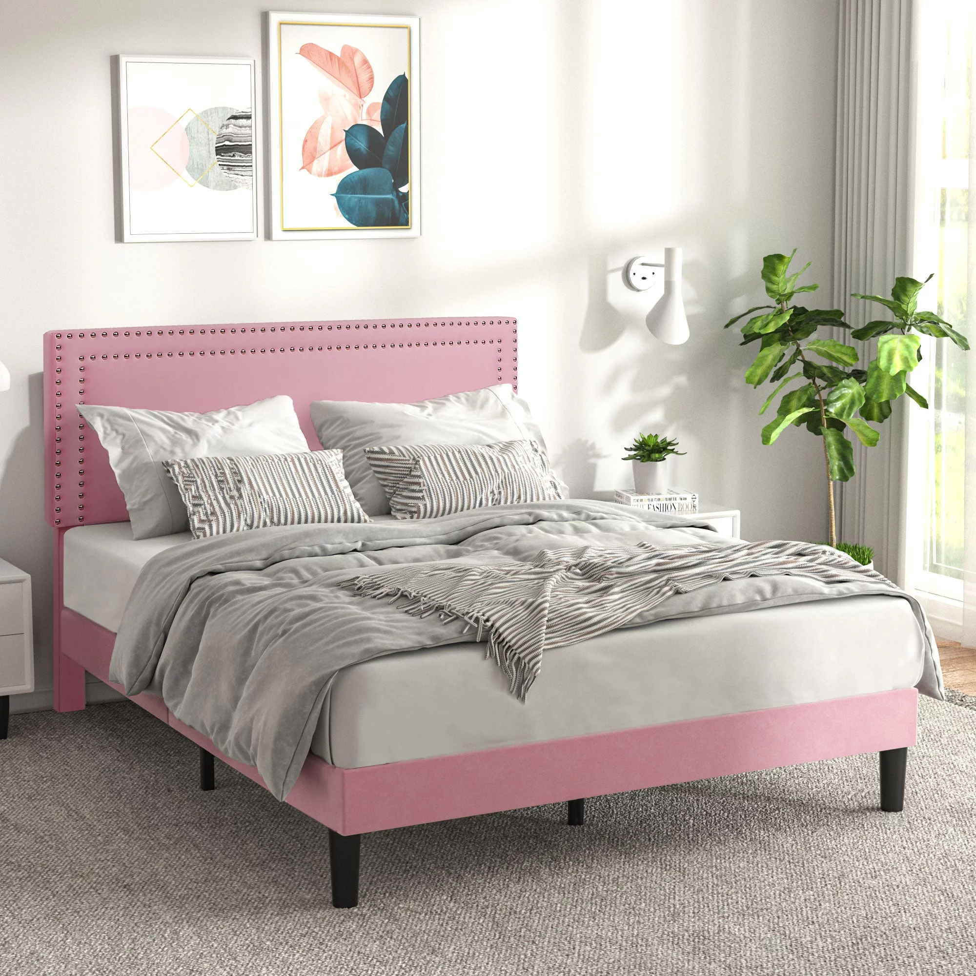Zinus Lottie 35" Upholstered Platform Bed Frame with Short Headboard, Beige, King
